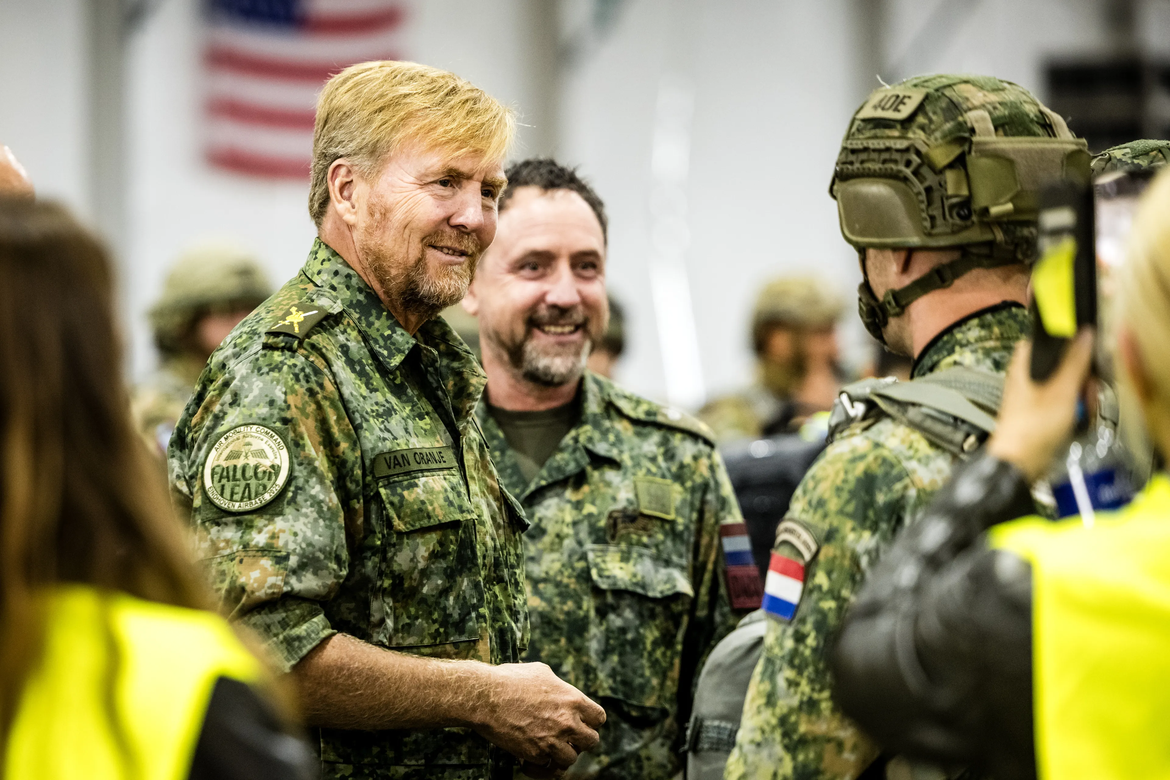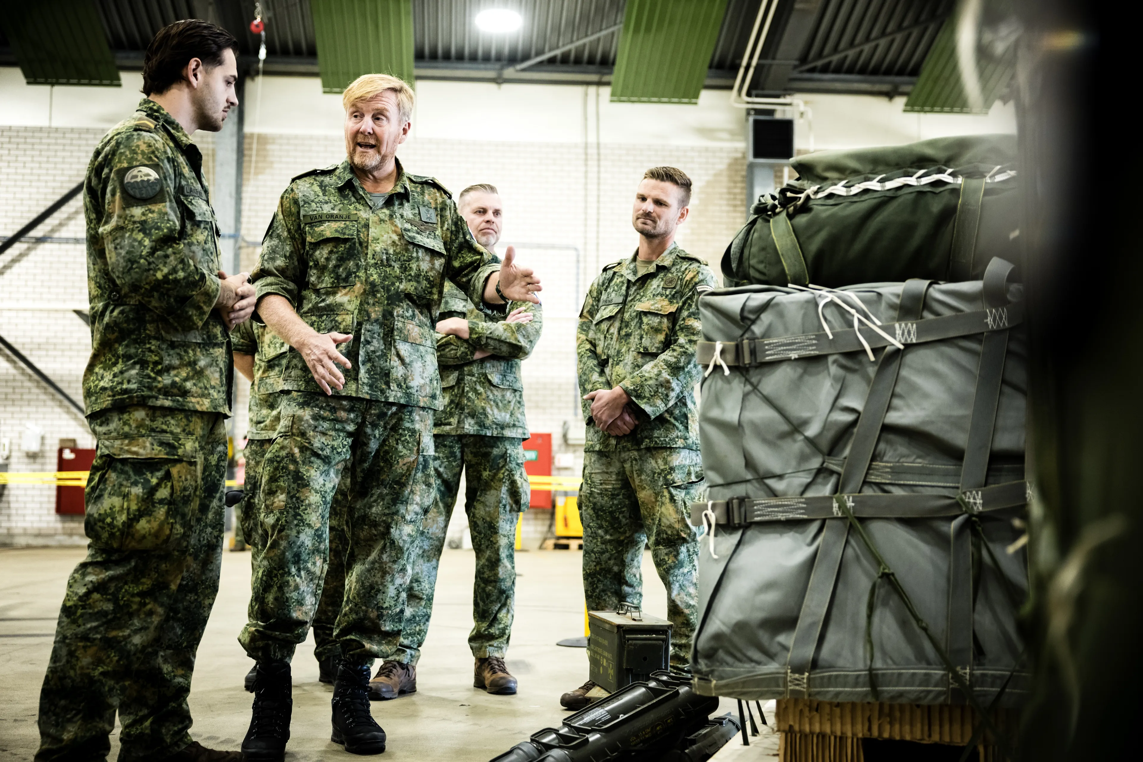 De koning was op Vliegbasis Eindhoven voor de para-oefening Falcon Leap. Dat is niet zomaar een luchtlandingsoefening, maar een eerbetoon aan operatie Market Garden uit de Tweede Wereldoorlog. Het bezoek begon voor koning Willem-Alexander met een briefing waar hij werd ondergedompeld in de para-oefening. Op de plek waar de militaire geschiedenis en de huidige tijd elkaar raken, stond Willem-Alexander oog in oog met parachutisten die zich klaarstoomden voor de dropping en met militaire precisie de vracht inpakten.
