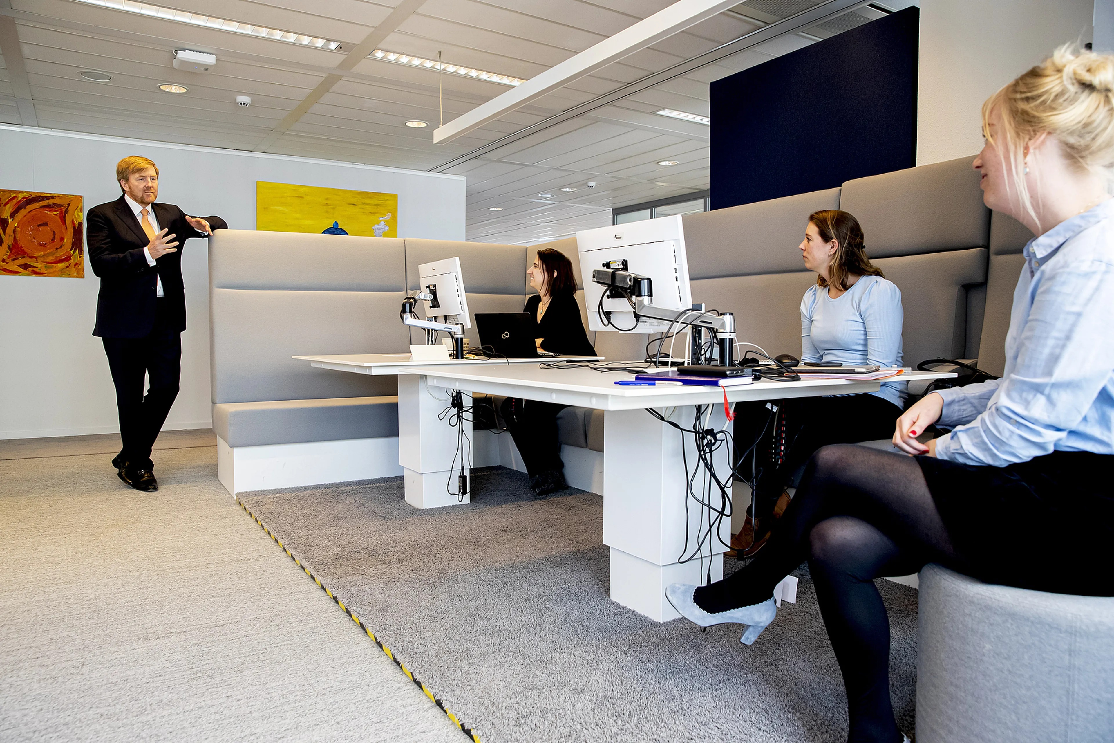 Willem-Alexander begon zijn werkbezoek bij de afdeling die verantwoordelijk is voor de crisisorganisatie bij de uitbraak van infectieziekten en rampen. Daar zijn mensen al sinds december, toen de uitbraak in China begon, bezig met het coronavirus. De koning sprak met medewerkers van het crisisteam over hun ervaringen.