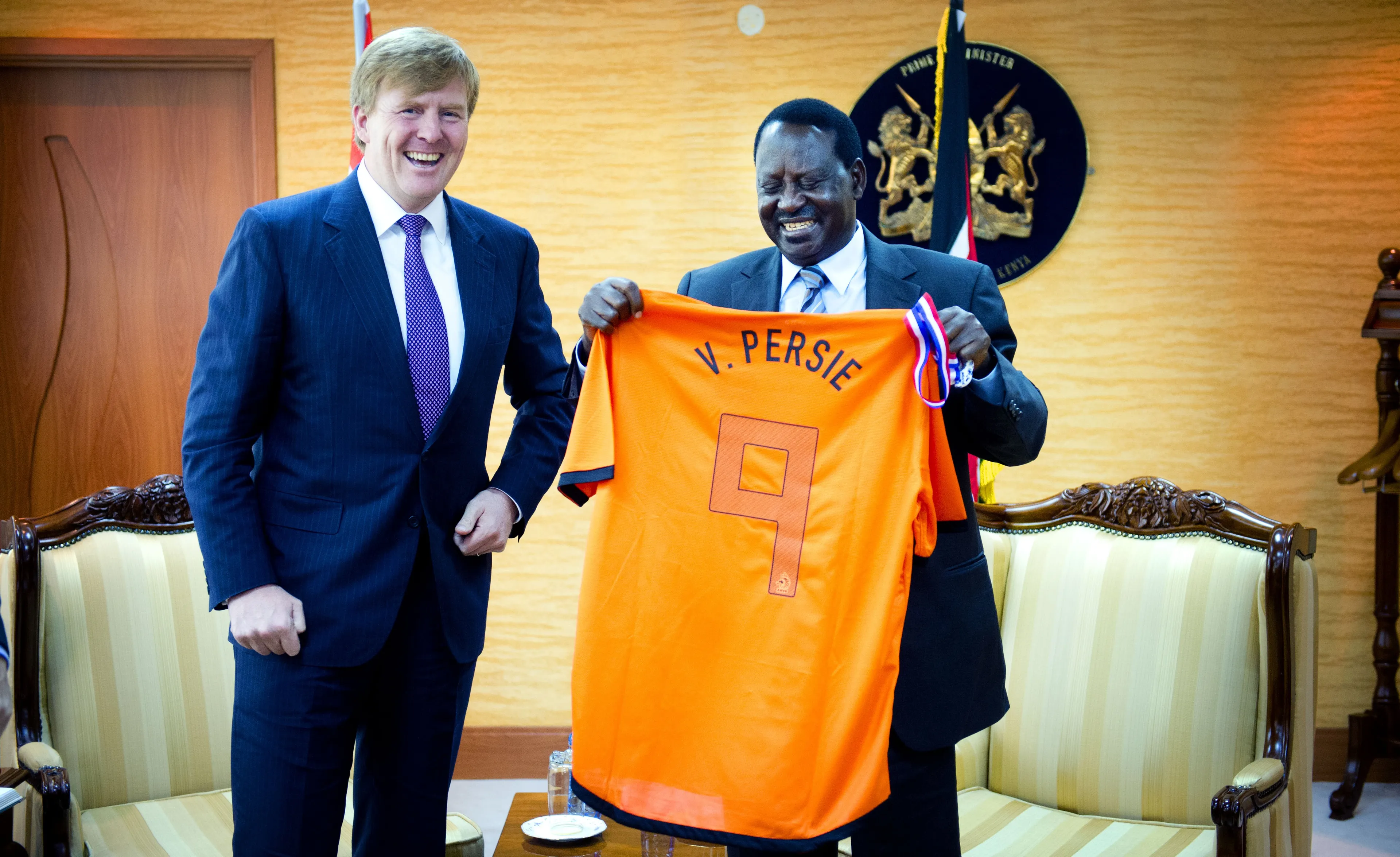 Willem-Alexander is, wat officiële bezoeken betreft, voor het laatst in Kenia in 2012. In Nairobi zit hij een vergadering voor van de UNSGAB, de commissie die de secretaris-generaal van de VN adviseert over water en sanitatie. De prins combineert zijn VN-werk met bezoeken aan een initiatief dat vrouwenbesnijdenis moet tegengaan en een project waar kinderen het belang van persoonlijke hygiëne leren. Aan de president van Kenia, Raila Odinga, geeft hij een shirt van het Nederlands elftal, met de naam Van Persie achterop.