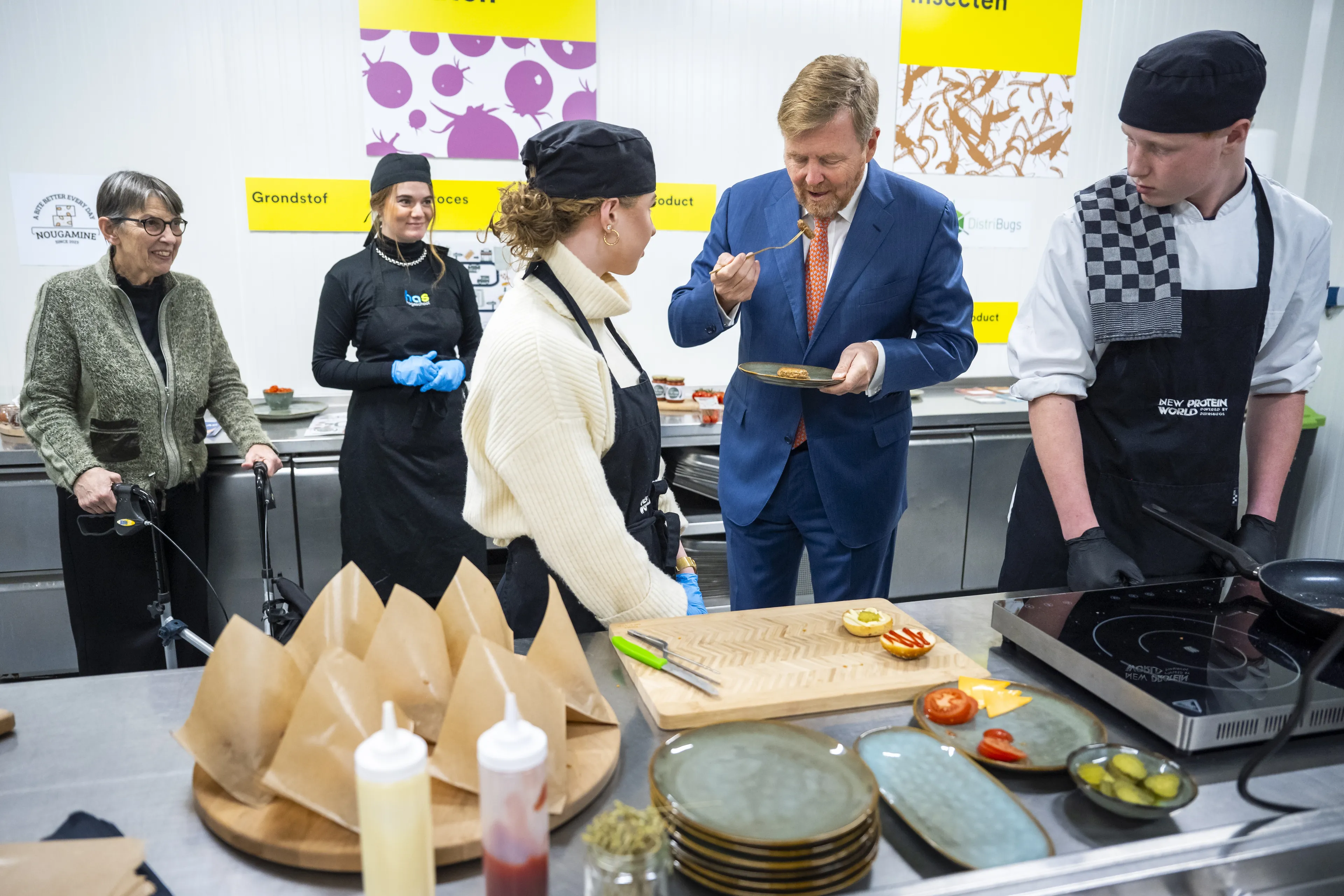 Verder kreeg de koning alles te horen over onder meer het hergebruiken van delen van gesloopte gebouwen en vrachtschepen. Tot slot werd hij met een watertaxi naar het Fieldlab Circulair Ondernemen gebracht. Daar wordt gewerkt aan het ontwikkelen, testen en produceren van nieuwe producten, zoals crackers van meelwormen.