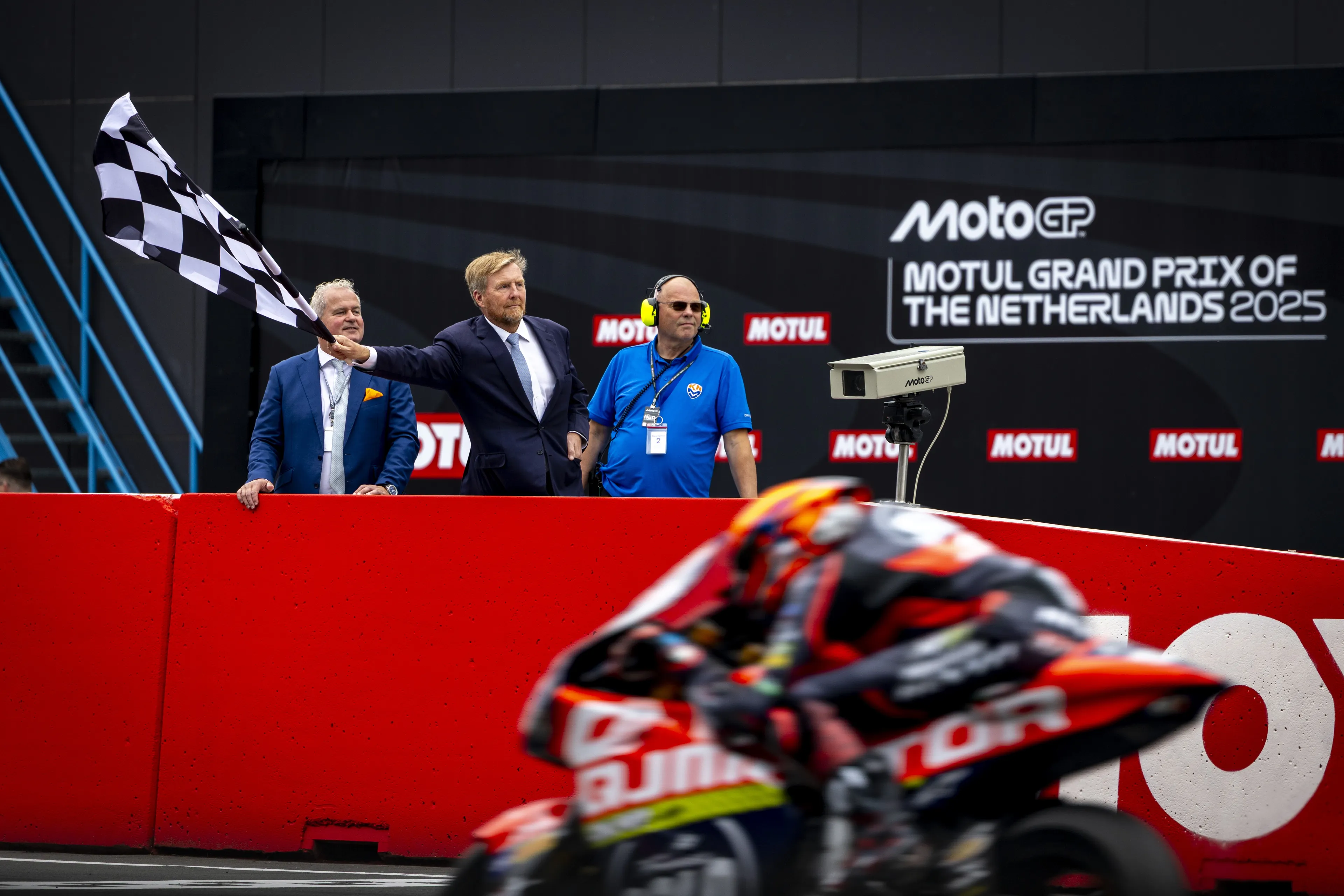 Na een ontmoeting met coureurs en oud-wereldkampioenen MotoGP, komt de koning meer te weten over de motorsport en het circuit. Die mag hij daarna ook van dichtbij verkennen. Het geluid van de motoren is erg hard, dus ook de koning moet oordoppen in als gehoorbescherming. De motorracers rijden razendsnel voorbij. In de laatste ronde moeten ze echter afremmen, want koning Willem-Alexander zwaait met de finishvlag. Die snelheid is iets waar hij wel van houdt. “Ik hield zo van snelheid toen ik jong was. Ik denk niet dat het heel goed was geweest voor mijn gezondheid als ik mijn motorrijbewijs heb gehaald”, zo laat de koning weten. Dat betekent overigens niet dat hij nooit op een motor heeft gezeten. “Ik heb vroeger wel op een crossmotor met 50 cc, zo’n klein motortje gereden in het bos ergens.” En zijn favoriete motor? “Een op twee wielen.”
