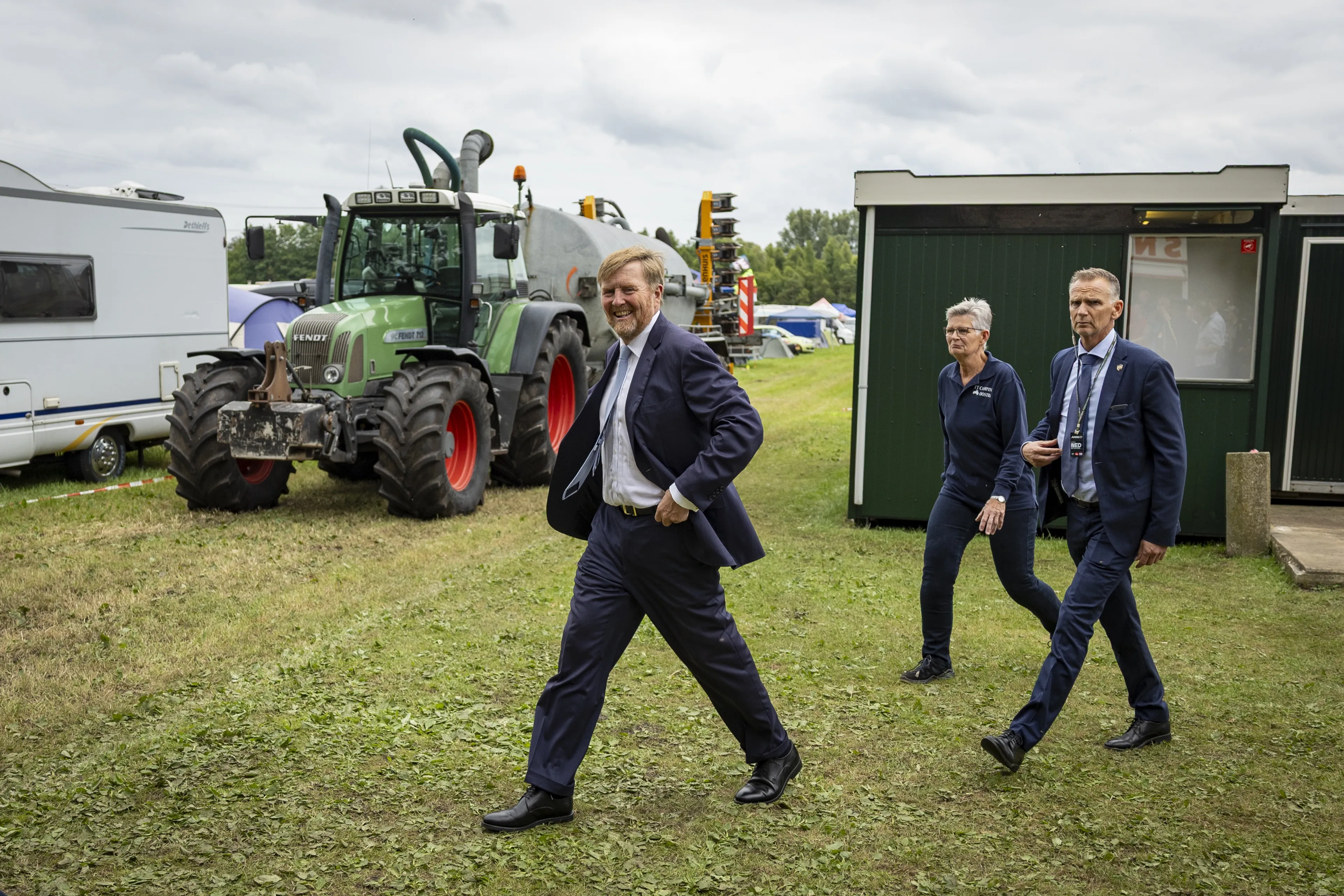 Ook koning Willem-Alexander dompelt zich in Drenthe onder in de wereld van de motorsport tijdens een trainingsdag. En daar kan een bezoek aan de naastgelegen camping niet bij ontbreken. Afgelopen dinsdag ontving het koningspaar op Paleis Huis ten Bosch nog een groep wereldleiders voor een chique diner. Maar vandaag staat hij met zijn nette schoenen in de modder op camping Oostra. Daar verblijven toeschouwers van de TT Assen het komende weekend om de races bij te wonen.