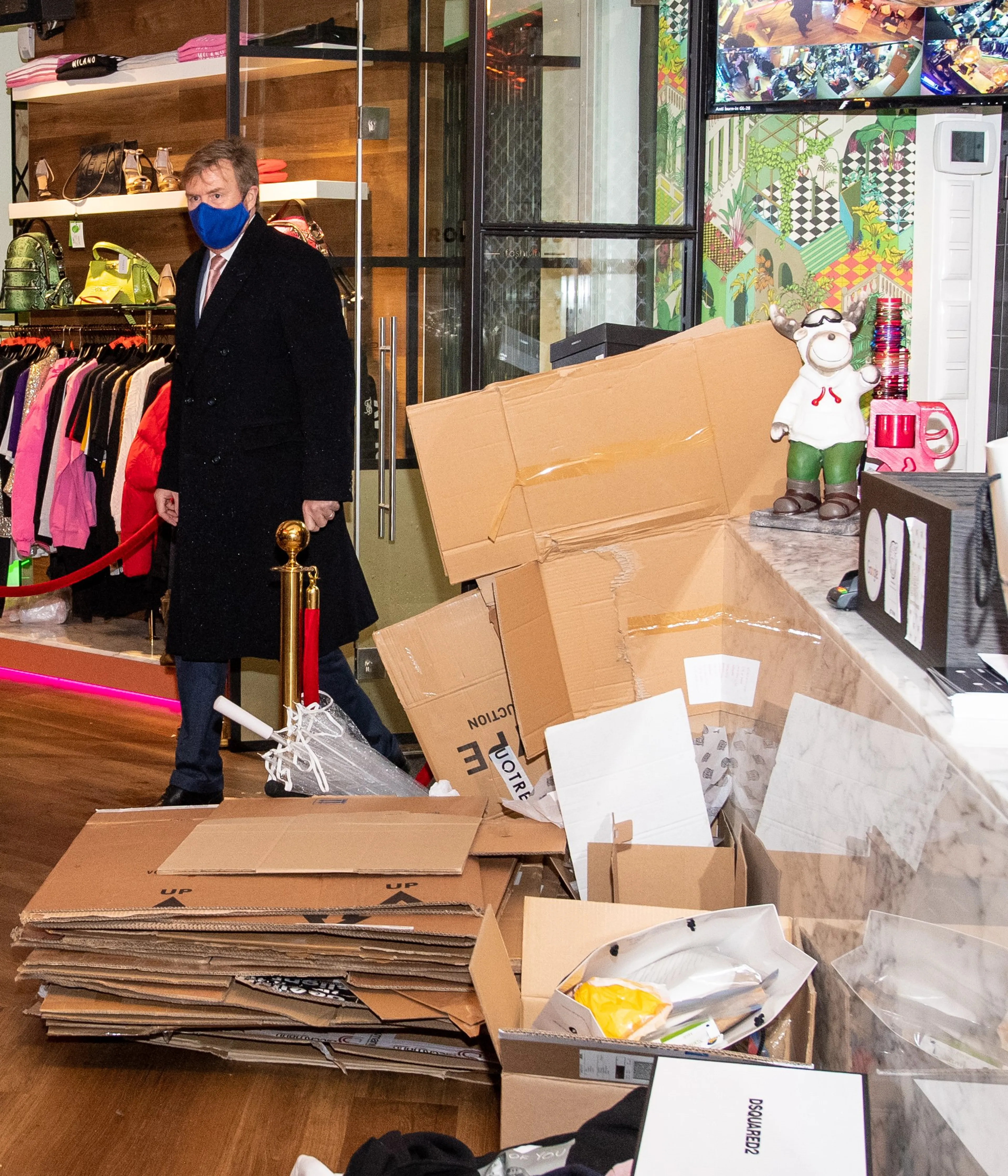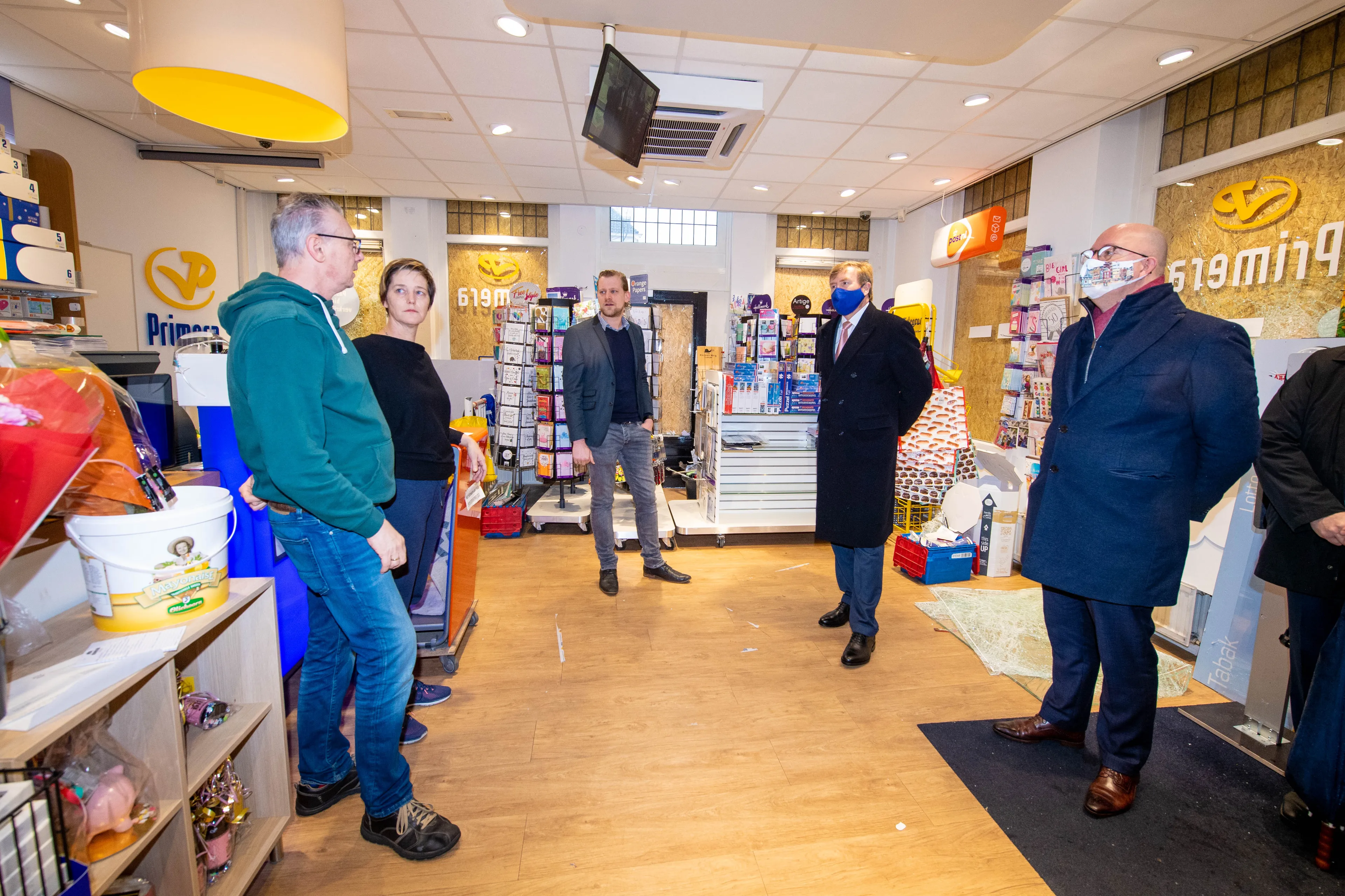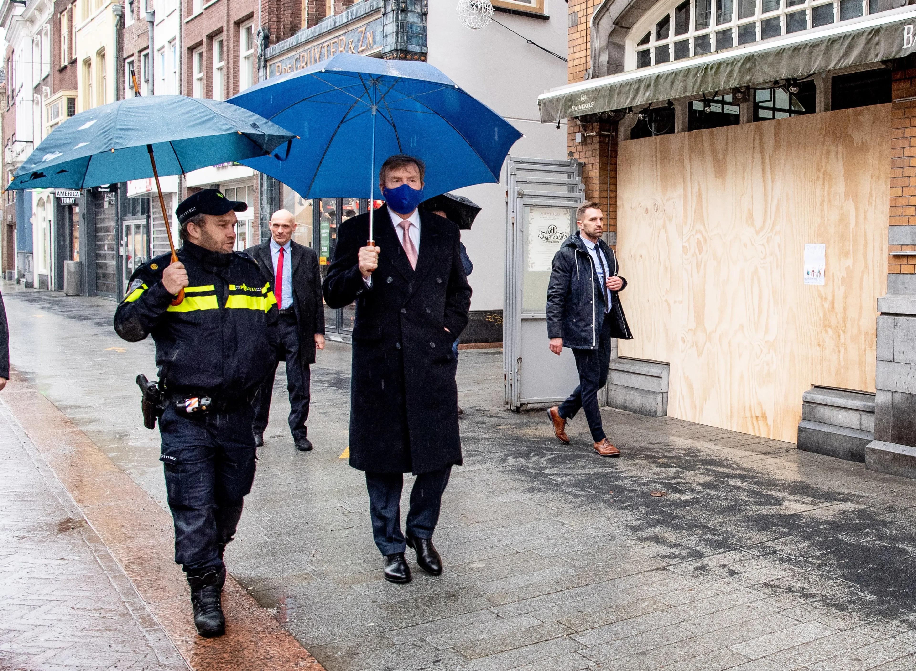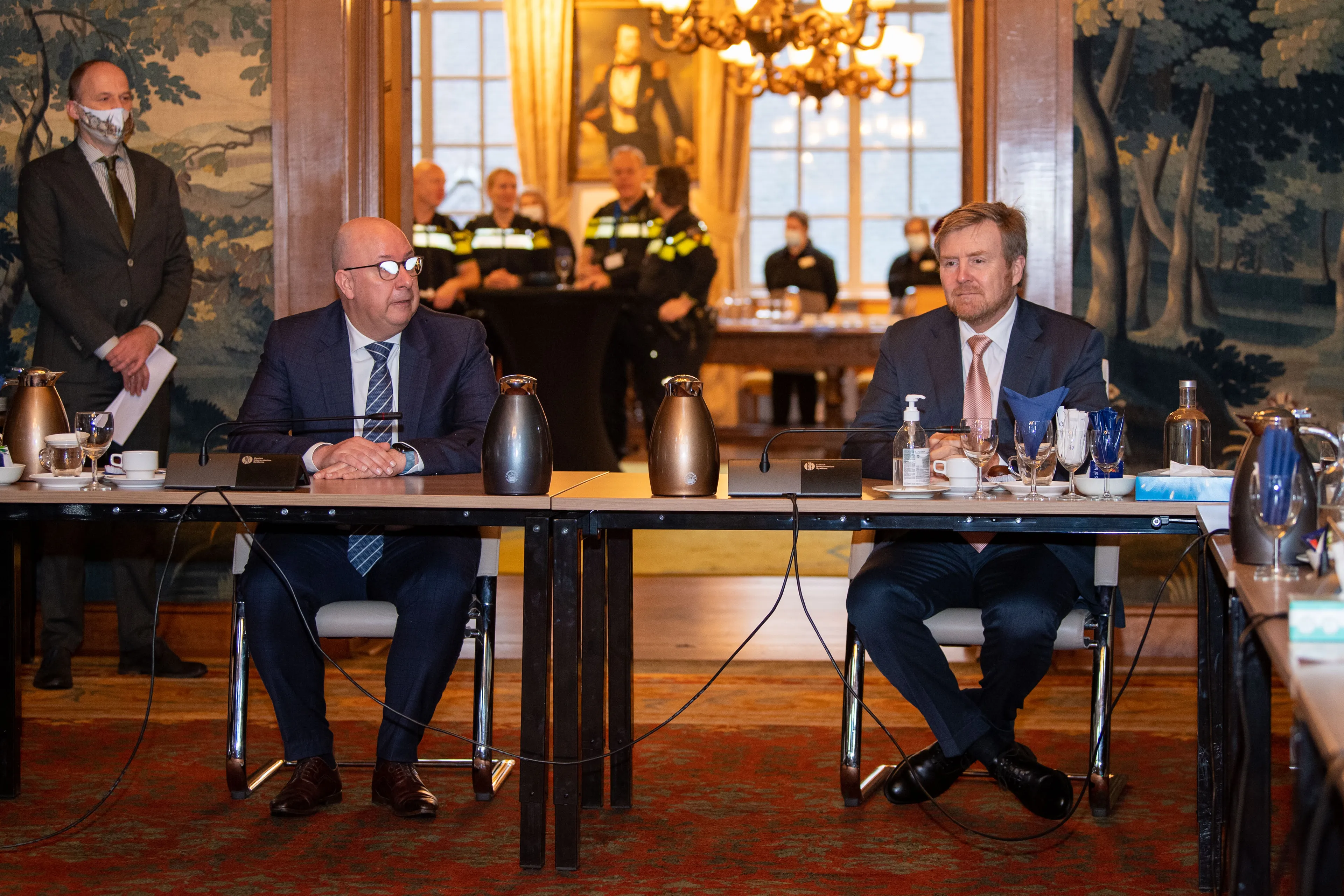 Ook sprak Willem-Alexander met Maaike en Guido Neuféglise, eigenaars van de geruïneerde Primera waarvoor een crowdfundingactie werd opgezet. Beelden van hun vernielde winkel en de geëmotioneerde Maaike is op alle journaals te zien geweest. De koning keek met "totaal ongeloof" naar de beelden en berichten van de coronarellen in Nederland, vertelde hij. Hij was verrast dat overal in Nederland rellen uitbraken, ook in kleine plaatsen. Dat deed Willem-Alexander denken aan oudejaarsnacht, die hij zelf had doorgebracht met de politie in Den Haag. Het was daar nog nooit zo rustig geweest, terwijl in andere, kleine steden juist veel onrust was. De koning toonde zich blij dat het de afgelopen twee avonden even rustig is gebleven, en hoopt dat dit in het weekeinde ook zo blijft.