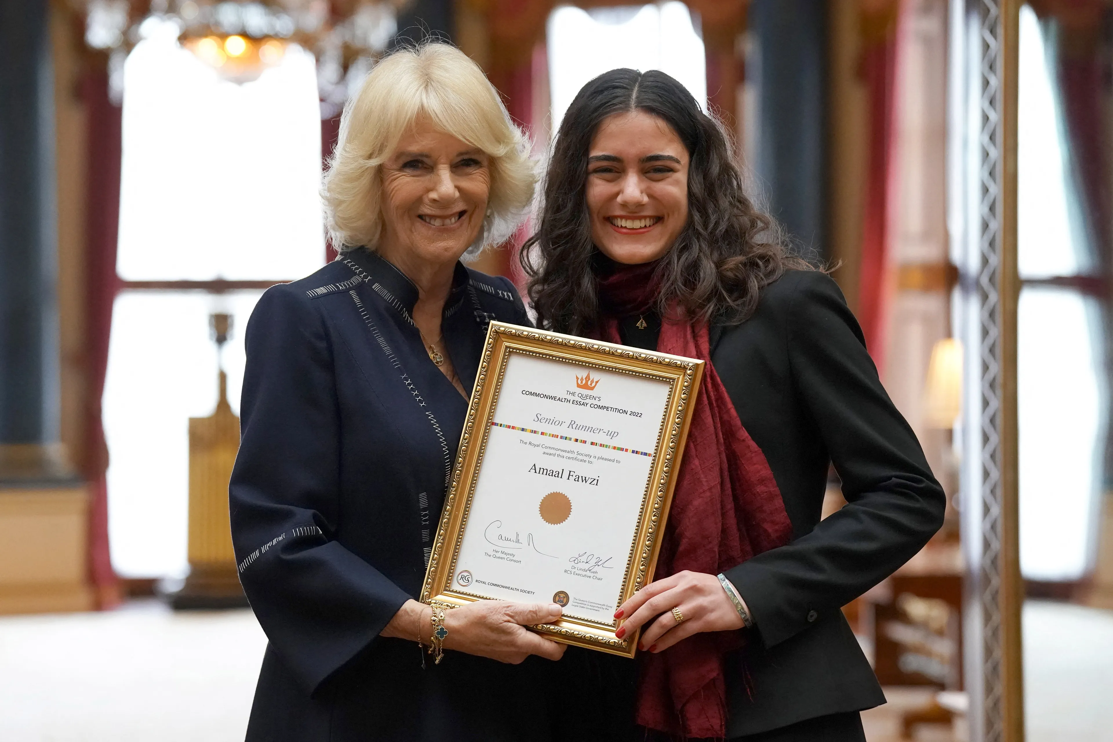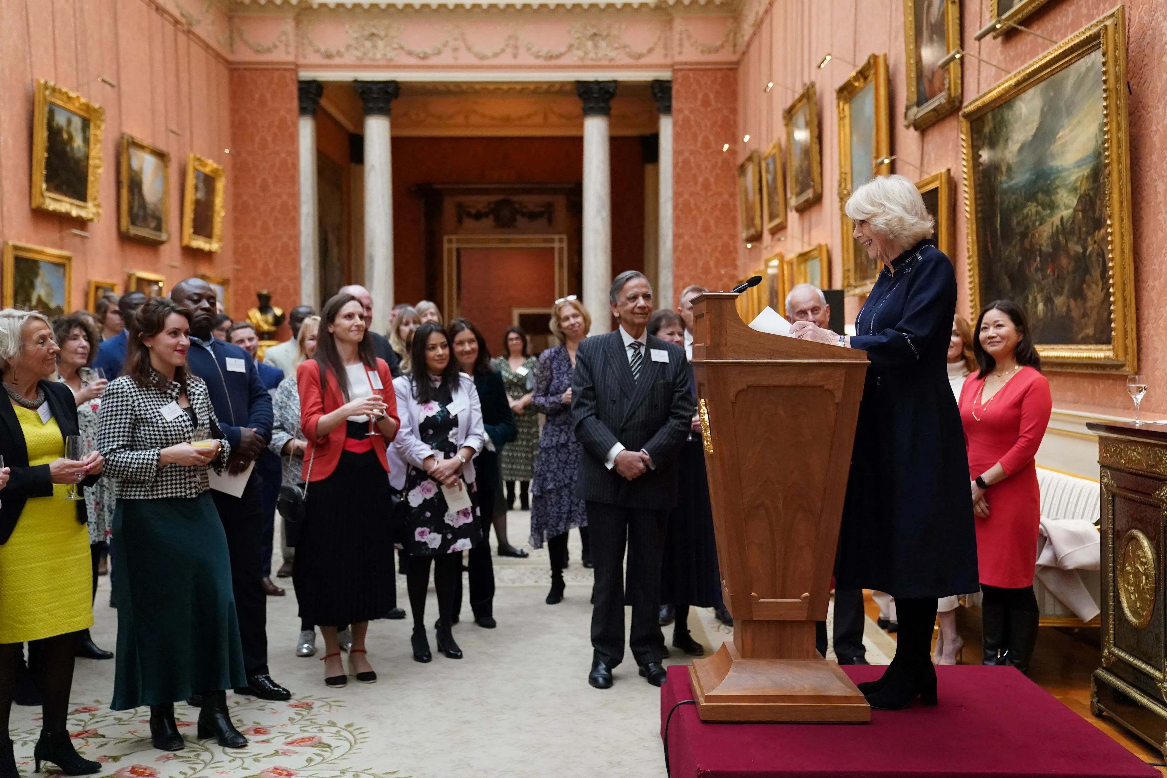Camilla gaf de toespraak tijdens een receptie voor de winnaars van de schrijfwedstrijd. Na afloop nam Camilla de tijd om te poseren met de jonge prijswinnaars. Bij de bijeenkomst waren ook onder anderen voormalig Spice Girl Geri Horner, zangeres Alexandra Burke en actrice Ayesha Dharker aanwezig.