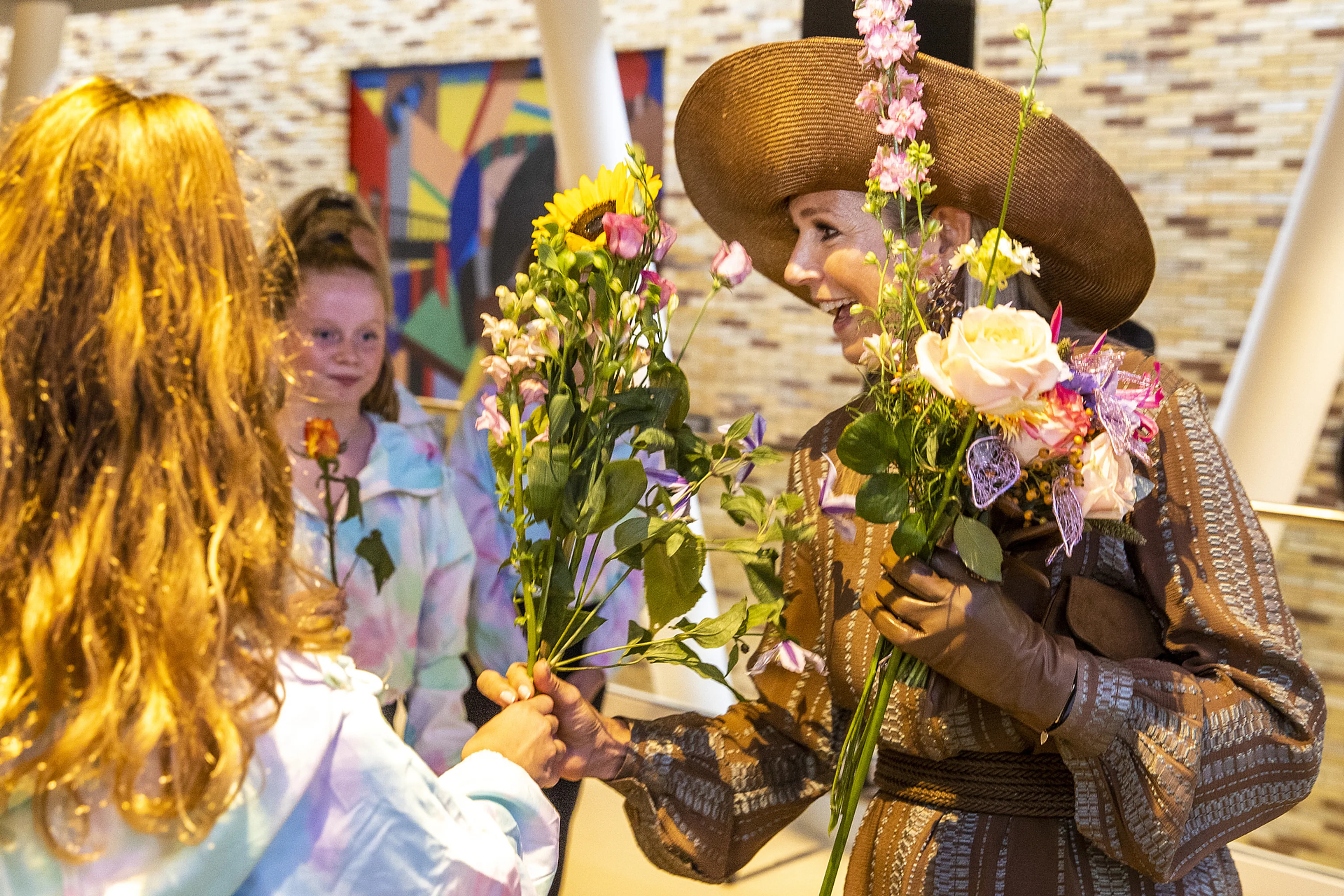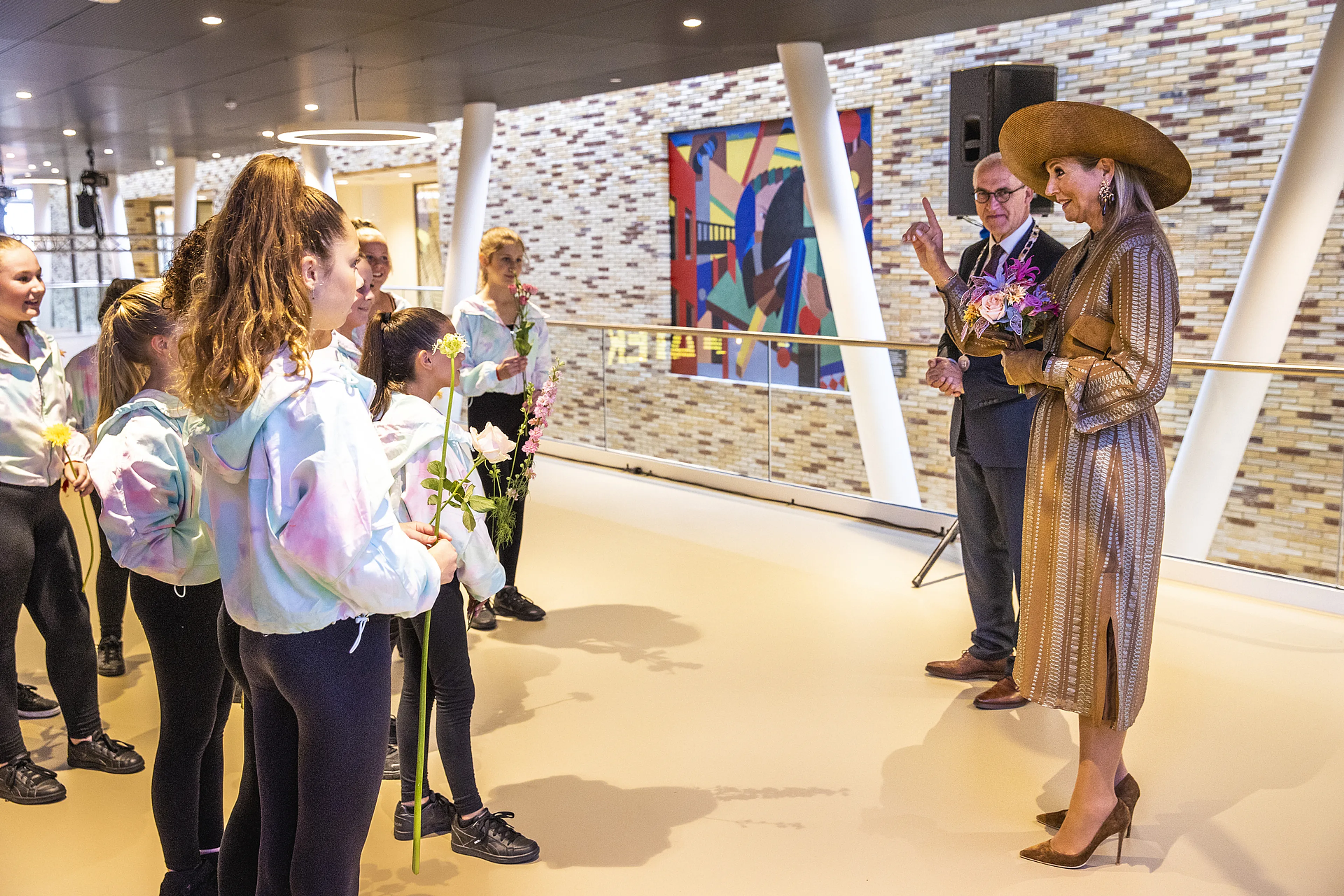 Koningin Máxima heeft woensdagmiddag in Hoogezand Huis van Cultuur en Bestuur van de gemeente Midden-Groningen geopend. In dit pand zijn de bibliotheek, muziekschool, het theater en het gemeentehuis gehuisvest.