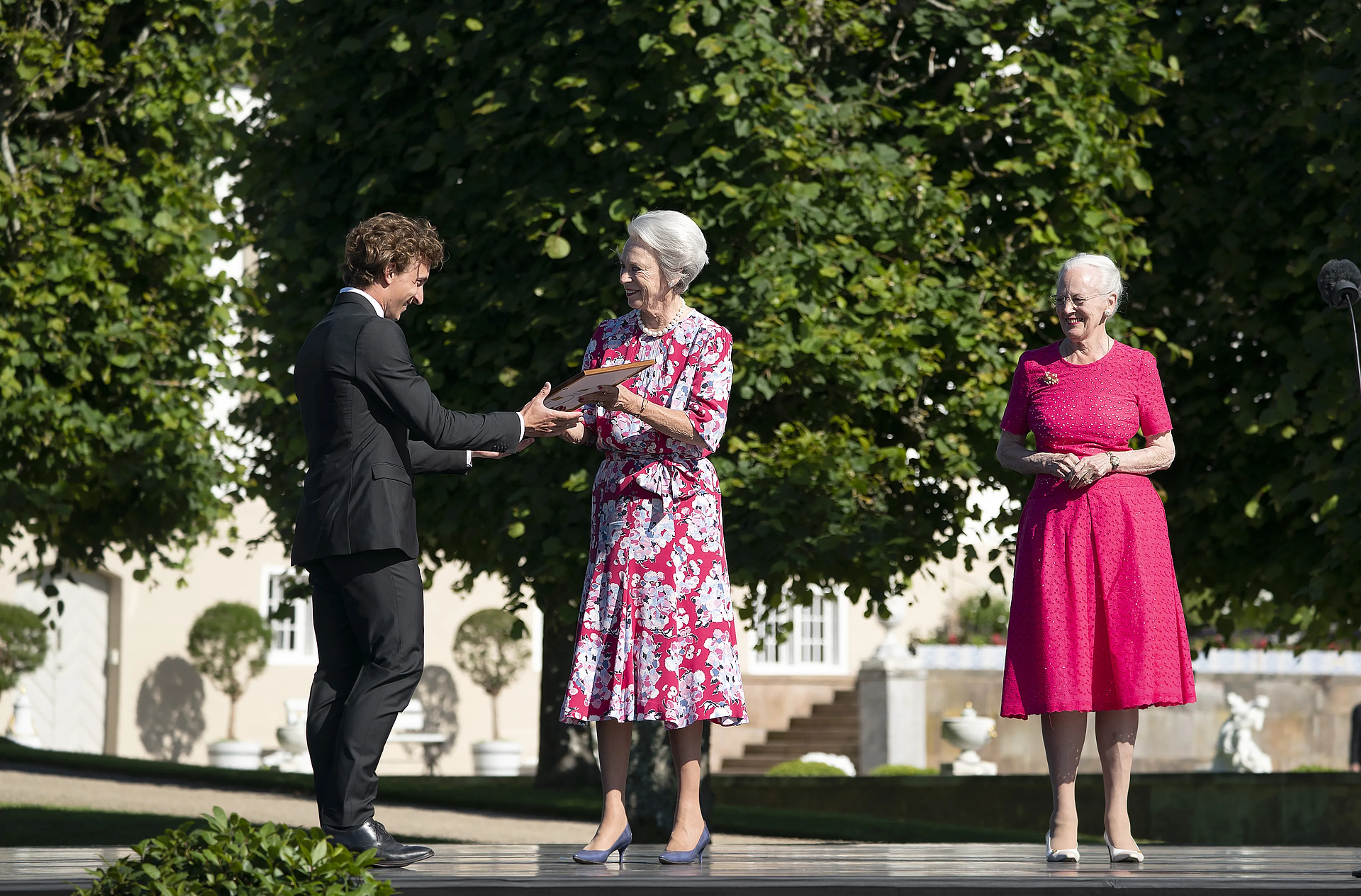 Operazanger Nicolai Elsbjerg en balletdanser Tobias Praetorius waren dit keer de gelukkigen. Ze kregen de beurs als financiële steun voor hun verdere studies en ontwikkeling. Zowel Nicolai als Tobias gaven in de paleistuin een korte voorstelling voor de koninklijke zussen en een aantal genodigden.