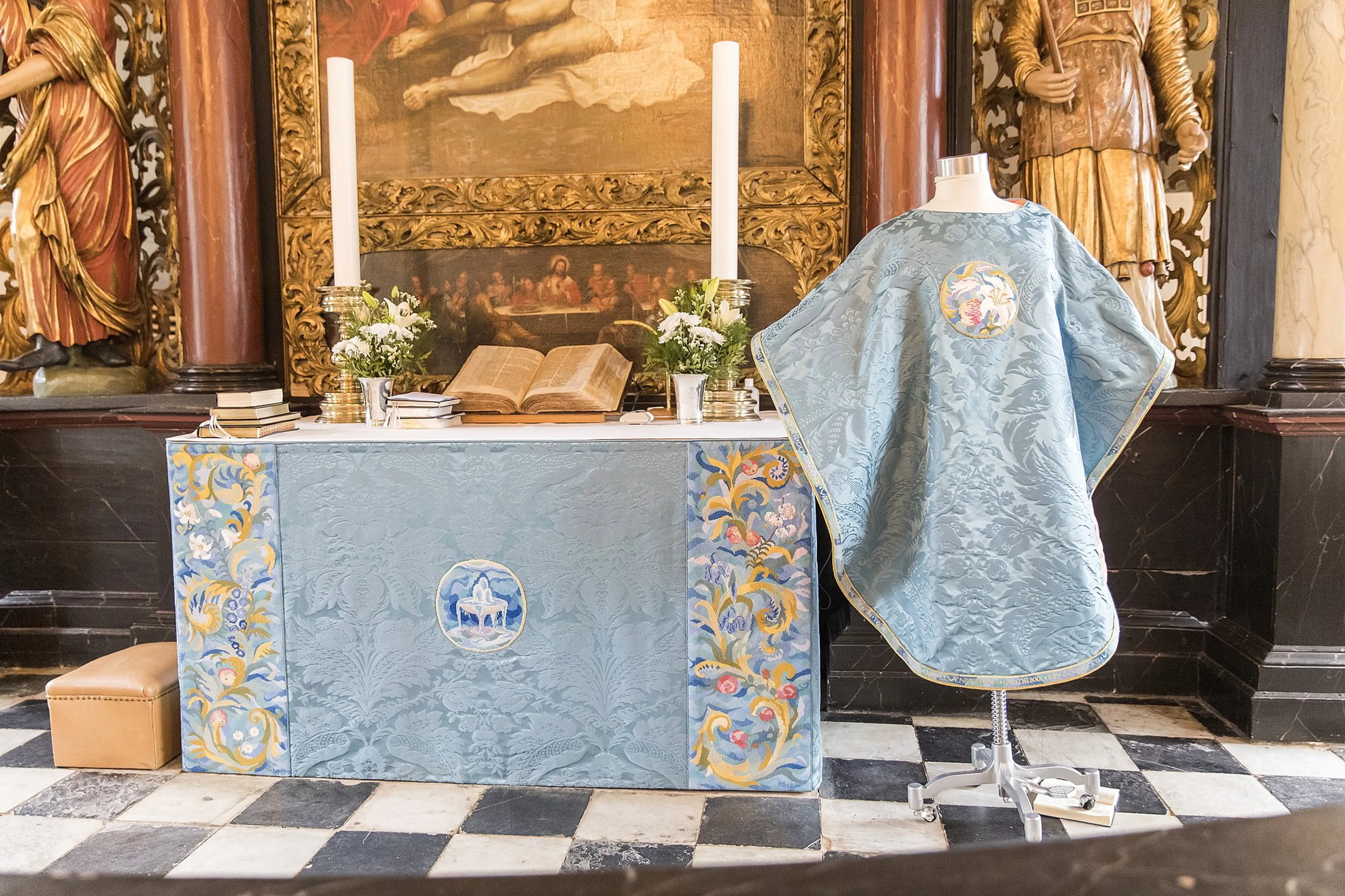 De paleiskerk van Gråsten Slot heeft naast een altaarkleed nu ook een opperkleed van de hand van koningin Margrethe. De kazuifel werd zondag in gebruik genomen. De Deense koningin Margrethe werkte een jaar aan het opperkleed.