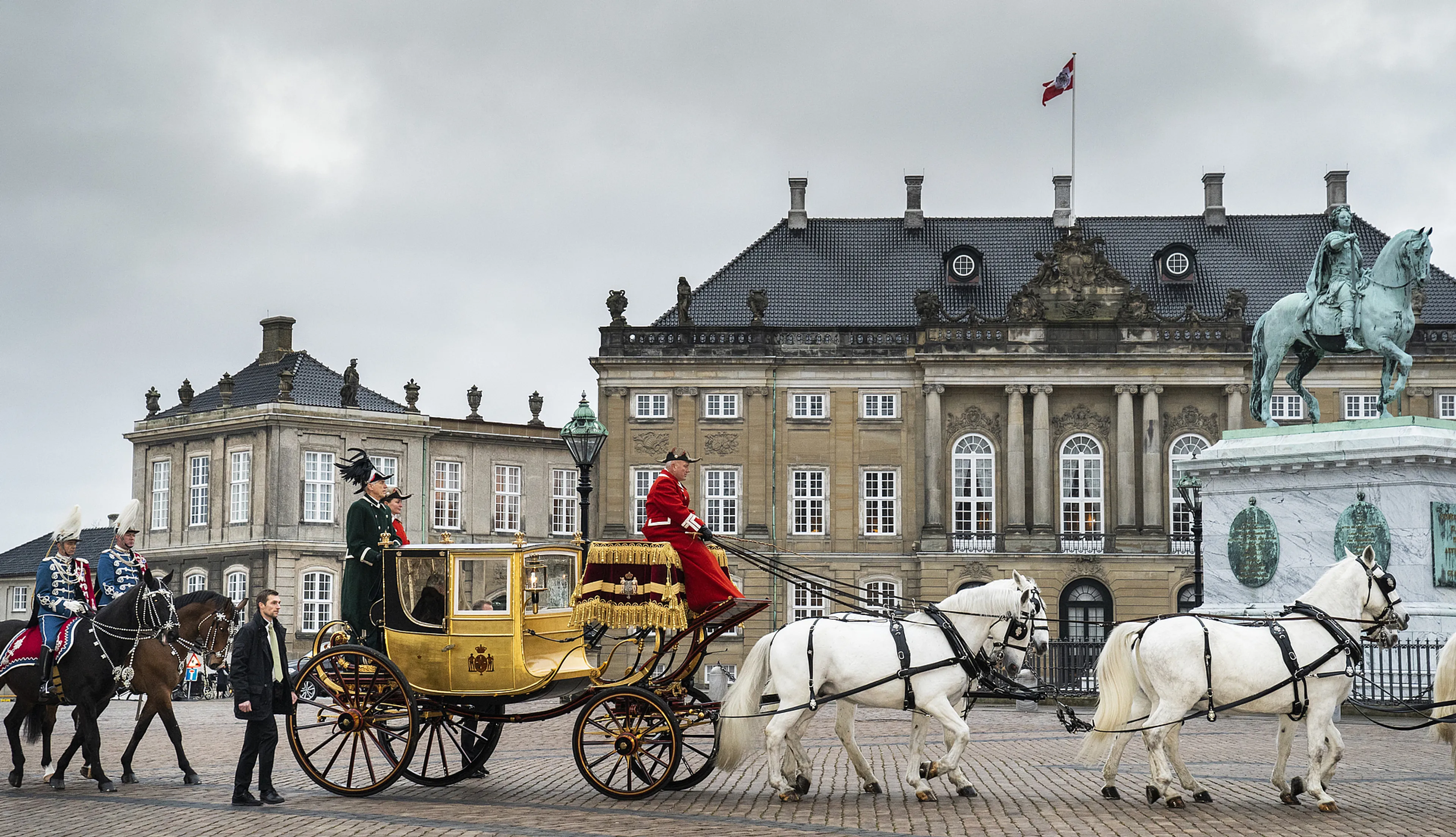 De Deense koningin Margrethe hecht aan tradities. Daarom is vrijdagmorgen de gouden koets uitgereden om haar van paleis Amalienborg naar Christiansborg Slot te rijden voor de laatste nieuwjaarsontvangsten van deze week. De koningin gebruikte donderdag voor dezelfde rit nog de auto, maar voor het slotakkoord werd de gouden koets ingespannen.