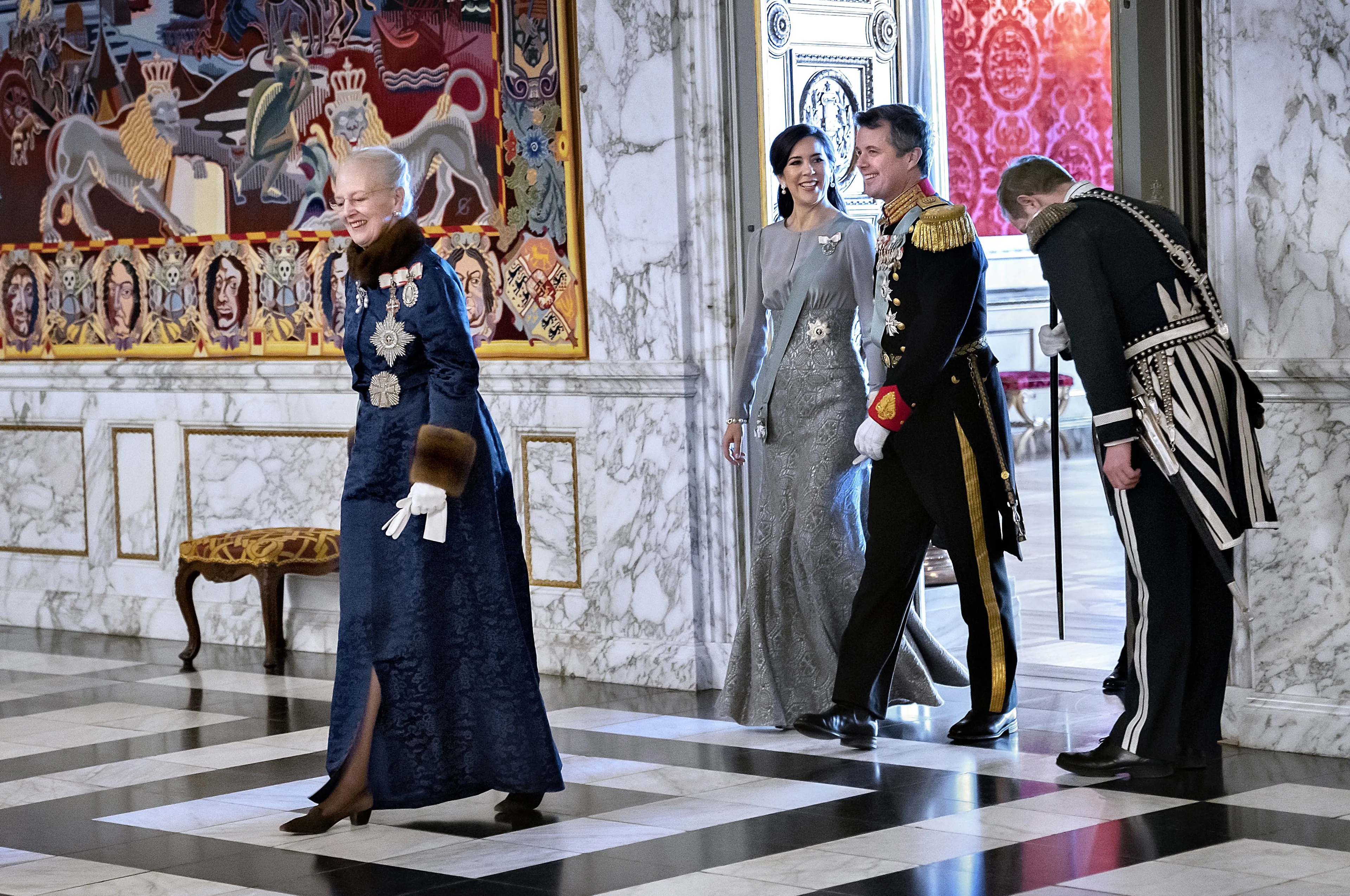 Zondag vond al een nieuwjaarsbanket op het paleis in Kopenhagen plaats. De Deense koningin organiseerde traditiegetrouw op de eerste dag van het jaar een banket voor leden van de koninklijke familie, afgevaardigden van de regering, personeelsleden en andere hoogwaardigheidsbekleders.