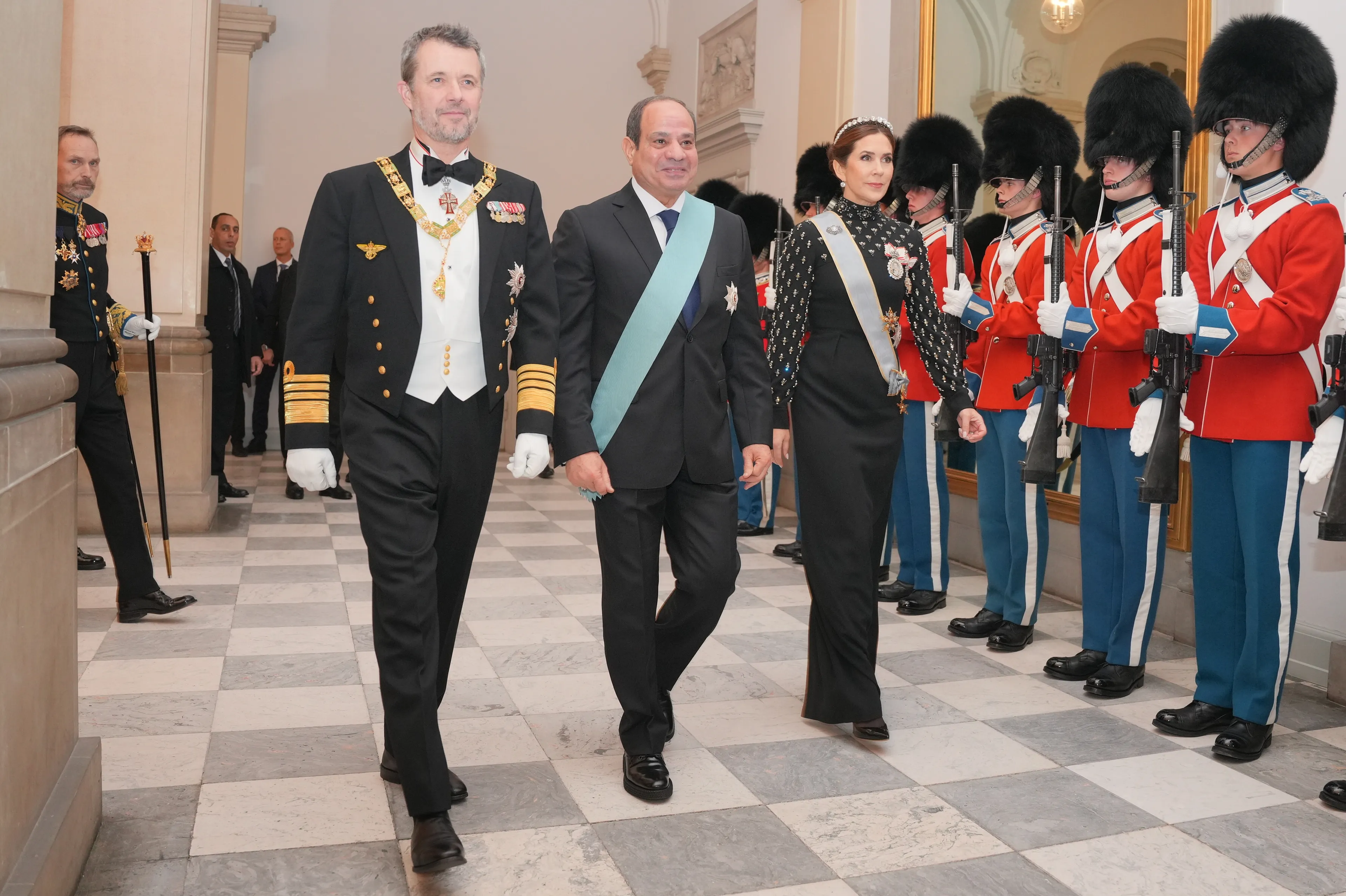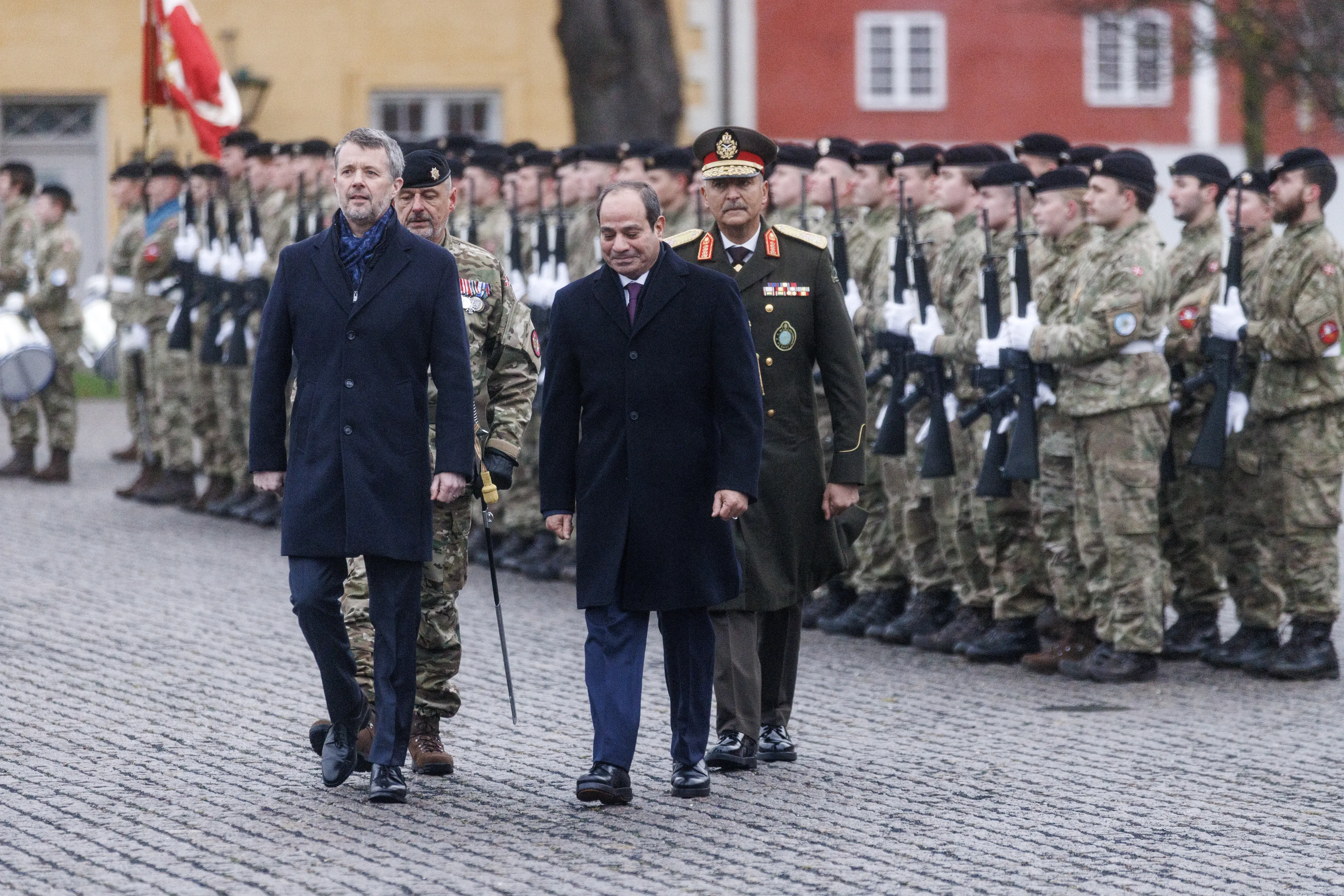 De eerste dag van het staatsbezoek van Egypte aan Denemarken begon vrijdag met een officieel ontvangst op het plein bij Amalienborg in Kopenhagen. Het koningspaar ontving daar de president van Egypte waarna de twee staatshoofden de erewacht inspecteerden. Een ceremonieel onderdeel van de meeste staatsbezoeken. Ook werd er een krans gelegd bij een monument. Na het leggen van de kransen reed het koninklijk paar samen met de president in een rijtuig terug naar het paleis. Zaterdag gaat het programma verder.