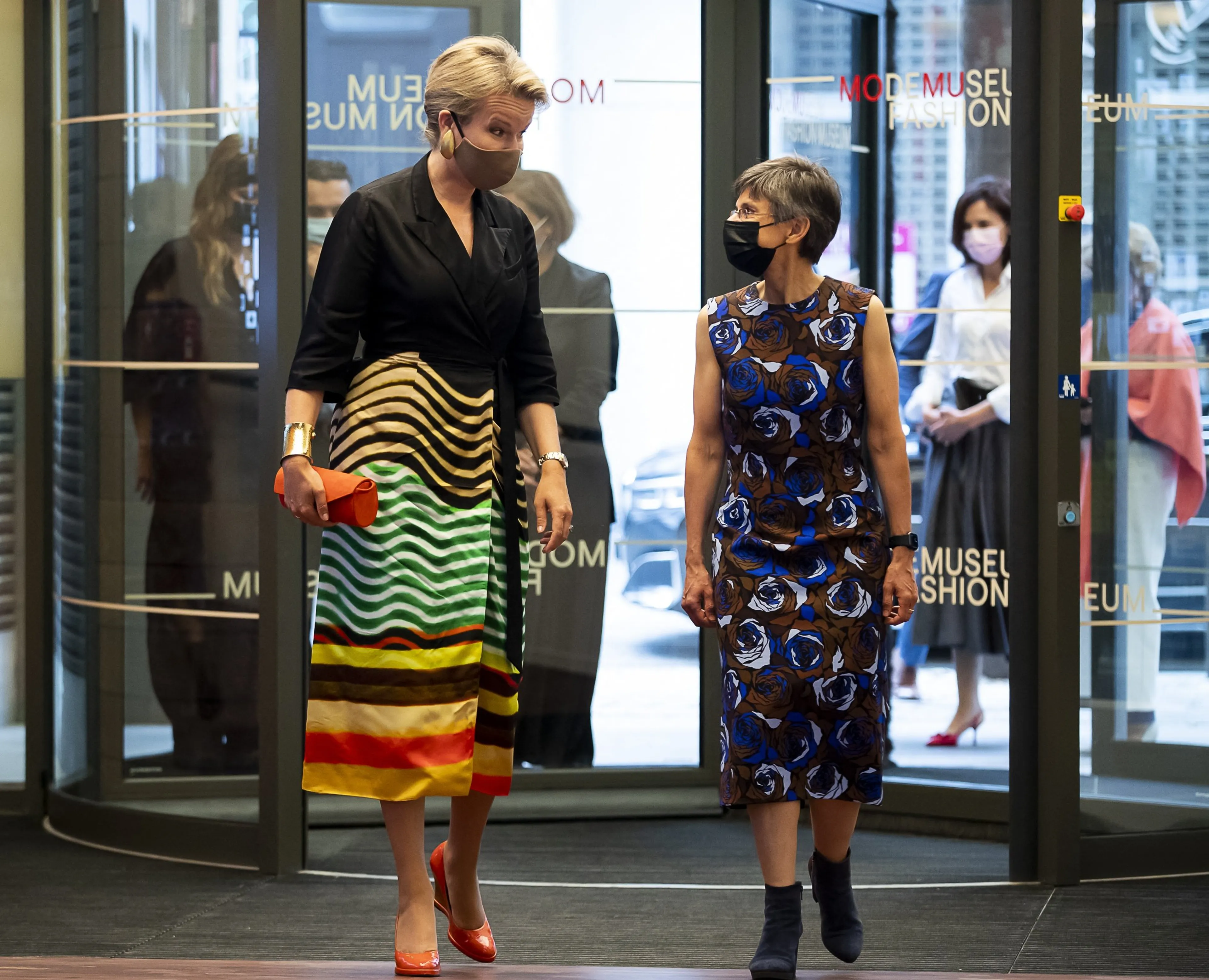 Koningin Mathilde showt nieuwe jurk in ModeMuseum