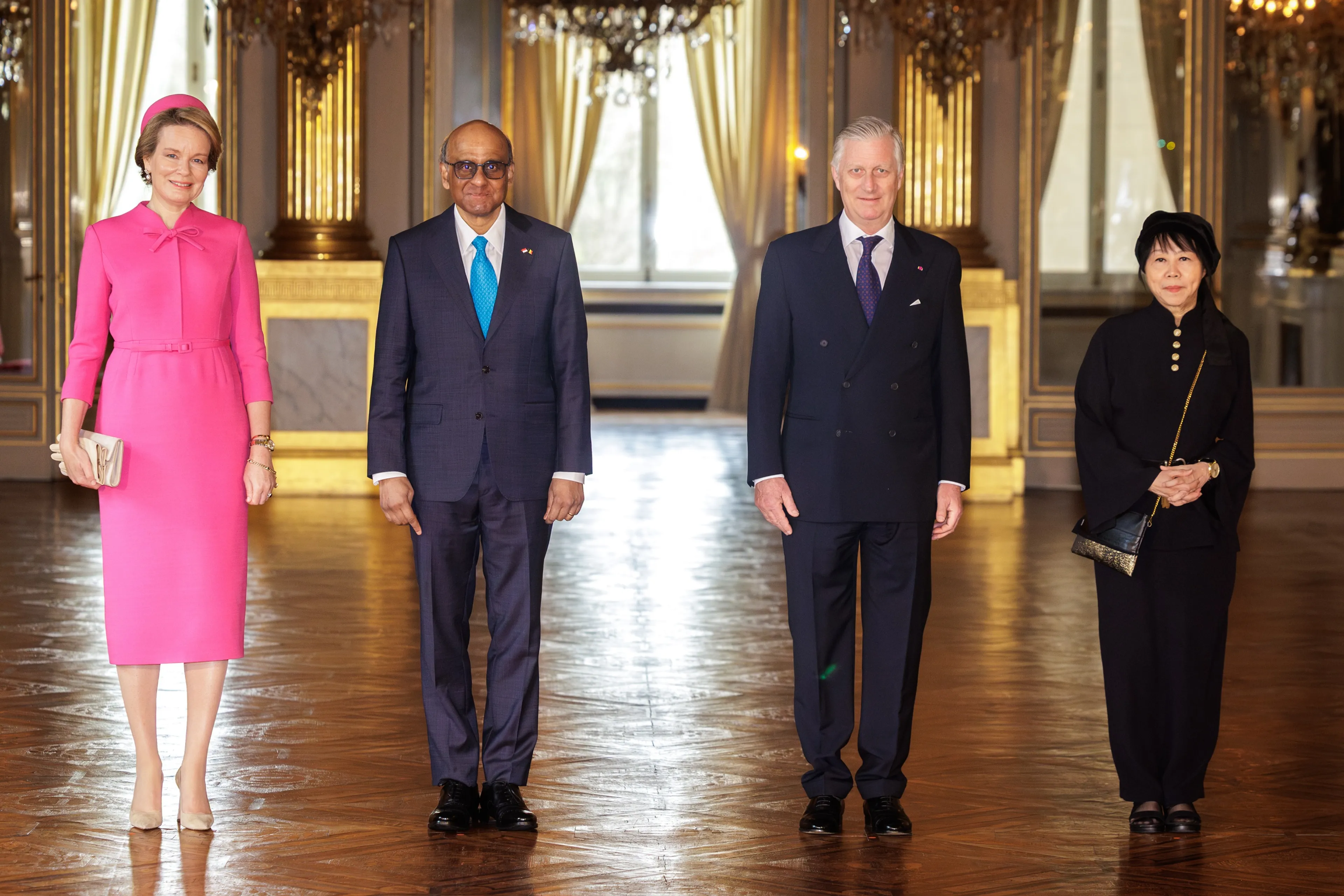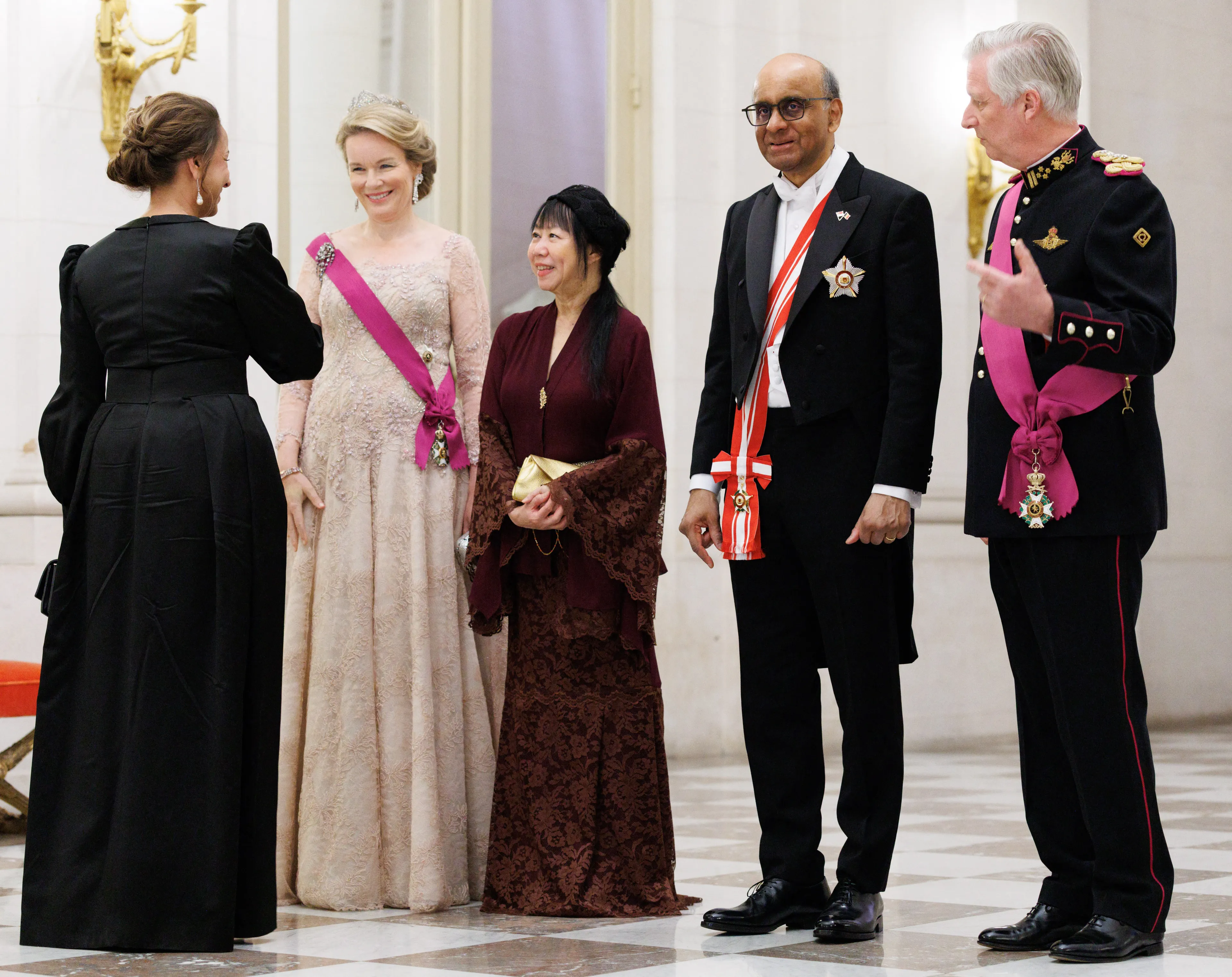 Maandagavond stond in België het staatsbanket op het programma. In het Kasteel van Laken werden de president van Singapore Tharman Shanmugaratnam en zijn echtgenote Jane Yumiko Ittogi warm ontvangen. Koning Filip hield een lange toespraak waarin hij de banden met Singapore meermaals aanhaalde. Ook de conflicten in Oekraïne, het Midden-Oosten, Afrika en de toenemende spanningen in de Zuid-Chinese Zee kwamen aan bod. Koningin Mathilde deed haar best om er weer tiptop uit te zien en dat deed ze in een jurk met een connectie met Nederland.