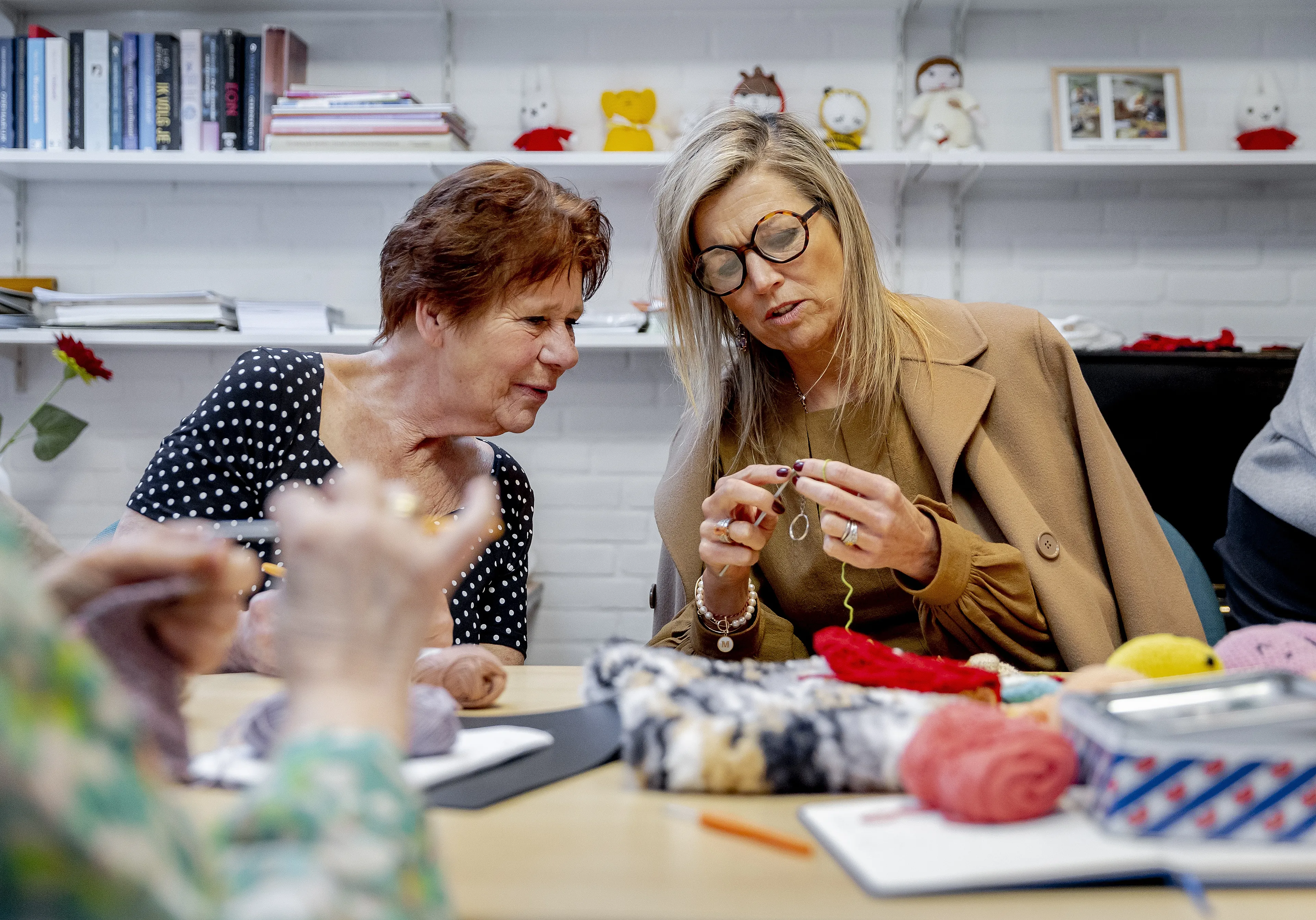 Haken, punniken en breien: koningin Máxima krijgt les van senioren