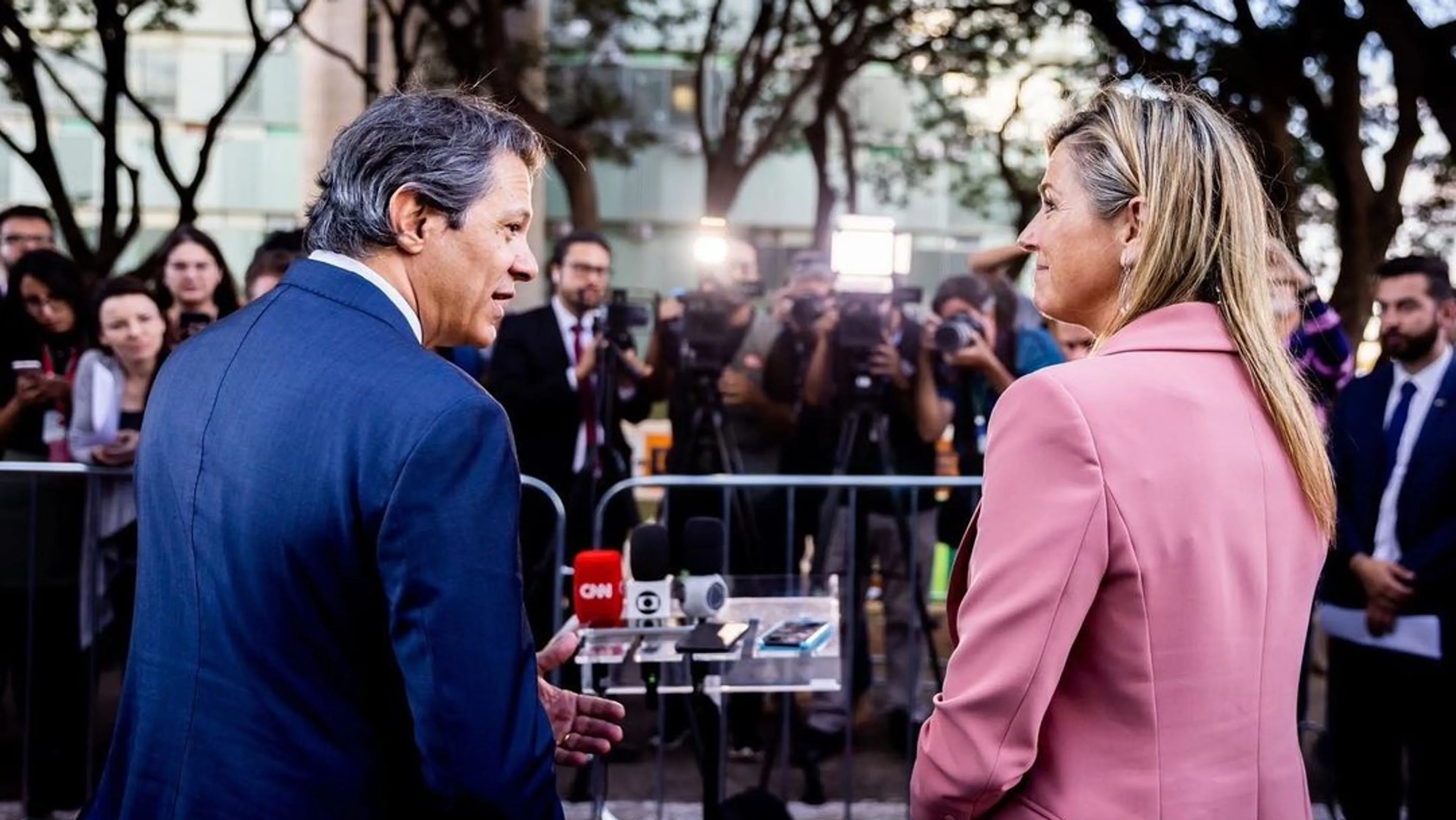 Ook bezoekt ze een les over verstandige financiële keuzes. Hoe kunnen Braziliaanse huishoudens meer controle krijgen over hun inkomsten en uitgaven? De koningin ontmoet politici, zoals minister Fernando Haddad van Financiën, waarna ze samen de pers te woord staan.