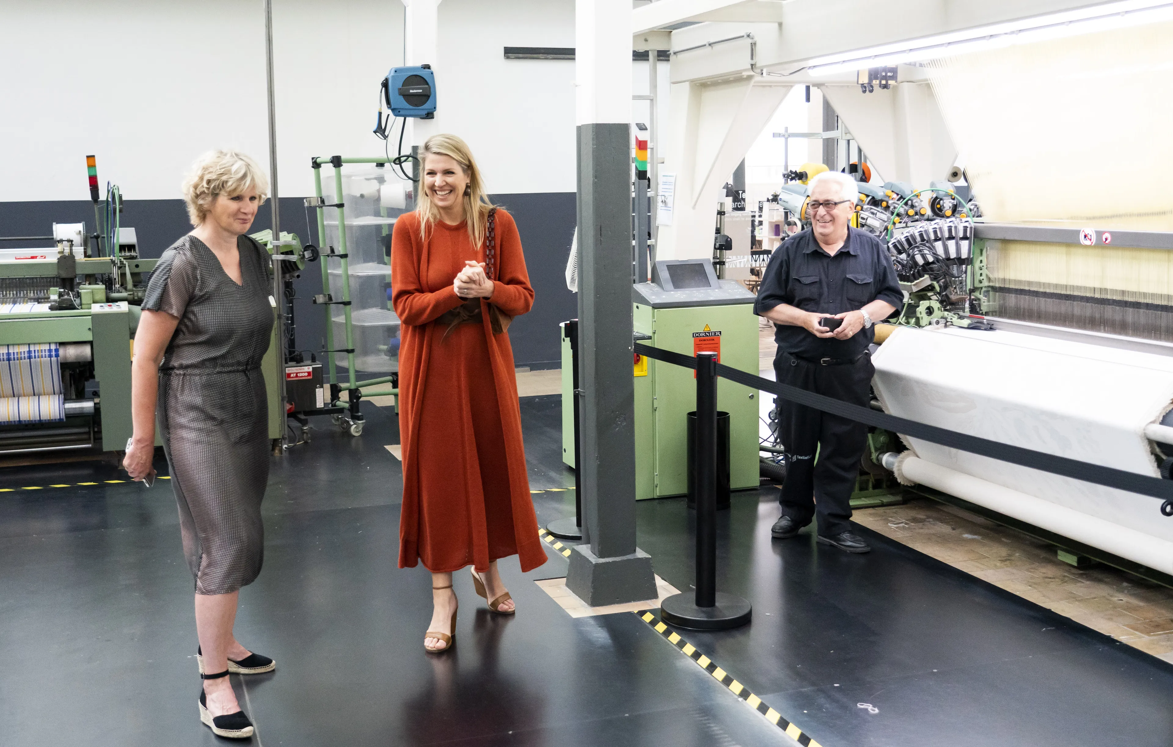 Eerst kreeg de koningin uitleg over machinaal borduren en hoe dat in zijn werk gaat. Koningin Máxima kon zelf zien hoe het machinaal borduren van de nieuwe gordijnen gaat. Daarna bekeek ze enkele borduursels en kreeg ze uitleg over met de hand borduren. Als afsluiting pakte ze ook zelf de borduurnaald er even bij om de hand aan haar eigen gordijnen te leggen. De gordijnen voor Paleis Huis ten Bosch worden "nóg mooier" dan Máxima "ooit had verwacht", vertelde ze.
