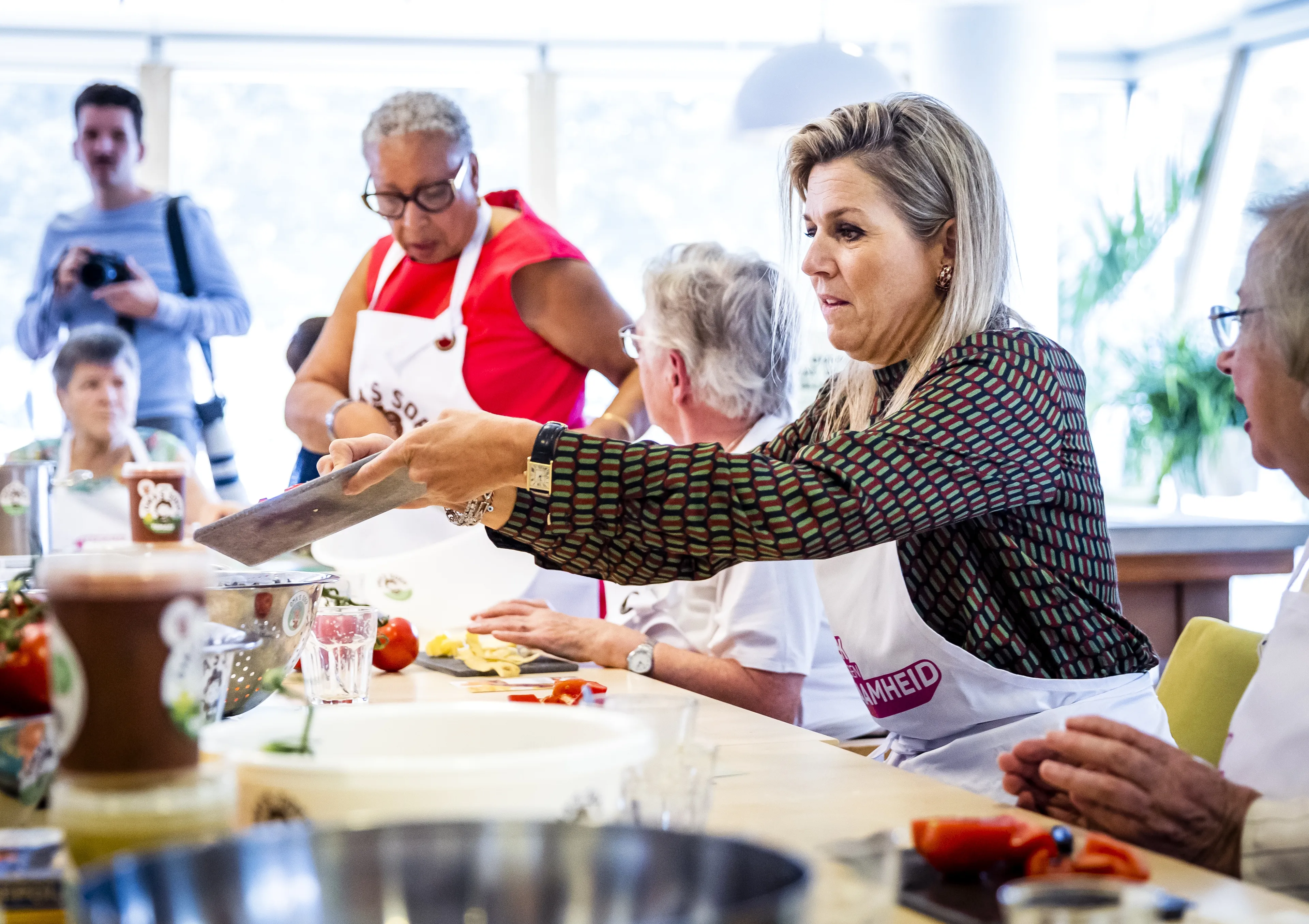 Koningin Máxima moest woensdag tijdens een bezoek aan een buurthuis in Amsterdam aan de slag. Samen met een aantal ouderen en jongeren kookte de koningin soep. Máxima bezocht het buurthuis in het kader van de Week tegen Eenzaamheid.
