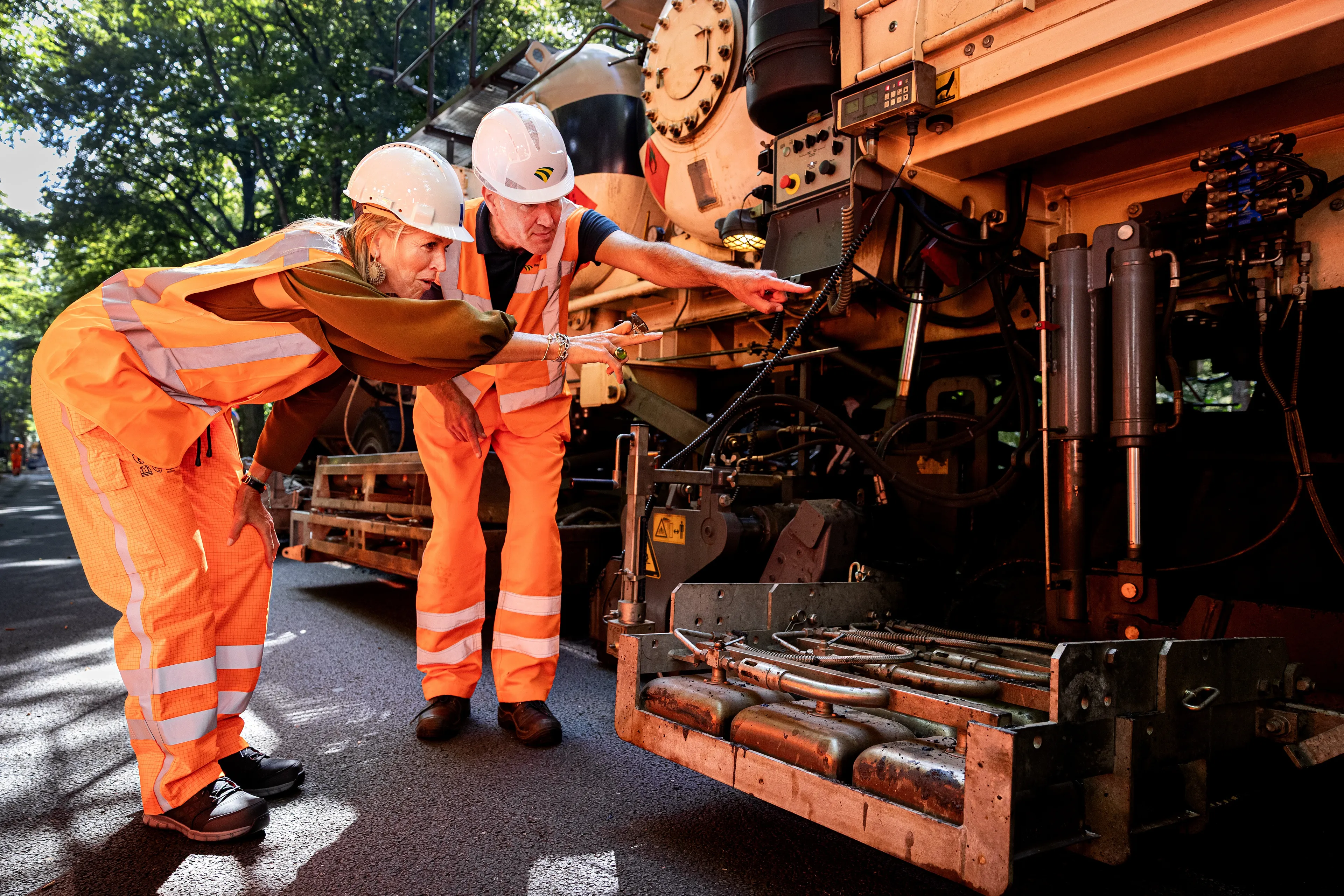Dinsdagochtend begint koningin Máxima aan een werkbezoek aan de infrastructurele sector in maar liefst drie verschillende plaatsen. Hier hoort de koningin aan hoe de sector circulariteit toepast en werkt aan het doel om klimaatneutraal te worden. Het bezoek begint in Amstelveen bij het project rond de verbreding van de snelweg A9. Bij aankomst verschijnt Máxima in een bekende look van haar favoriete modehuis Natan. De outfit bestaat uit een mosterdbruine top en een lichtroze pantalon, die ze combineert met bijpassende pumps en een clutch. De outfit van Natan moet al snel omgewisseld worden voor een look waarin koningin Máxima veilig de werkplaatsen kan betreden. Ook voor de koningin liggen er – net als voor de medewerkers en aanwezige pers – een fluorescerend oranje broek en hesje klaar. De bijbehorende schoenen met stalen neuzen kunnen bij dit bezoek ook niet ontbreken. Er is echter één verschil in de kleding, en dat is dat die van Máxima nieuw uit de verpakking komt.