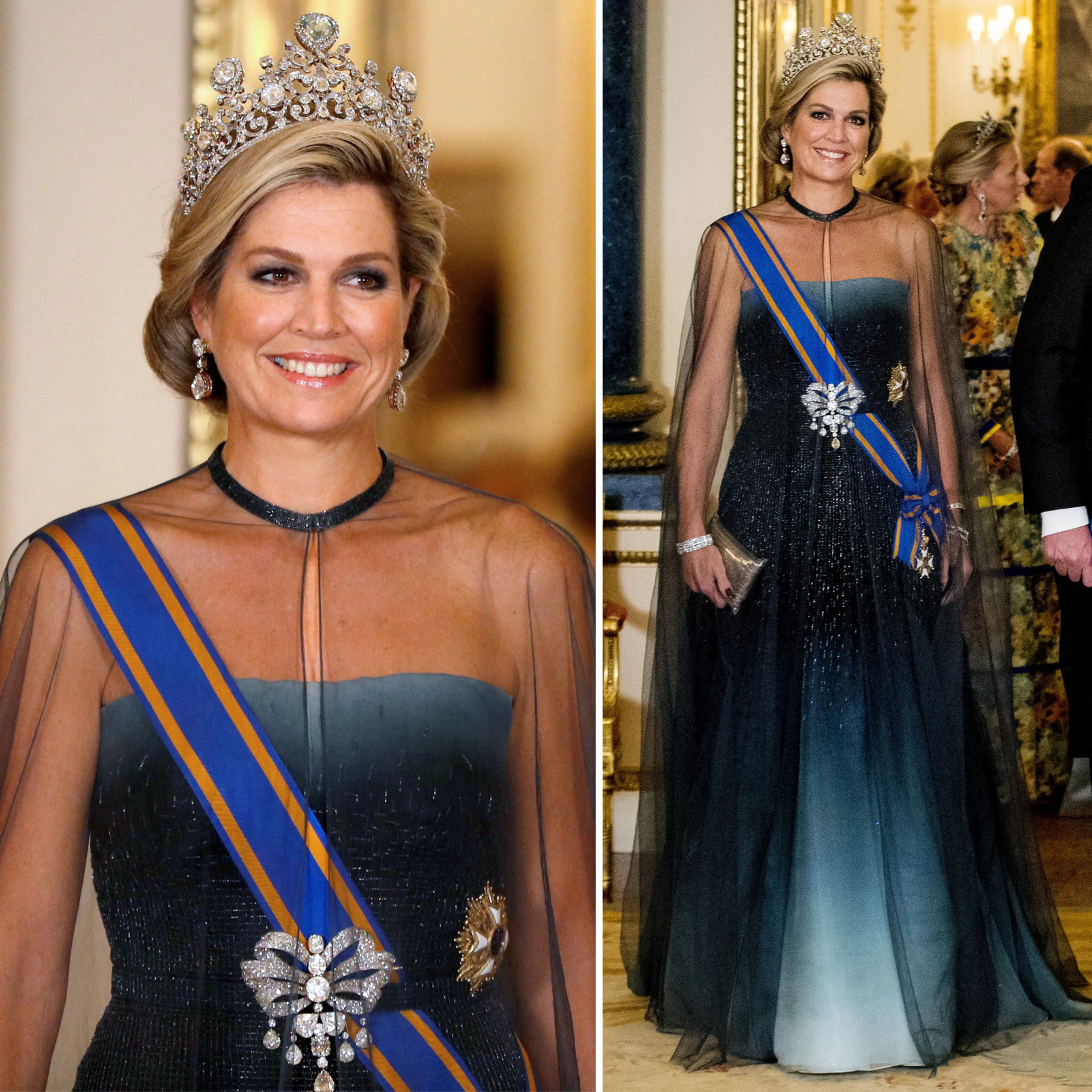 Een ander magisch ontwerp van Jan Taminiau is deze avondjurk met kleurverloop. Koningin Máxima nam de japon mee op staatsbezoek naar Engeland en Noorwegen. Wat een plaatje!