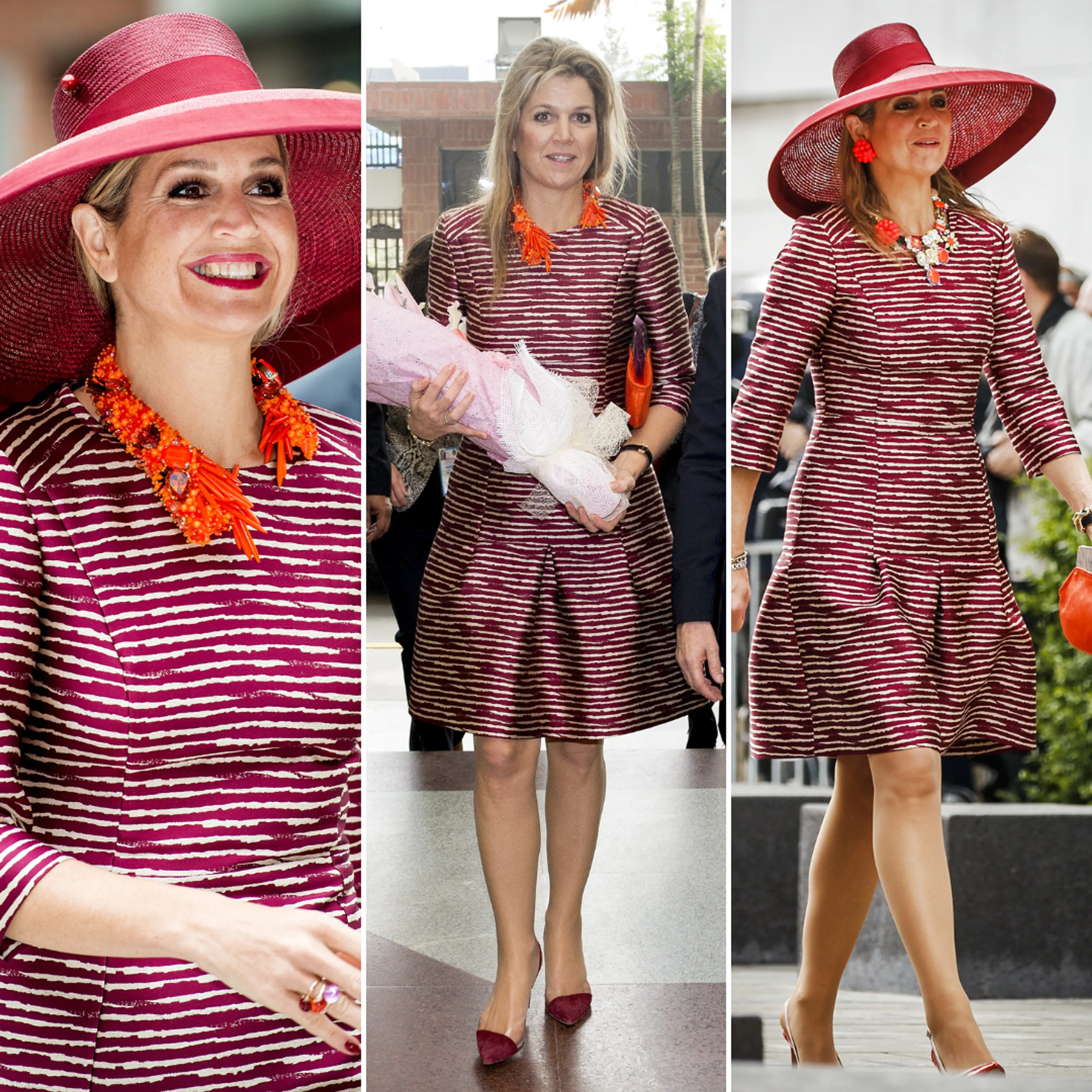 Op de derde en laatste dag van haar bezoek draagt koningin Máxima een jurk die modeliefhebbers bekend voorkomt. Het gaat om een bordeauxrode japon van het Belgische modehuis Natan. Het ontwerp is in de voorbije jaren regelmatig gedragen door de koningin, ook tijdens eerdere VN-reizen. Het valt modejournalist Josine Droogendijk wel gelijk op dat de jurk langer is gemaakt voor deze reis.