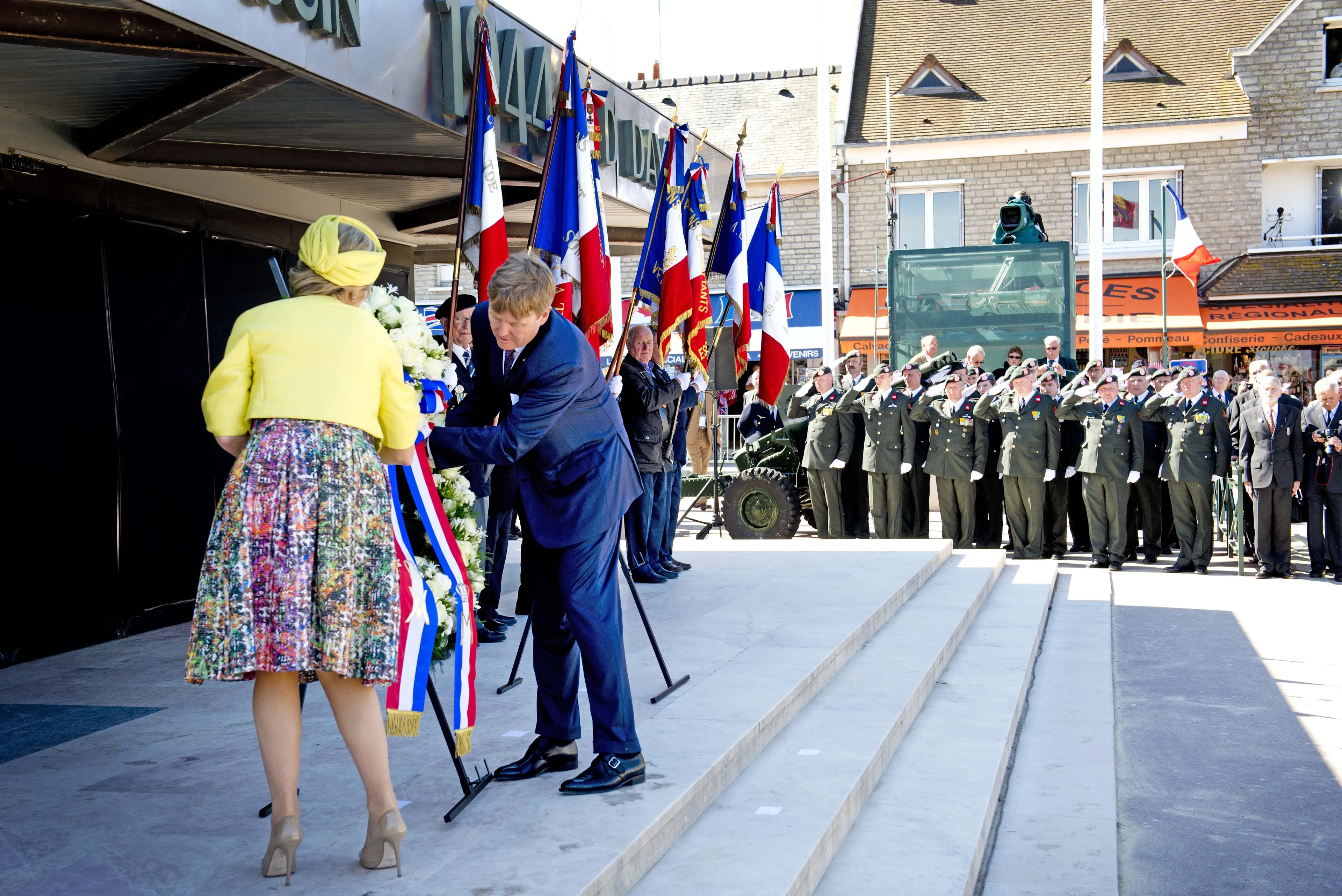 Een ander moment waarop koningin Máxima zich volgens Josine Droogendijk beter had kunnen omkleden, was tijdens een herdenking in Normandië in 2014. "Als je een kranslegging hebt en de minister draagt zelfs donkere kleding, dan moet je dat als koningin zéker doen", zo vindt de modejournalist.