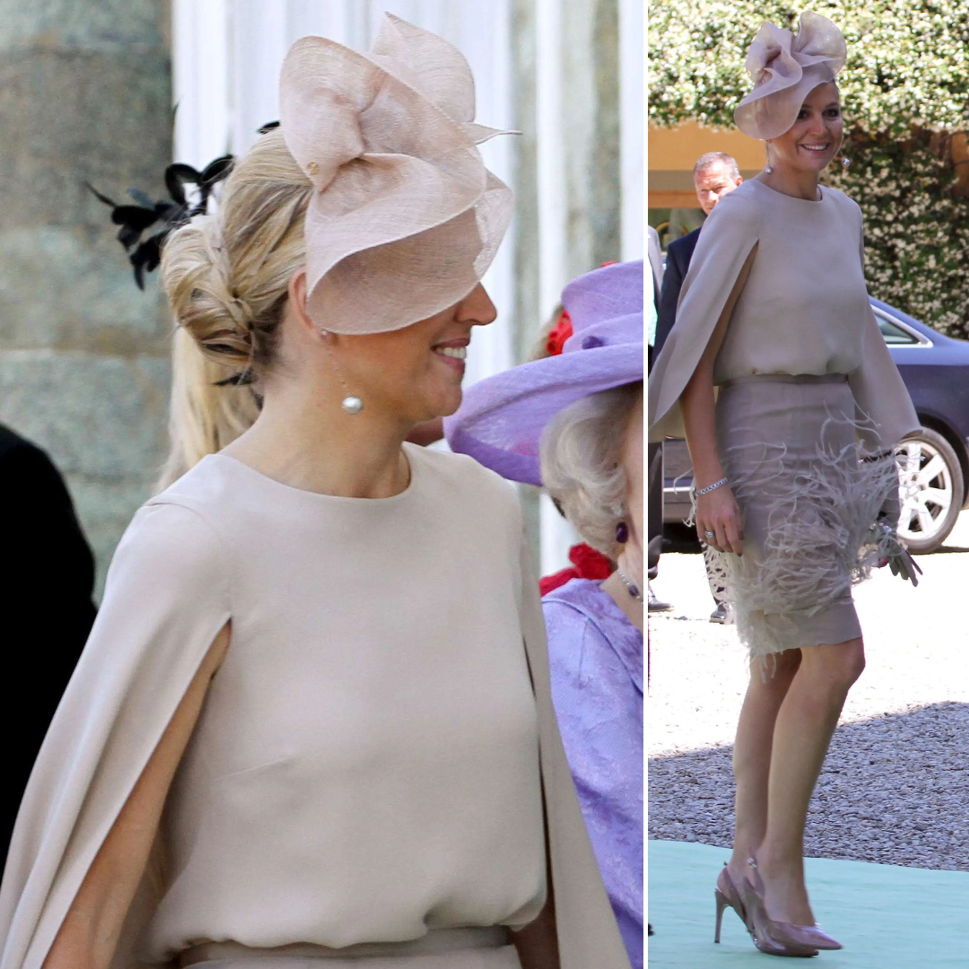 Later dat jaar is M谩xima te gast op de bruiloft van prins Floris en prinses Aim茅e. Hier kiest de prinses voor een meer ingetogen outfit.