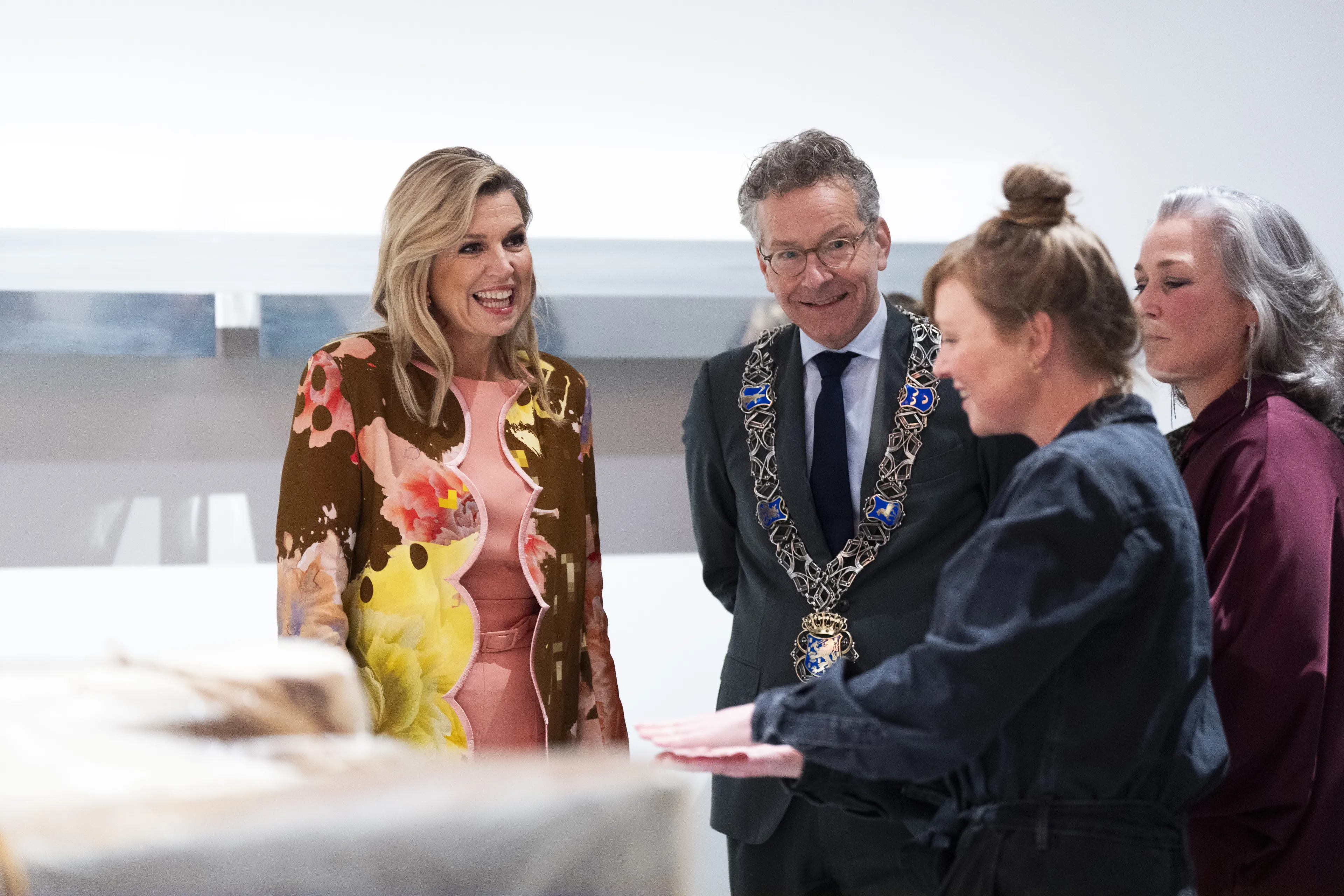 De koningin ging tijdens de opening in gesprek met creatief directeur Miriam van der Lubbe over de impact van Nederlands design. Iets waar de koningin zelf overigens ook wel raad mee weet. Máxima koos namelijk voor een heel toepasselijke outfit, namelijk de Prinsjesdagmantel met bijpassend broekpak van Claes Iversen, een Deens-Nederlandse couturier die de bloemen op de mantel zélf heeft geschilderd.