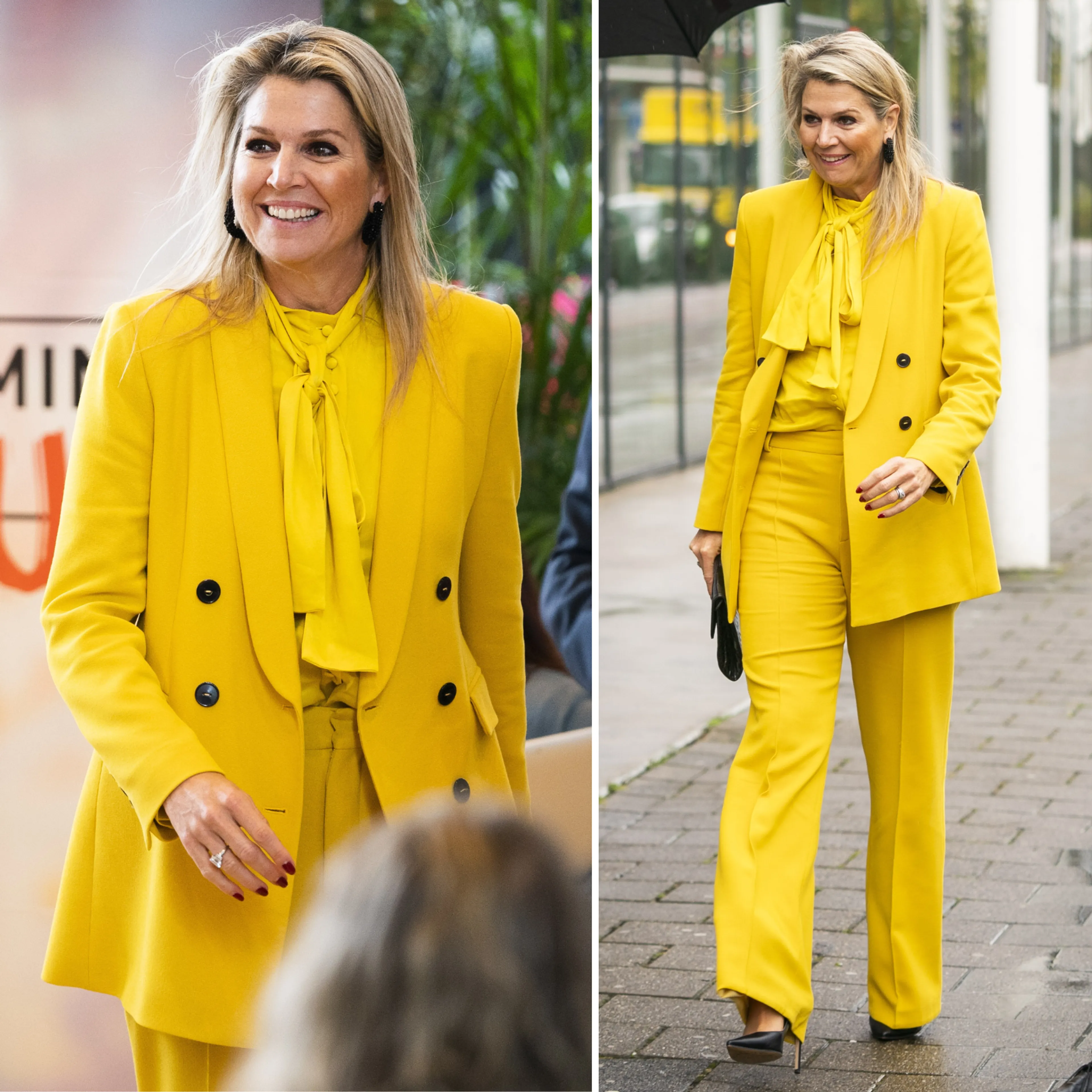 Koning Willem-Alexander en koningin Máxima waren dinsdag en woensdag op streekbezoek naar de Waddeneilanden. Op de tweede dag bezocht het koningspaar de eilanden Terschelling, Ameland en Schiermonnikoog. Koningin Máxima verscheen in een geel broekpak met zwarte accessoires. Wie een goed geheugen heeft, zal de outfit ongetwijfeld herkennen.