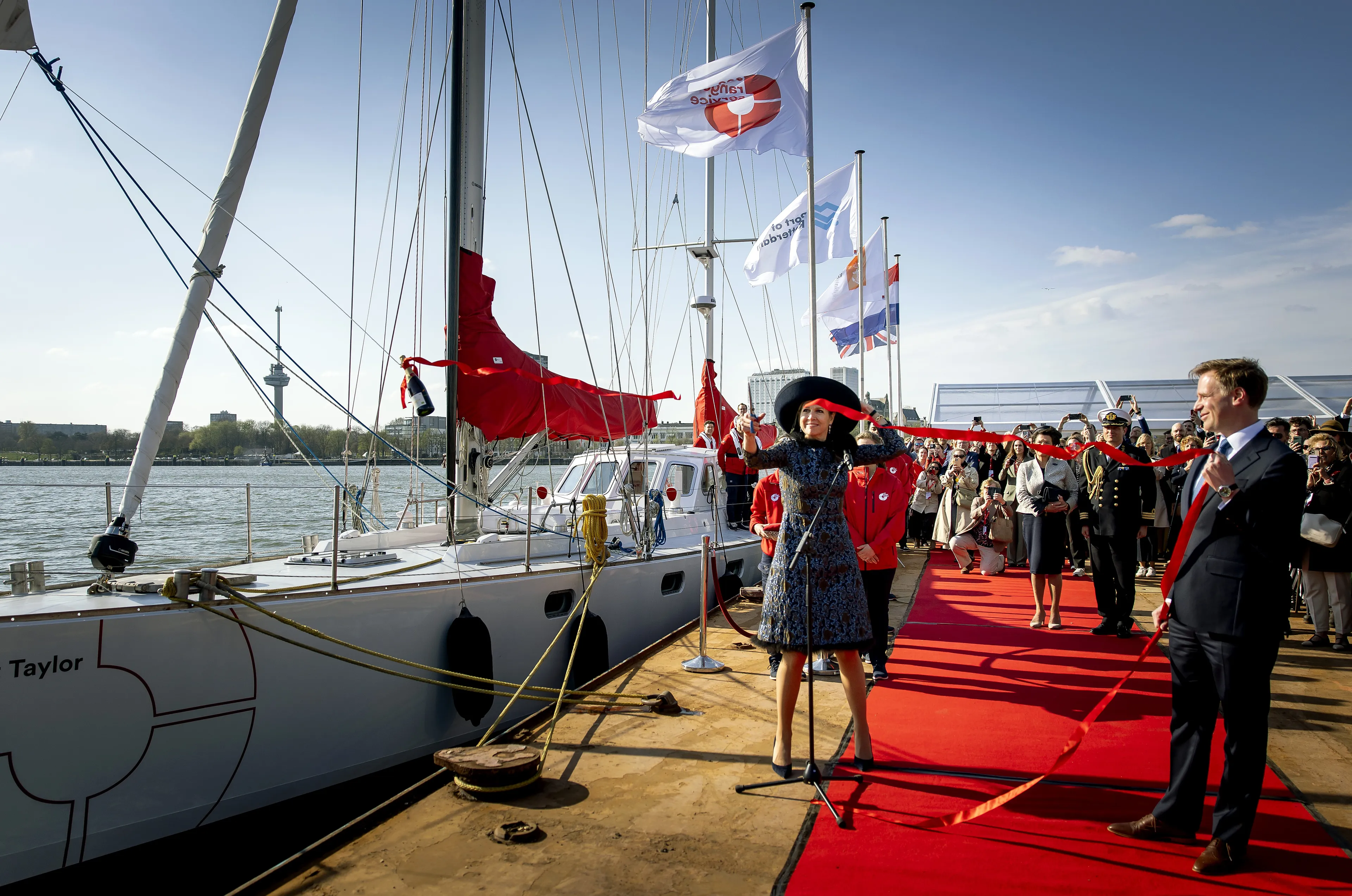 Op de Kop van Zuid in Rotterdam doopte koningin Máxima vanmiddag het nieuwe Sea Ranger schip. Het is niet zomaar een boot: hierop krijgen kansarme jongeren de kans om aan boord te werken voor het behoud van de zee. Bij een kijkje aan boord van het schip, liet de koningin haar hakken aan wal staan.