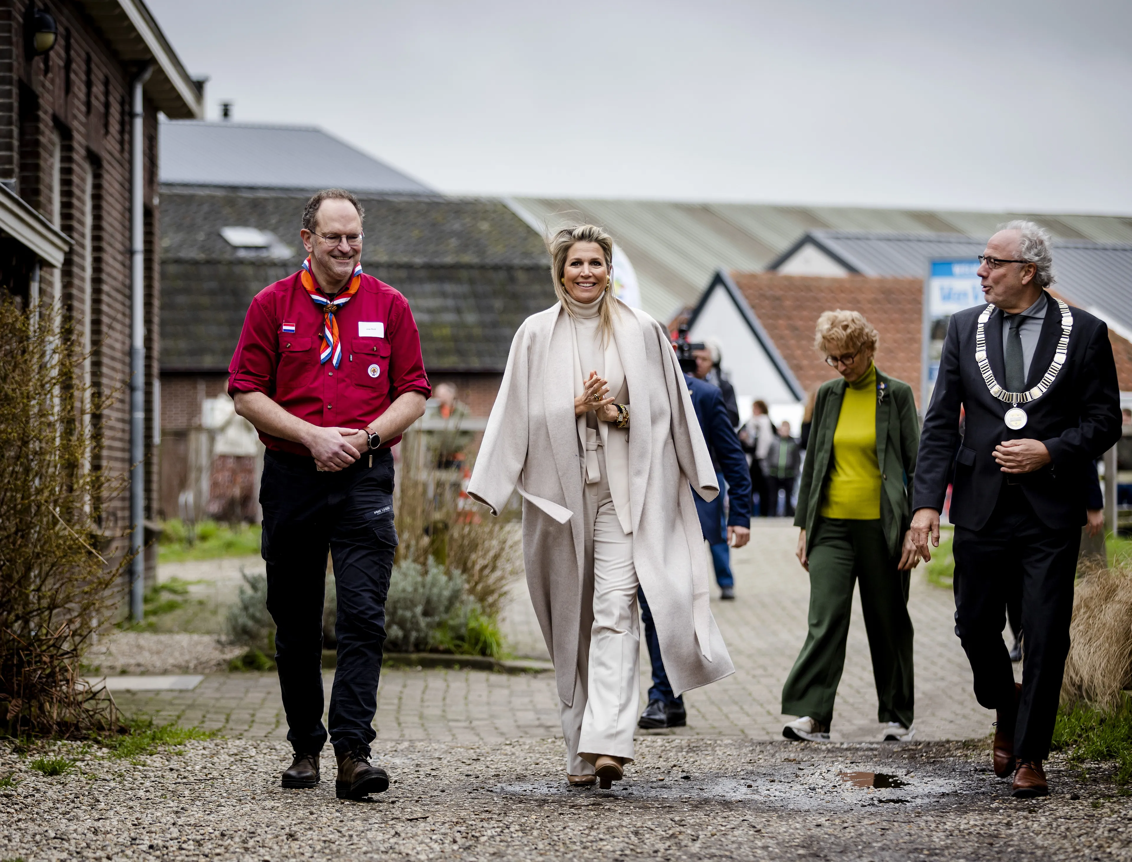Koningin Máxima straalt van top tot teen in crème bij scouting Woerden