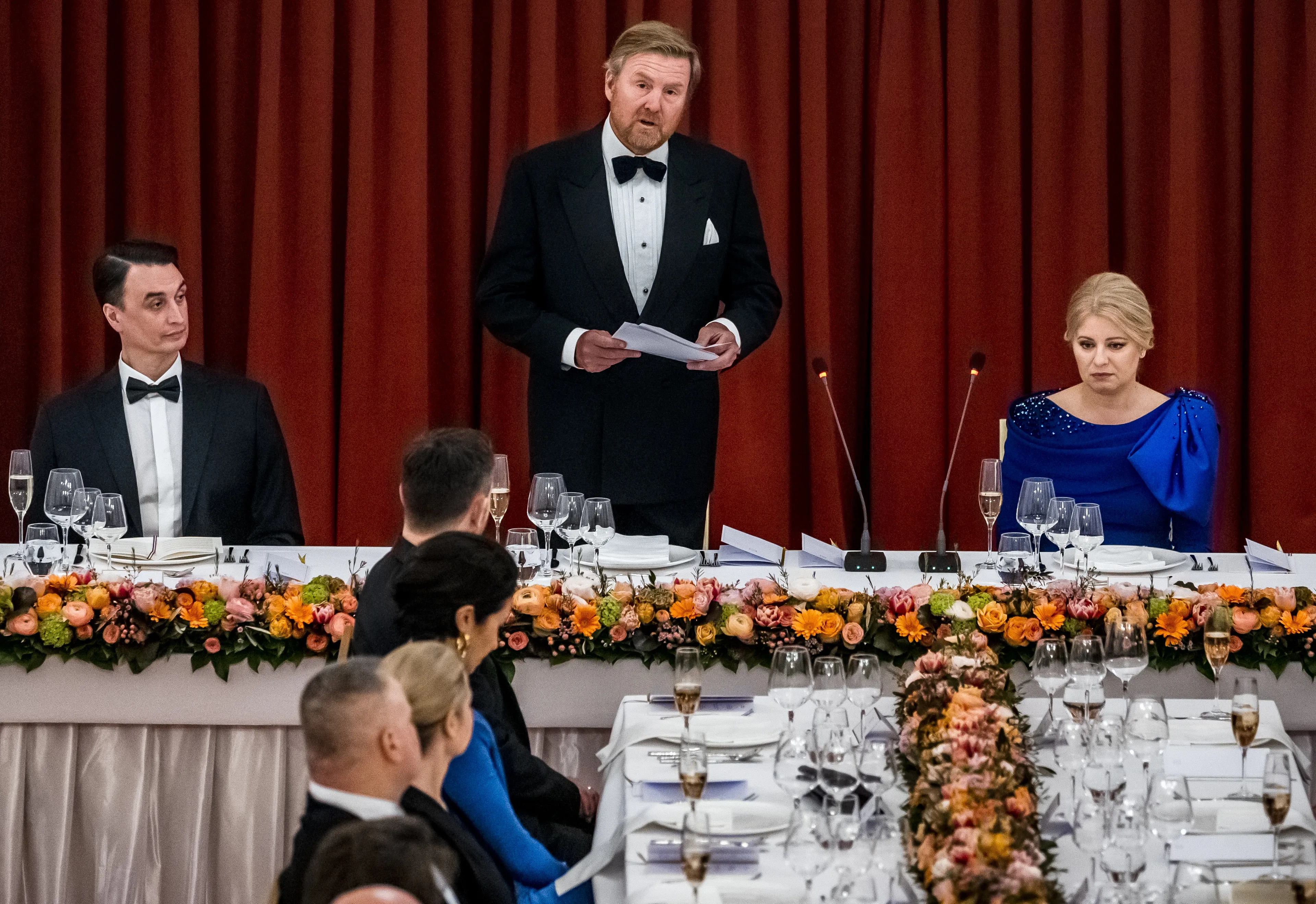 De koning sprak onder meer president Zuzana Čaputová toe en benoemde hoe zij het opneemt voor mensenrechten, weerbaarheid tegen desinformatie en het veilig laten voelen van de Slowaakse burgers. "Welke culturele achtergrond je ook hebt. Wat je seksuele oriëntatie ook is. En welk beroep je ook uitoefent. Helaas is dit niet vanzelfsprekend."