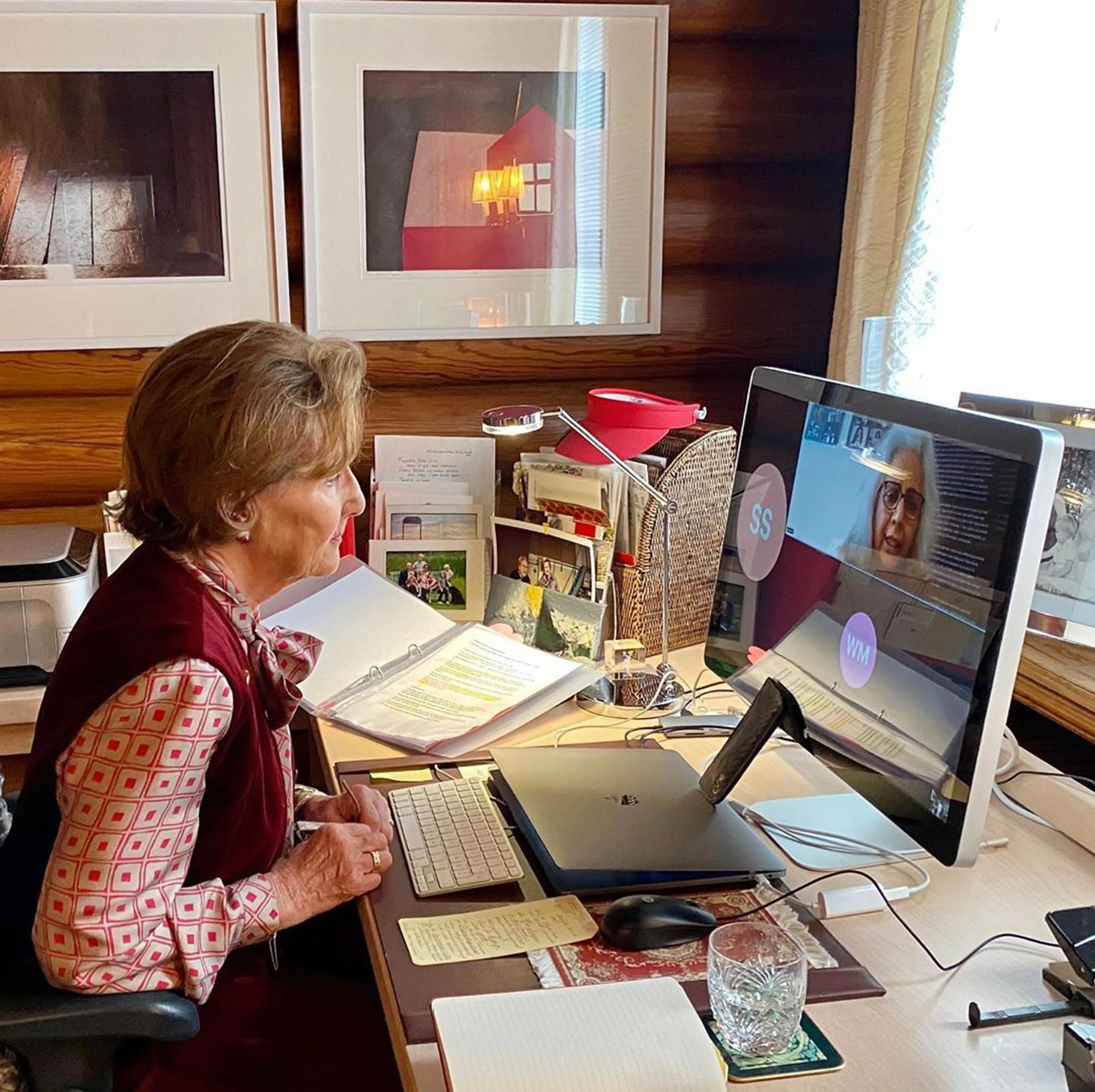 Koningin Sonja had de afgelopen weken verder weinig van zich laten horen. Dinsdag pas verscheen een opname waarin ze haar bureau in Kongsseteren aan het videobellen was Fakhra Salimi van het MiRA-centrum, dat vrouwen met een migratie-achtergrond met raad en daad bijstaat. Tijdens de coronacrisis zorgt het centrum voor extra informatie, in meerdere talen -"Je hebt velen al heel lang geholpen. Ik ben diep onder de indruk van alles wat je de afgelopen 30 jaar hebt bereikt", zo prees koningin Sonja het werk van Salimi.