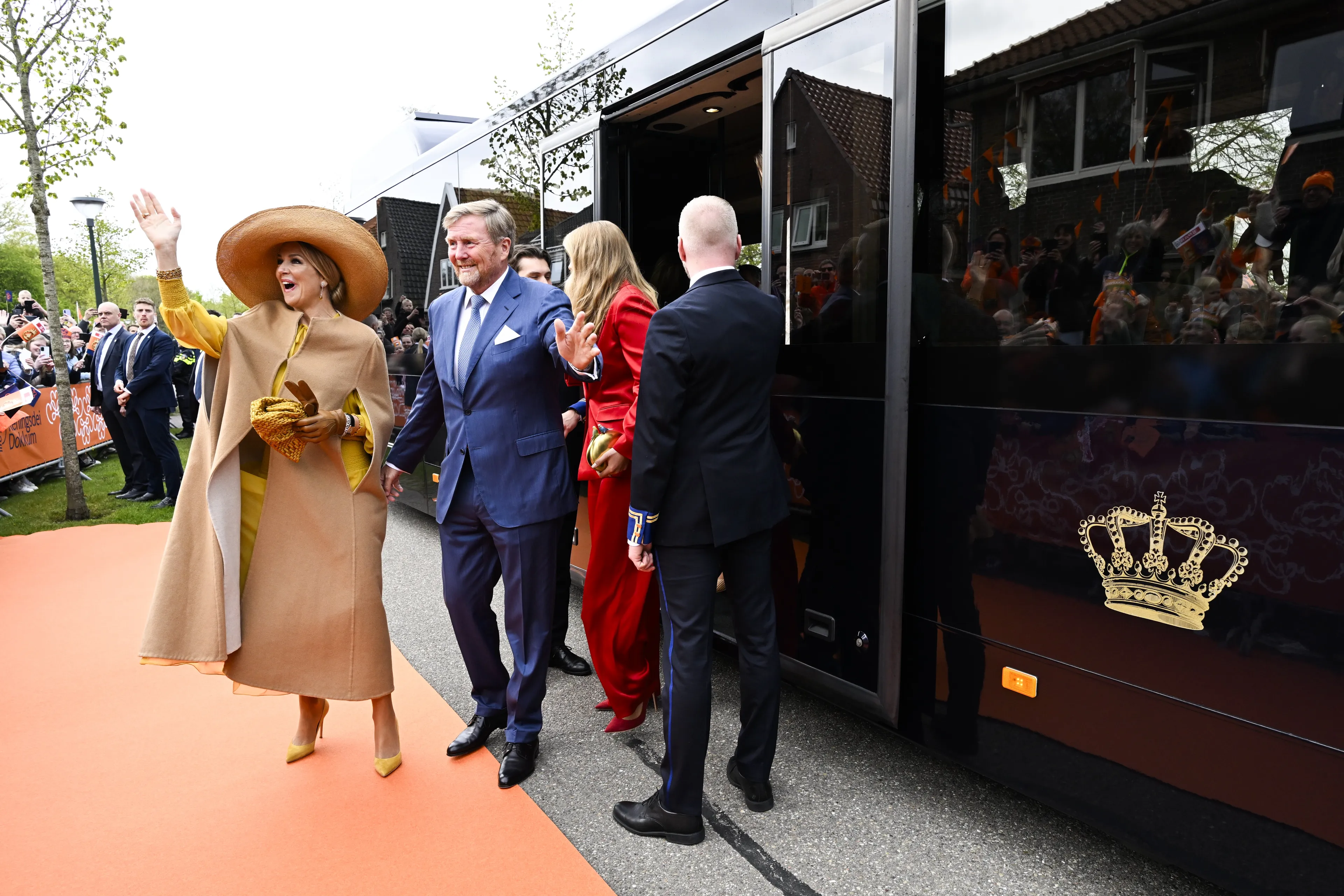 Precies om 11:00 uur rijdt de koninklijke familie in de donkerblauwe koninklijke bus de stad binnen. Zij worden vanaf de Bonifatiuskapel door Friese paarden naar het startpunt van de route begeleid. Koningin Máxima en de drie prinsessen kleden zich in de kleuren van de Dokkummer vlag.