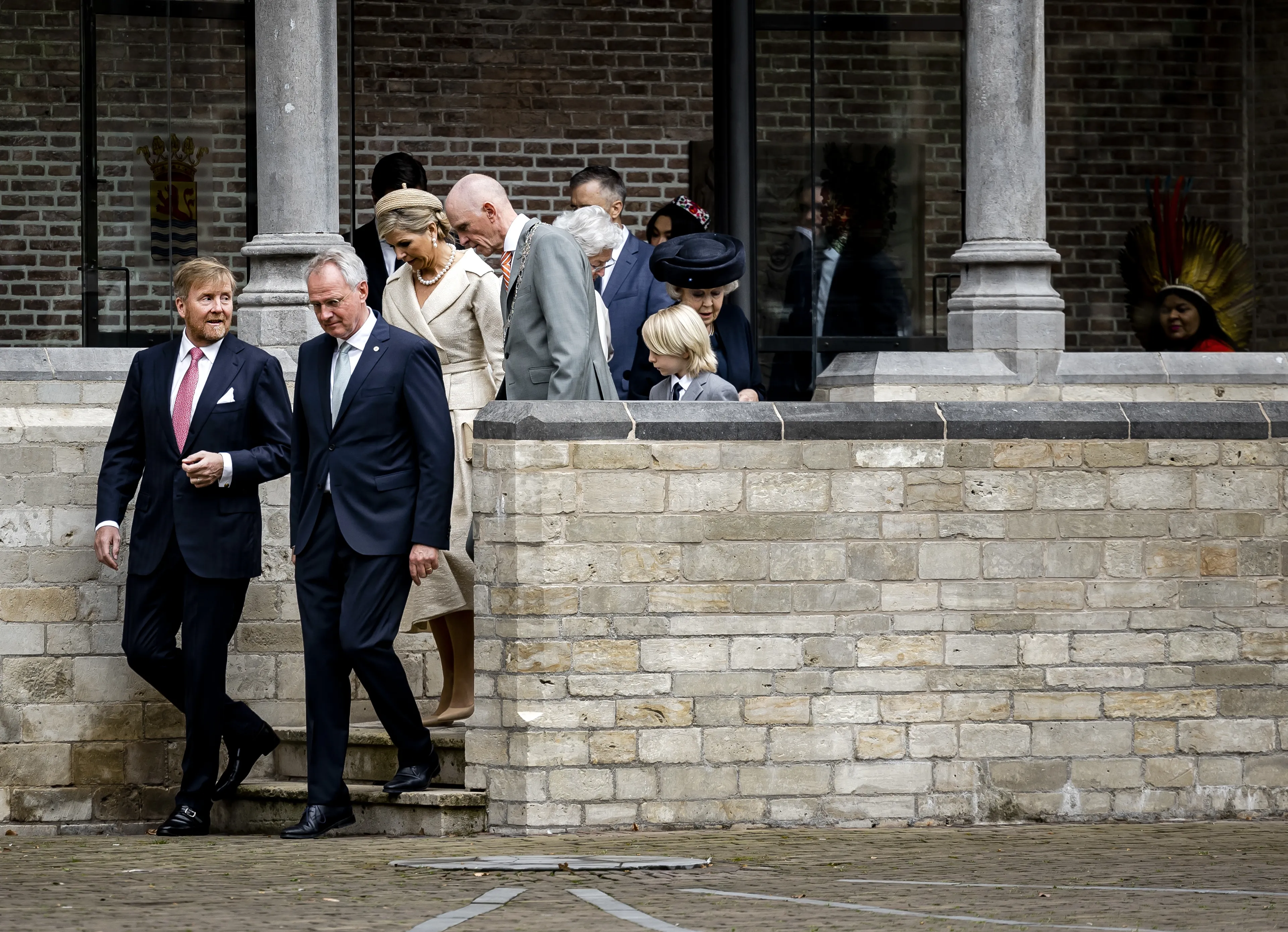 Voor het Abdijplein ontmoet het koningspaar ook prinses Beatrix, die van koningin Máxima een kus op haar wang krijgt. Samen lopen ze richting de poort van het plein, waar de leden van de koninklijke familie plechtig worden begroet. Vervolgens vertrekt het gezelschap richting de kerk, waar de ceremonie van de Four Freedoms Awards plaatsvindt.