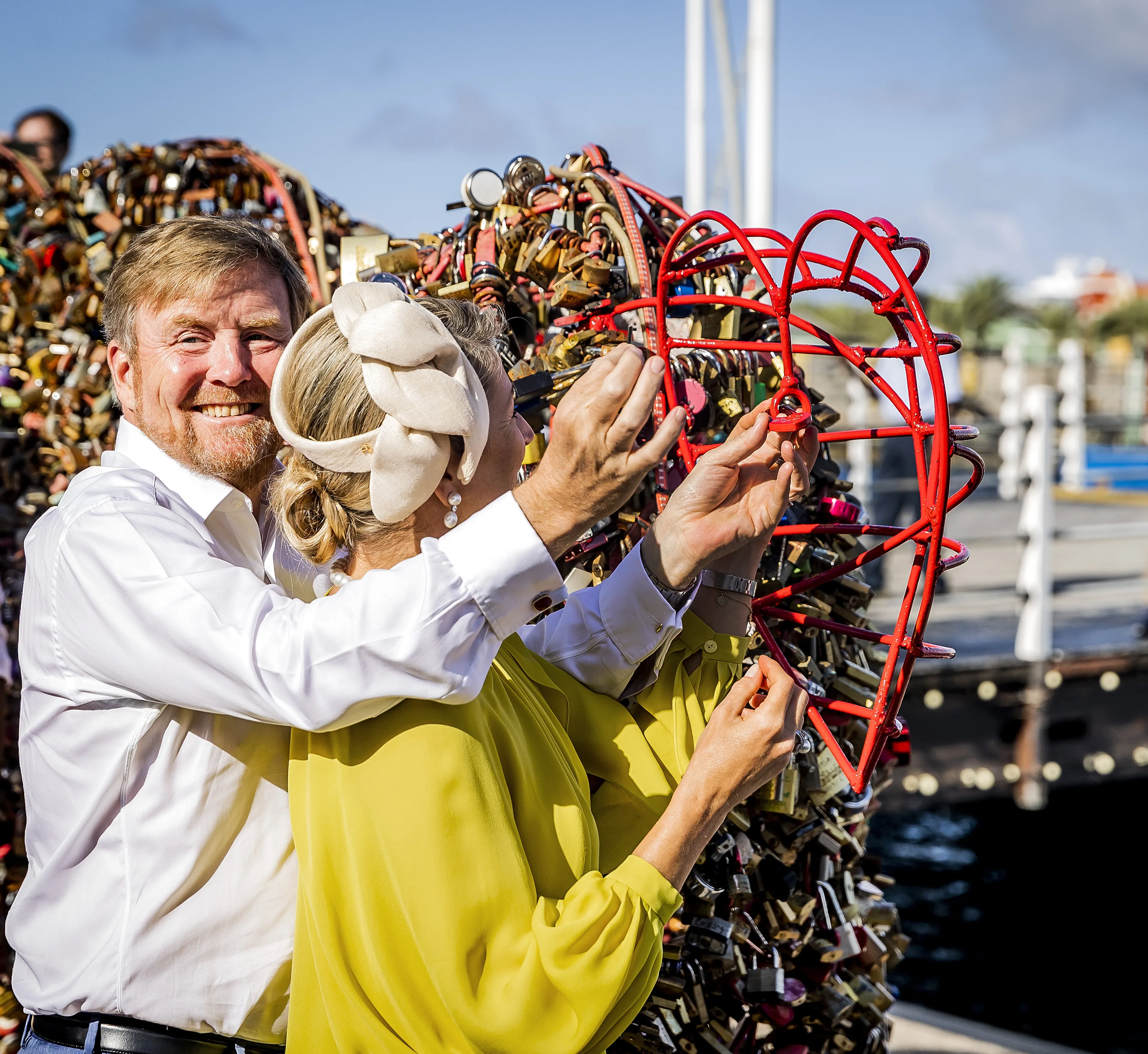 Koningspaar bezegelt 21 jaar huwelijk met liefdesslot op Curaçao