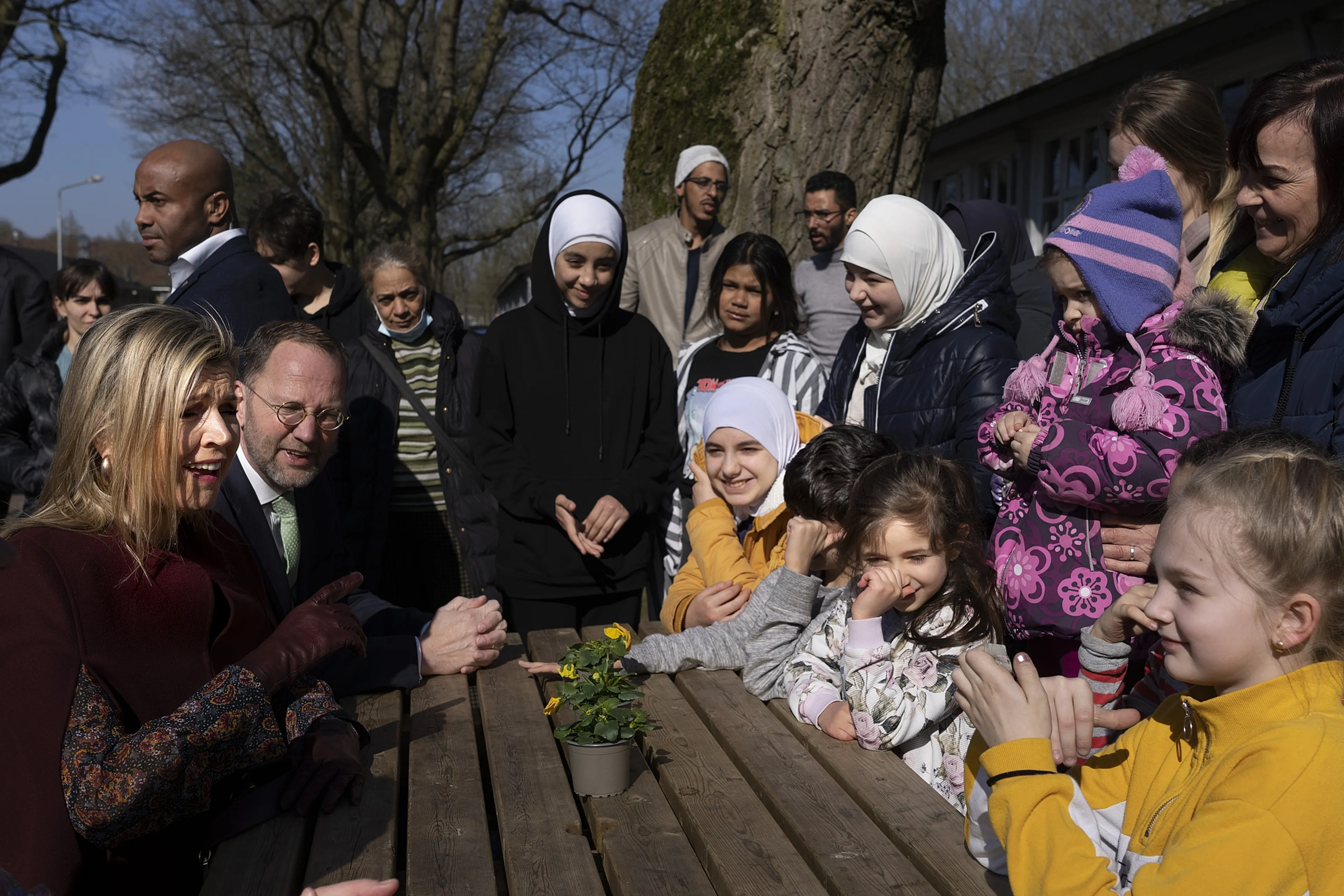 Koningin Máxima besprak met een groep kinderen wat er allemaal was gebeurd en hoe het met ze ging. "We mochten alleen onze kleren meenemen. We zaten tien dagen in de auto. Papa is achtergebleven", klonk het. Máxima noemde het later "toch fijn dat hun ogen nog konden glinsteren". De kinderen waren erg te spreken over de grote hoeveelheid speelgoed die bij de legerplaats is afgeleverd.