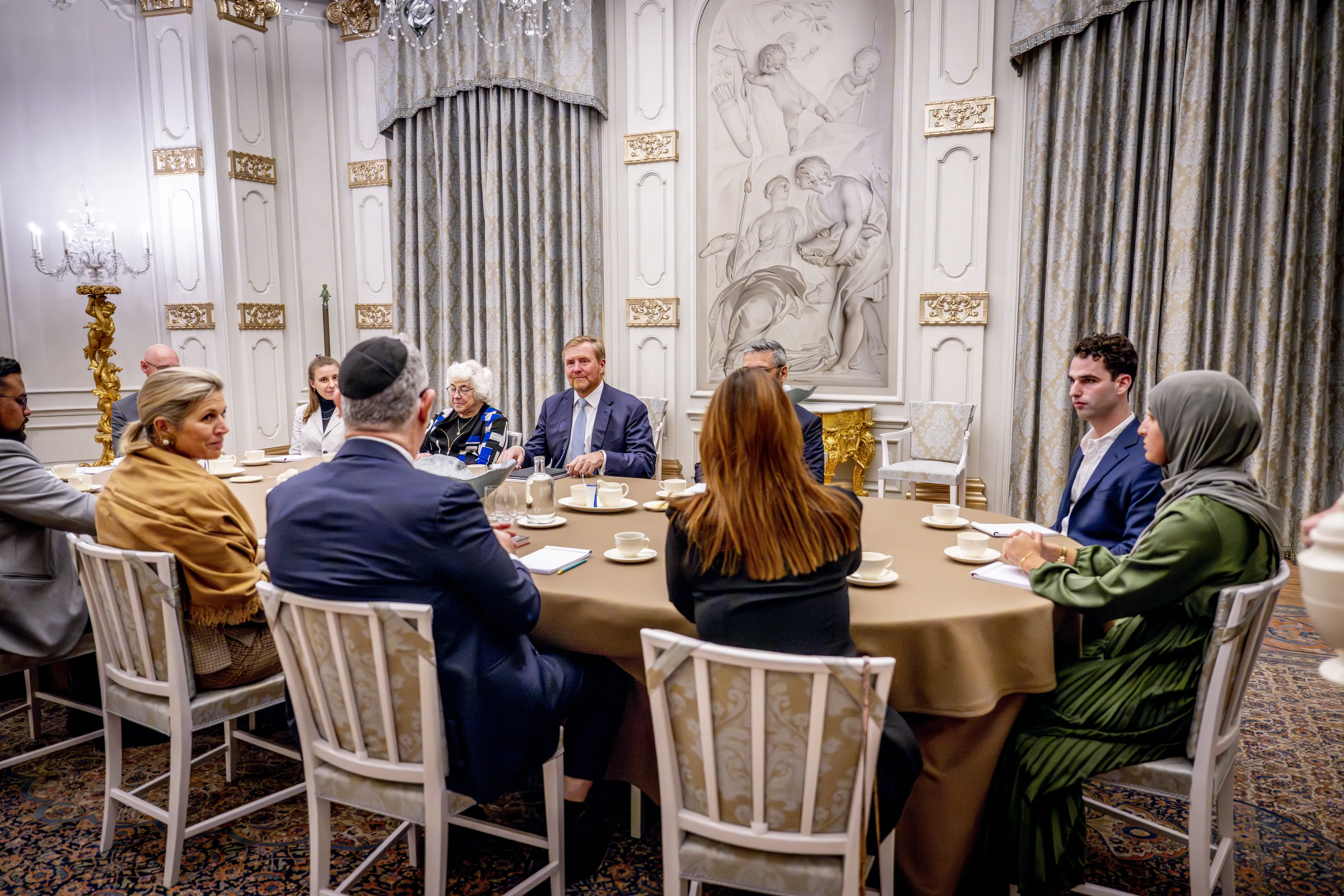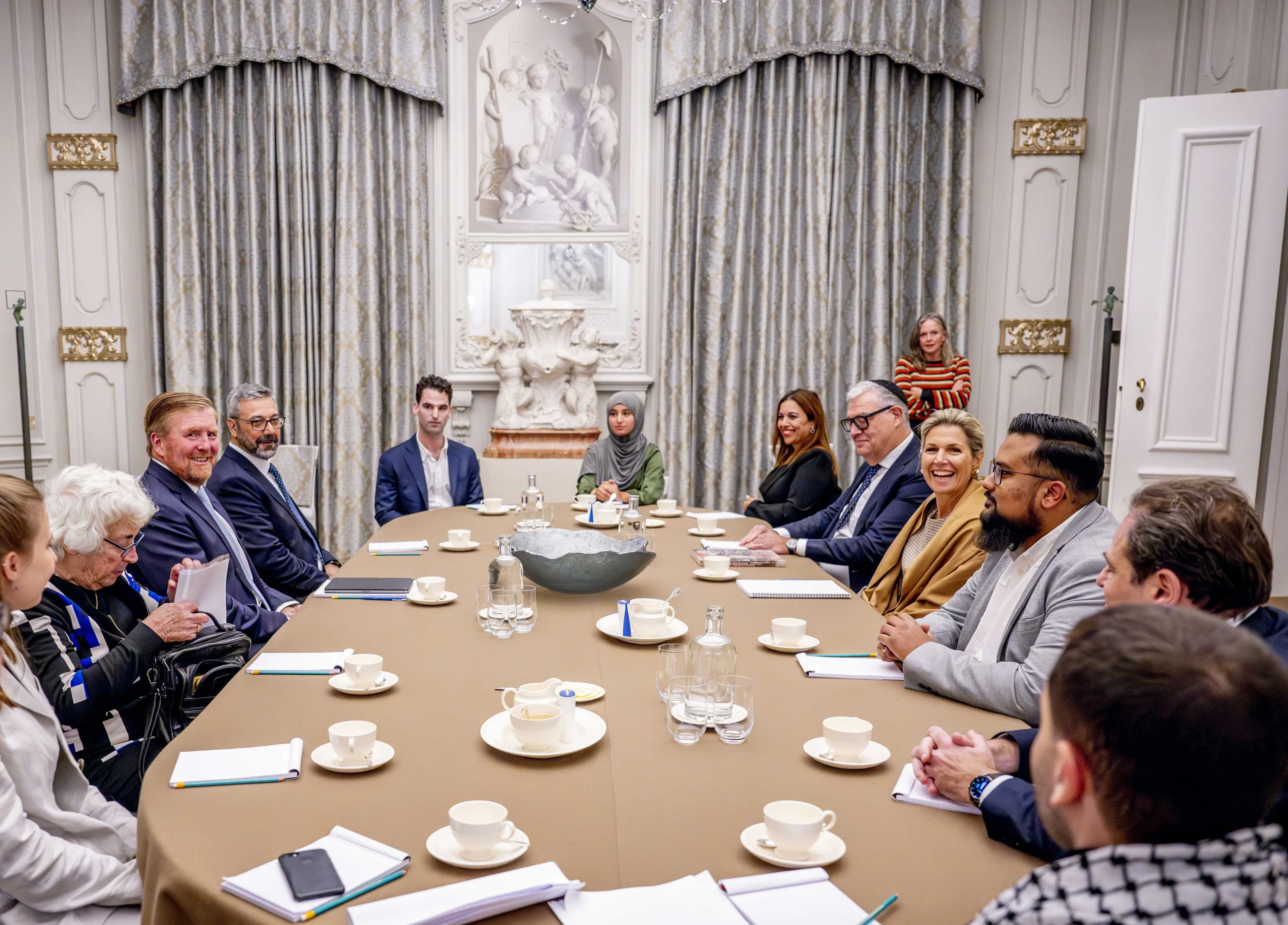 In de Witte Eetzaal van Paleis Huis ten Bosch organiseerden Willem-Alexander en Máxima maandag een (onaangekondigde) belangrijke bijeenkomst. Tijdens het gesprek kwam "de doorwerking van de gebeurtenissen in het Midden-Oosten in het leven van mensen in Nederland" aan bod, zo meldt de Rijksvoorlichtingsdienst. Er werd gesproken over manieren waarop in Nederland "met respect voor ieders gevoelens onderling begrip kan worden versterkt".