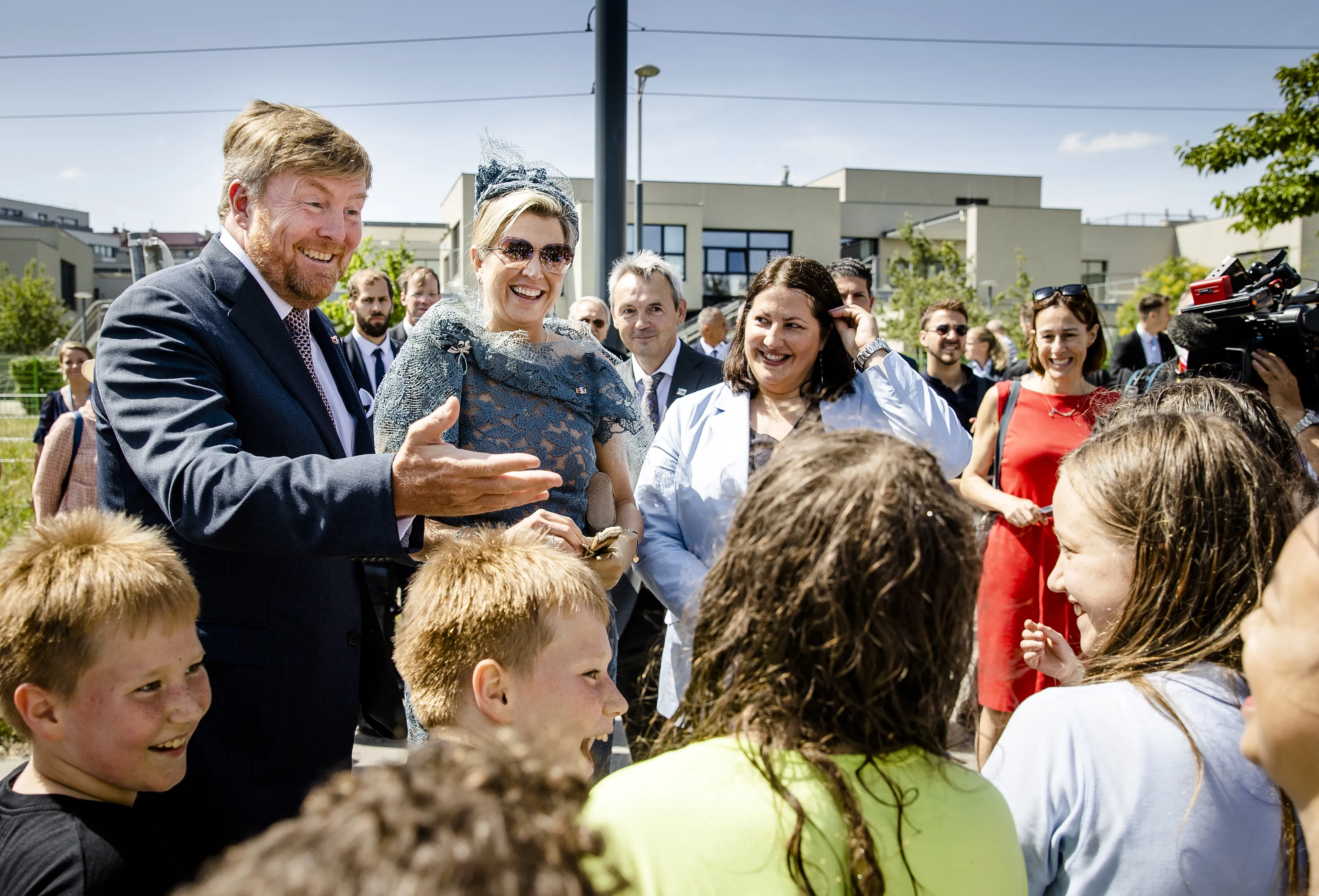 Koning Willem-Alexander en koningin Máxima bekeken dinsdag in Wenen een duurzame woonwijk, maar waren voor de kinderen daar zelf ook een bezienswaardigheid. "U bent een mooie koningin, maar waar is uw kroon?", vroeg een meisje aan Máxima.