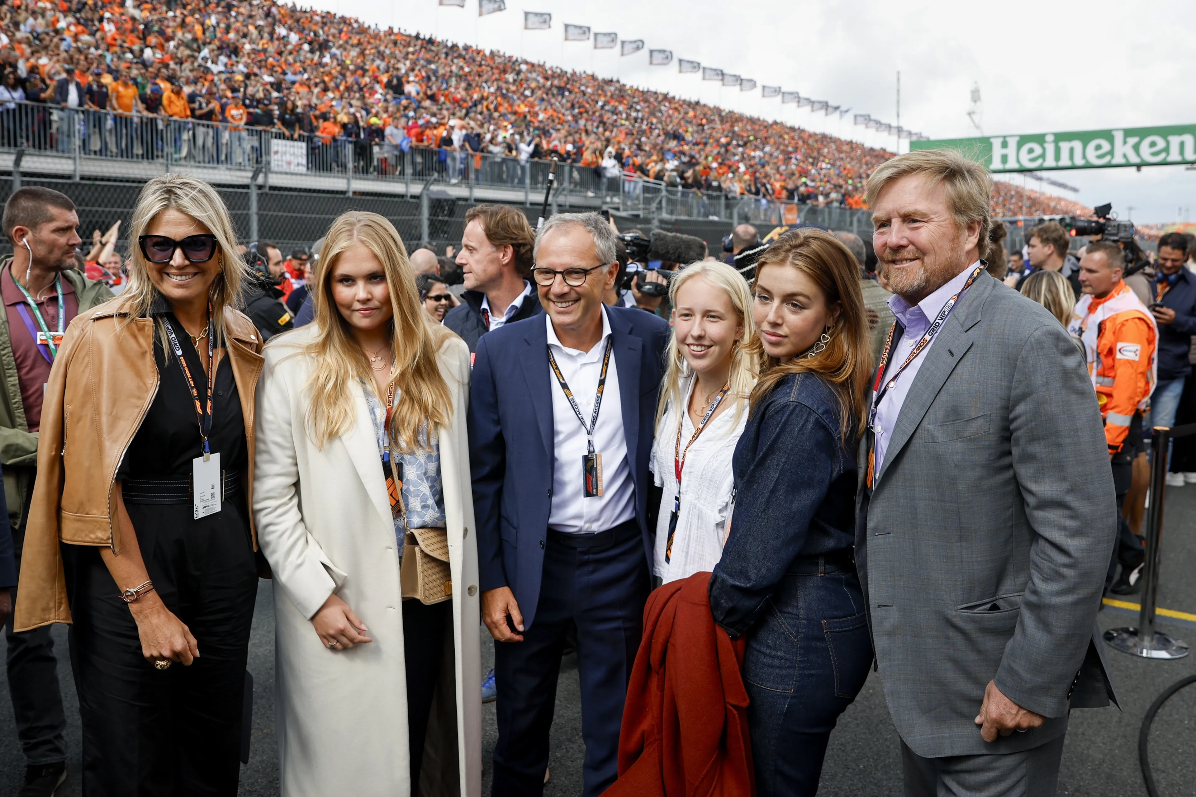 Koning Willem-Alexander en koningin Máxima zijn zondag samen met hun dochters Amalia en Alexia bij de Formule 1-race op het circuit van Zandvoort. Ook hun nicht gravin Luana, de oudste dochter van prins Friso (1968-2013) en prinses Mabel, is van de partij.