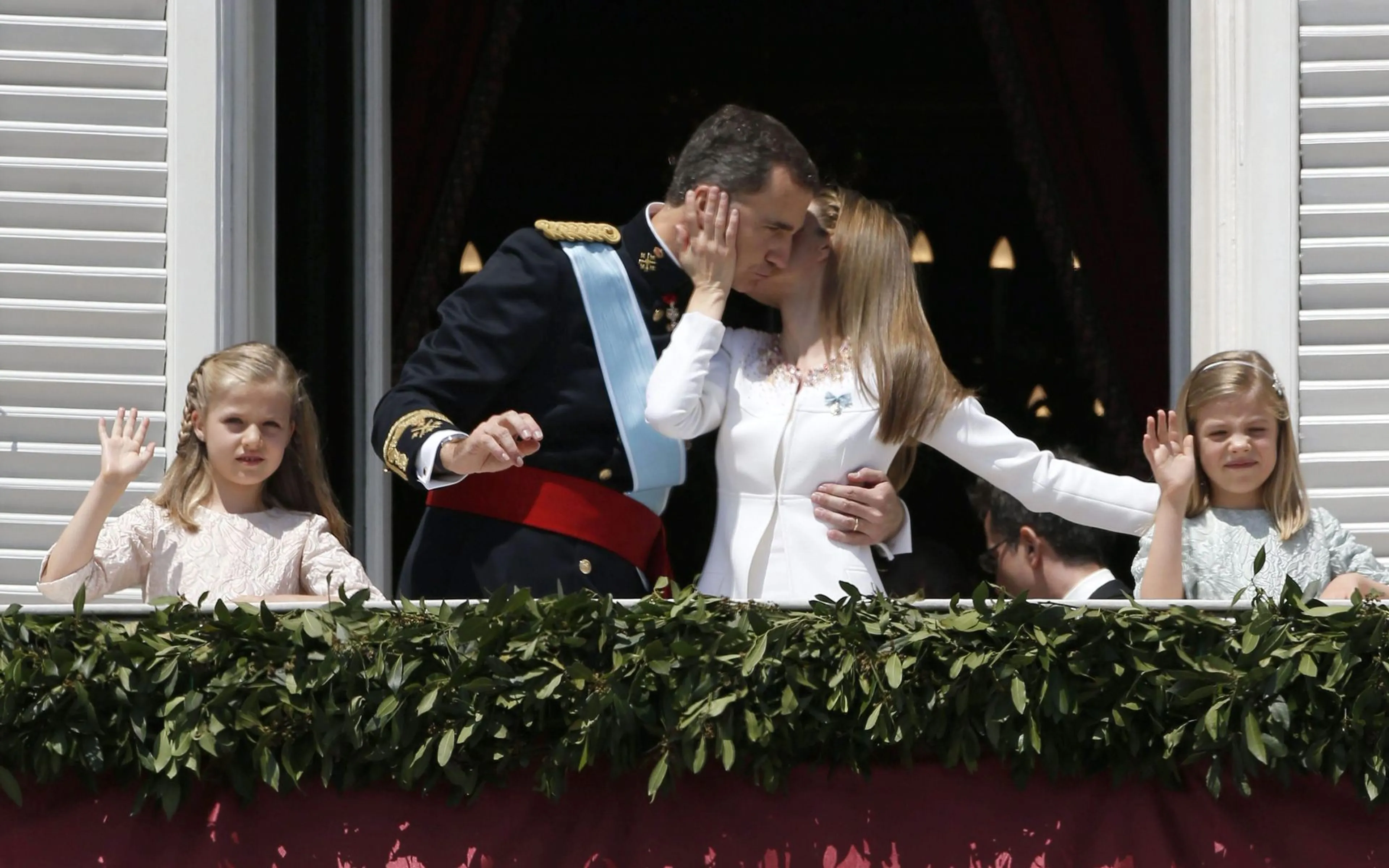 Felipe en Letizia knuffelen en kussen regelmatig in het openbaar. Zo ook op de dag van de inhuldiging van koning Felipe. Tijdens de officiële plechtigheden gaf Letizia haar man een kus. Hierna verschenen zij op het balkon van het paleis in Madrid, en deed zij de kus nog even over met het grote publiek erbij.