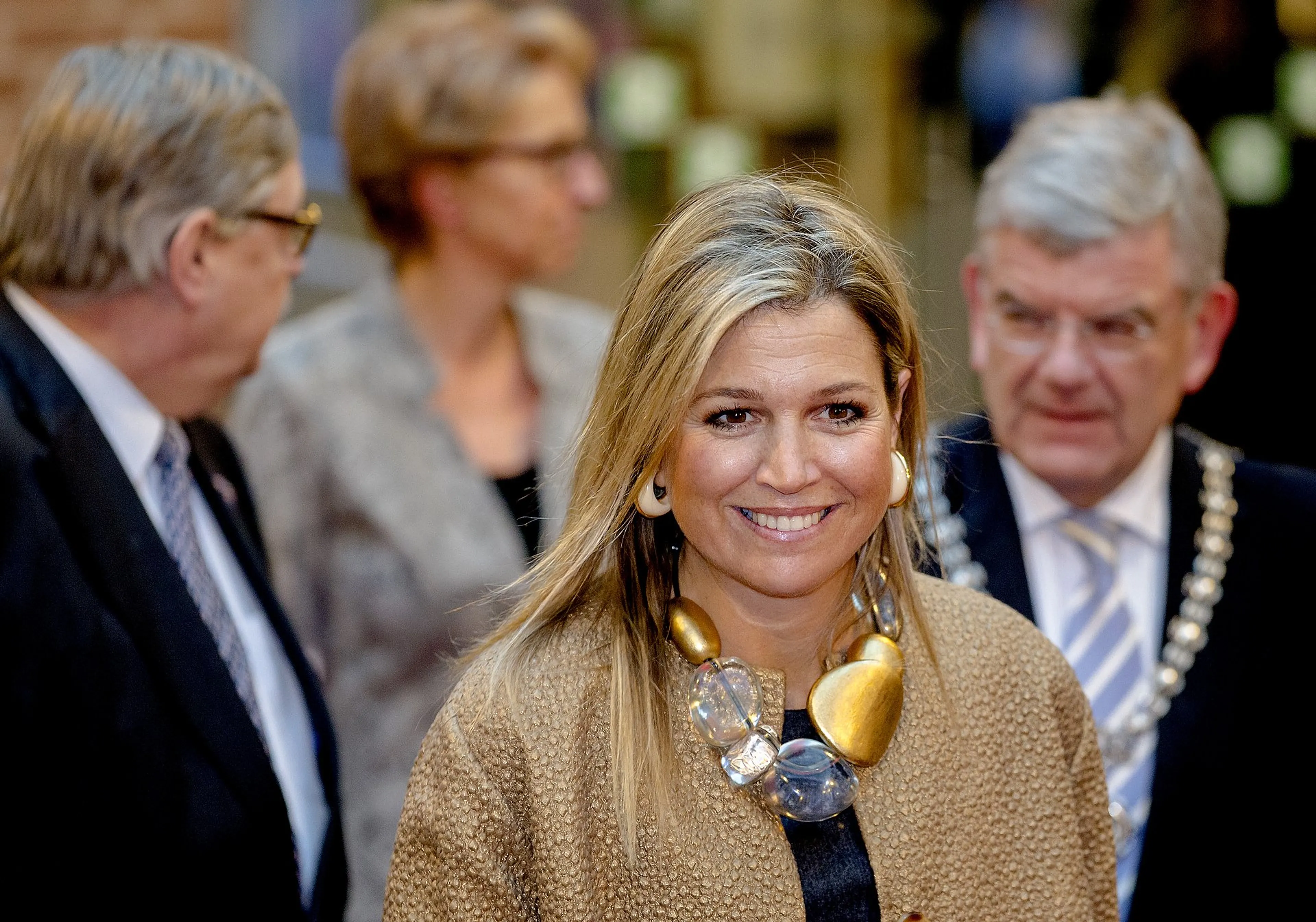 Máxima kiest regelmatig voor een opvallende collier. Ook dat is power dressing.