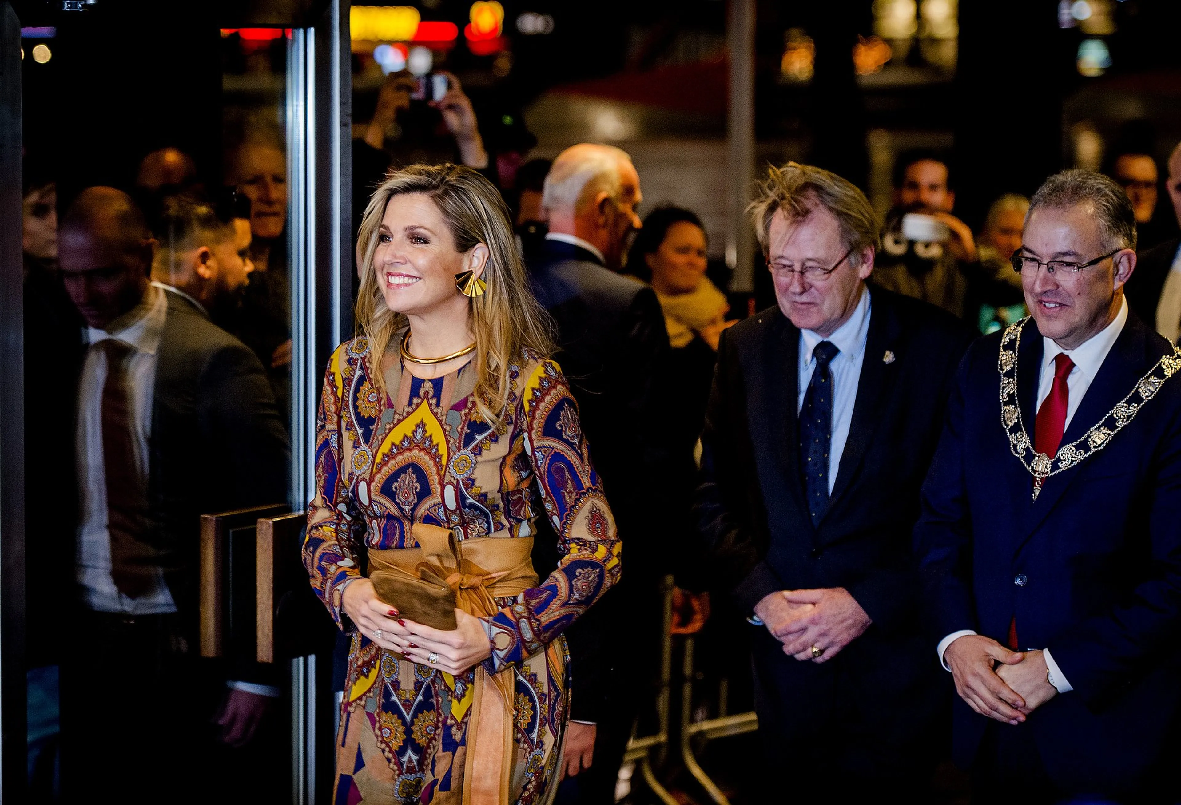 Koningin Mathilde grijpt vaak naar opvallende patronen en rijke materialen.