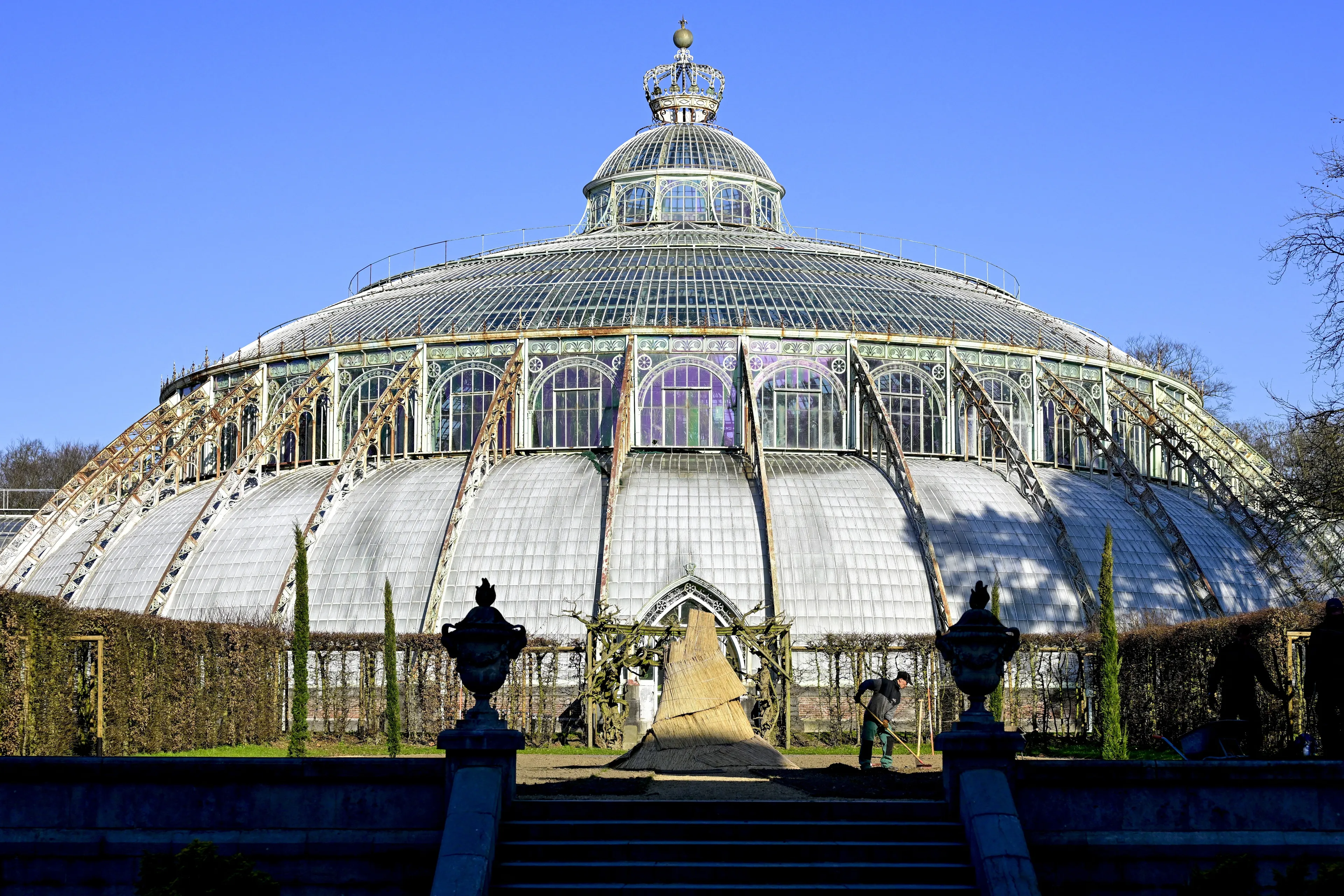 Vanaf 1874 breidt koning Leopold II het complex uit. Hij laat een serrecomplex ontwerpen dat past bij de klassieke stijl van het Kasteel van Laken, de residentie van de huidige koning Filip en zijn vrouw koningin Mathilde van België. De 'Wintertuin' is het resultaat van Leopolds opdracht. In het glazen paviljoen staan honderden verschillende plantensoorten. "We hebben veel planten uit Congo, maar ook uit Mexico. We hebben andere planten uit Zuid-Amerika en uit Australië ook", vertelt Jean-Yves André, beheerder van het koninklijk domein van Laken. Wanneer koning Filip en koningin Mathilde hun kasteeldeur uitstappen, wanen ze zich in een andere wereld met een oppervlakte van 2,5 hectare.