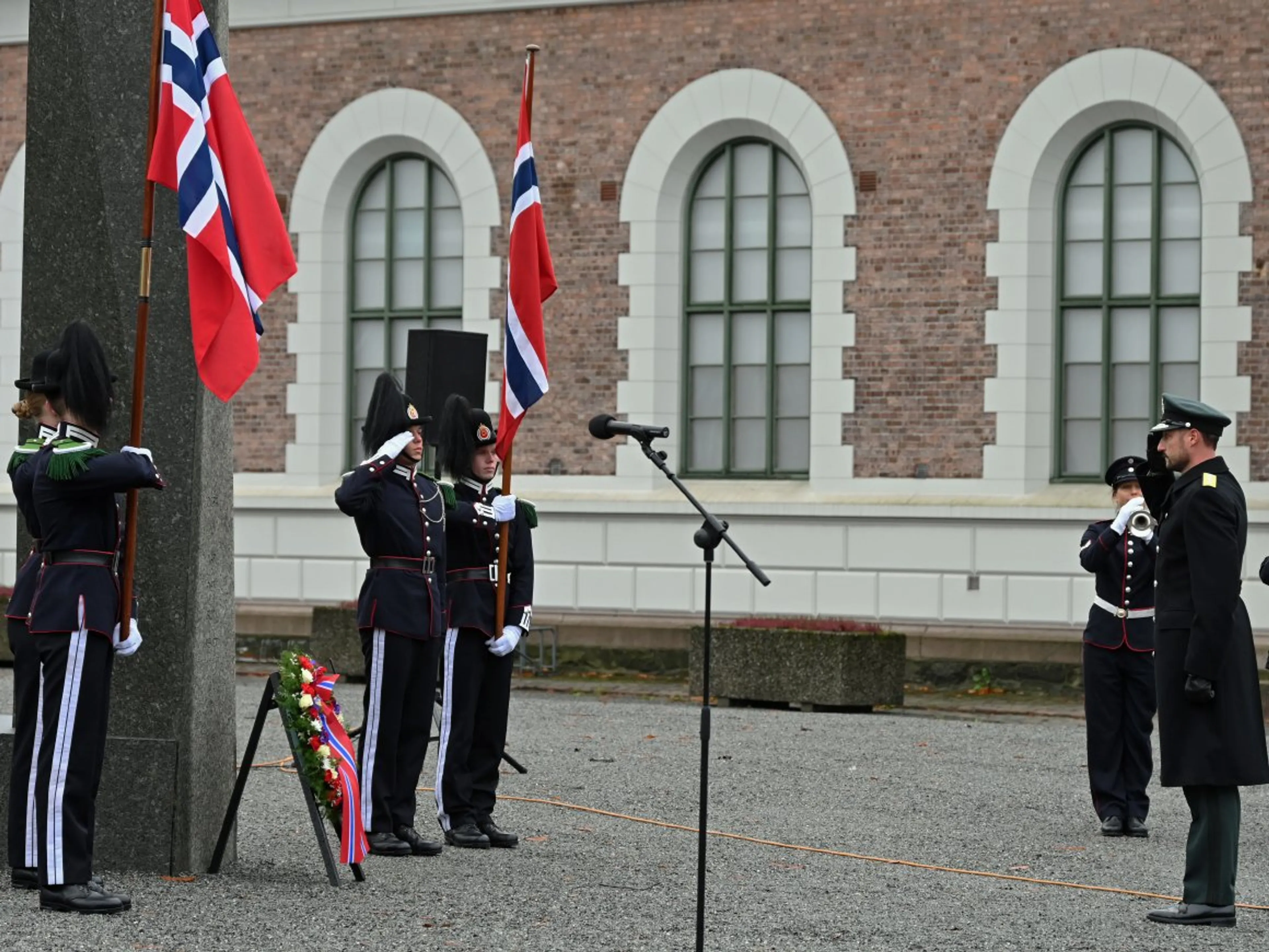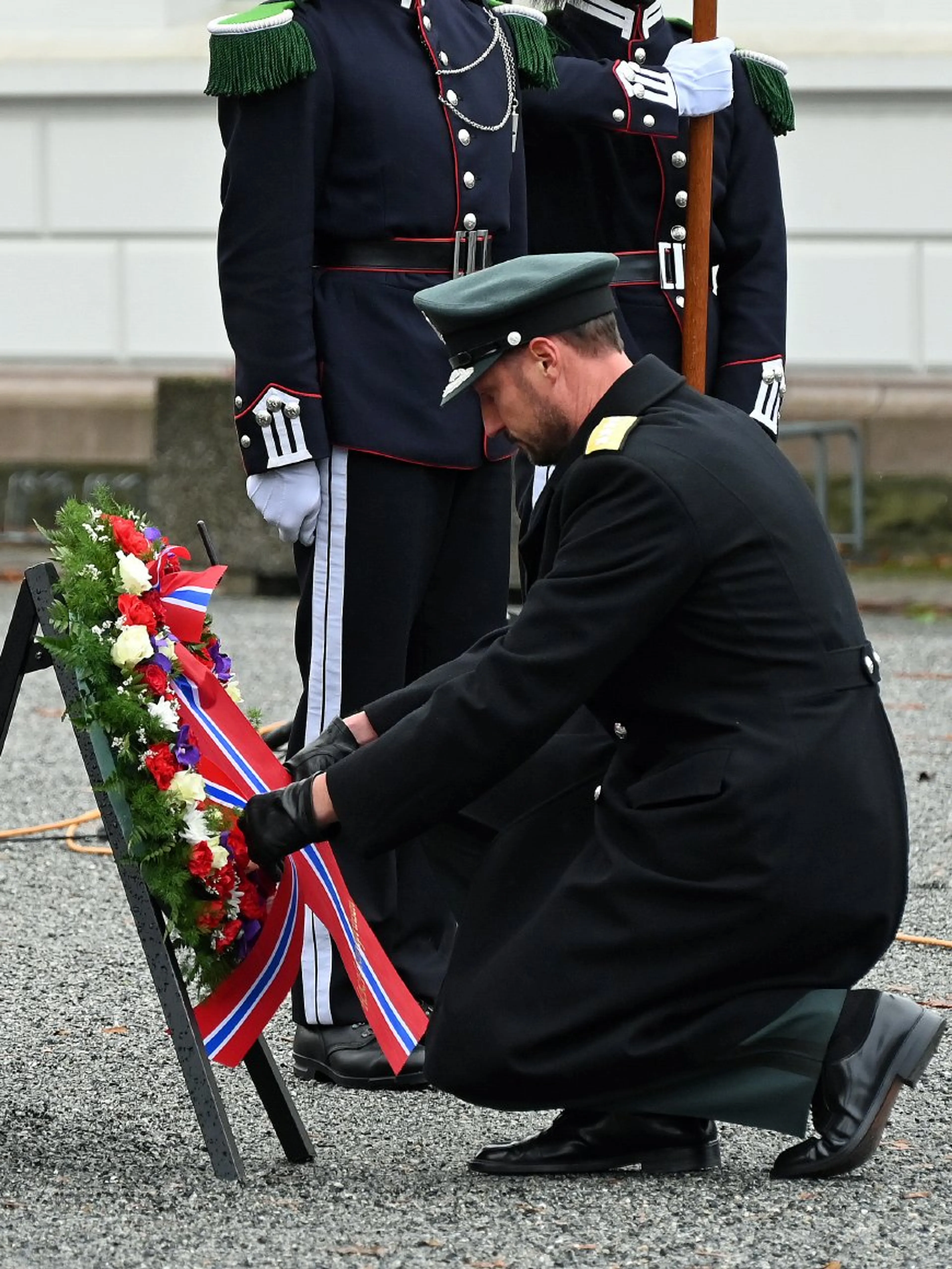 Kroonprins Haakon legt krans voor overleden militairen