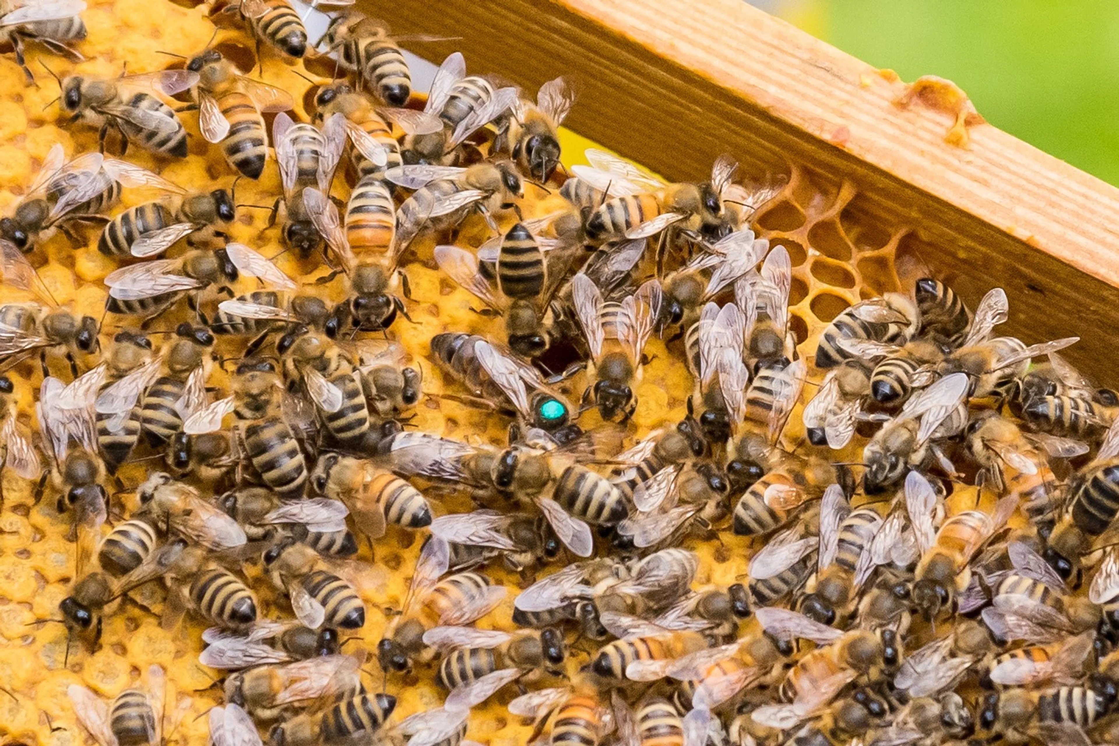 Met de hulp van imker Lotta Fabricius Kristiansen, die verantwoordelijk is voor de bijenkorven in de Hagaparken, konden prinses Estelle en prins Oscar de koningin vinden in de korf.