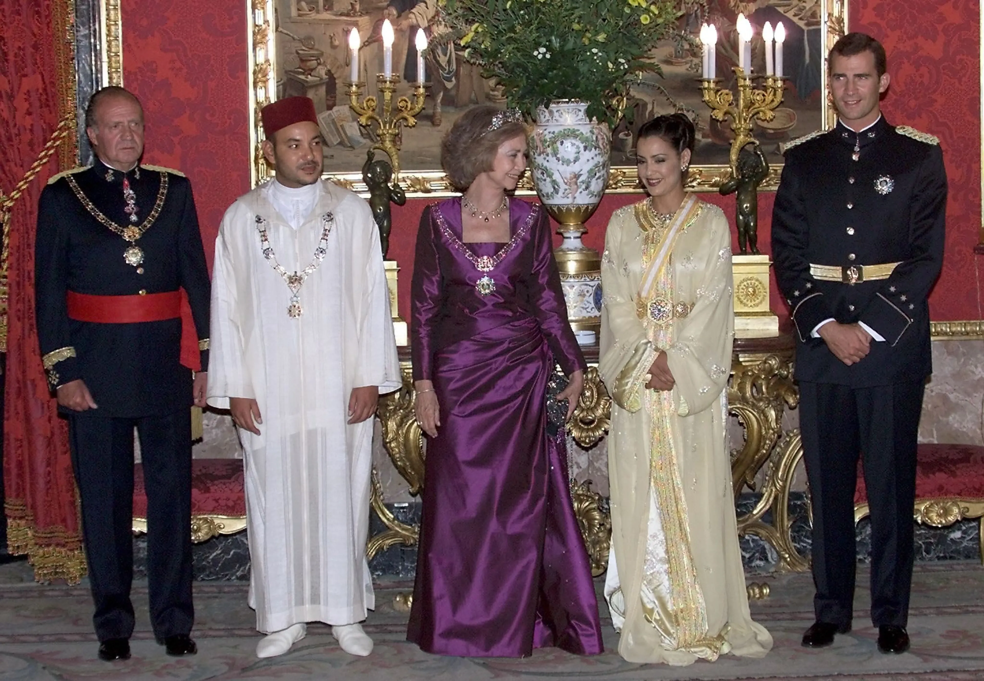 Koning Hassan II en zijn dochter prinses Lalla Meryem op haar huwelijksdag.