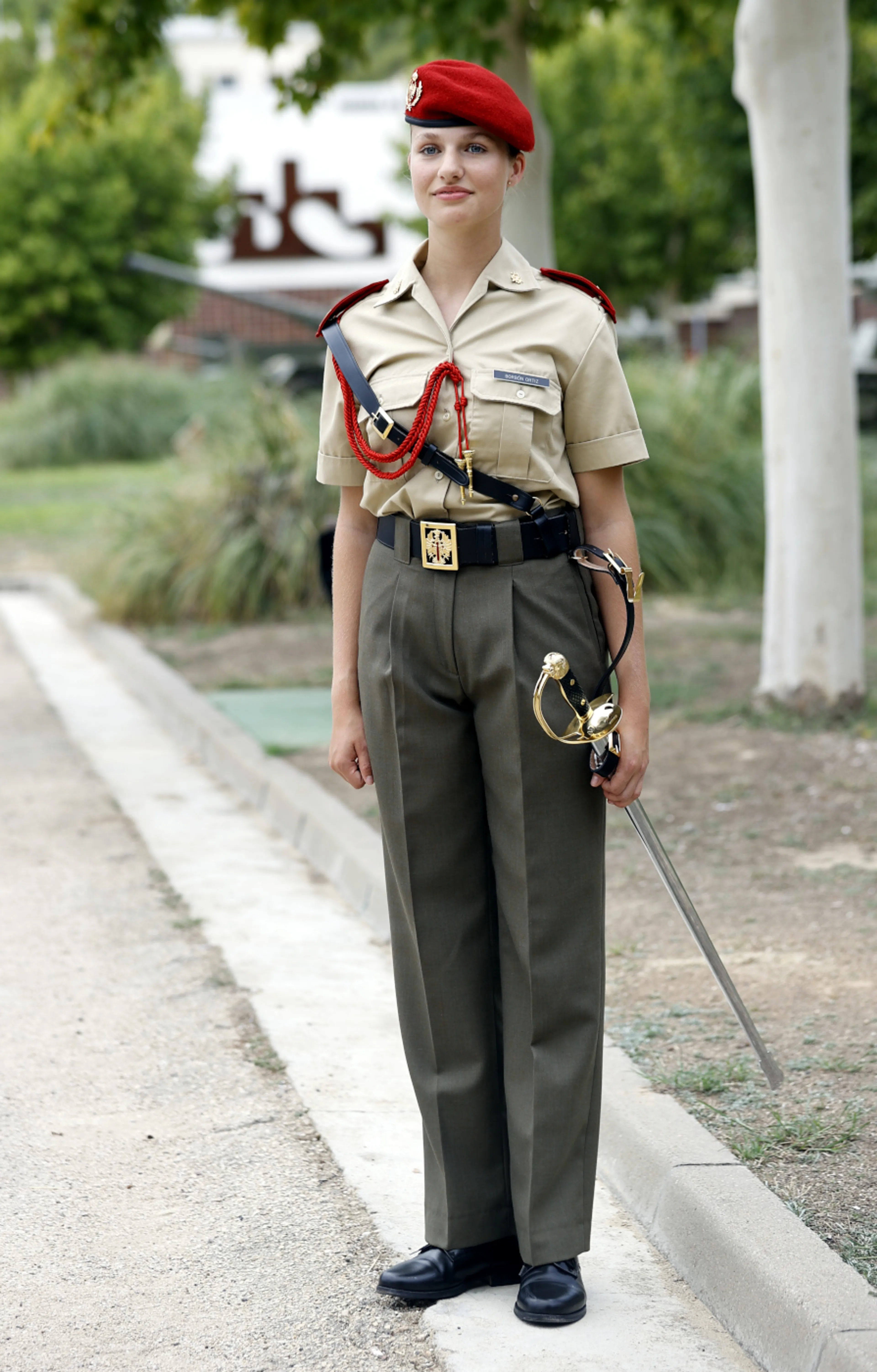 In een speciale ceremonie kreeg Leonor vorige week de officierssabel overhandigd. Een belangrijk moment voor de Spaanse prinses, want het is de eerste ceremonie waar de nieuwe studenten aan deelnemen. Het ontvangen van de sabel symboliseert het behalen van de titel ridder of cadet. Gelukkig mochten wij meegenieten met de speciale gelegenheid, want het Spaanse hof deelde een aantal mooie kiekjes van Leonor in haar uniform, inclusief rode baret.