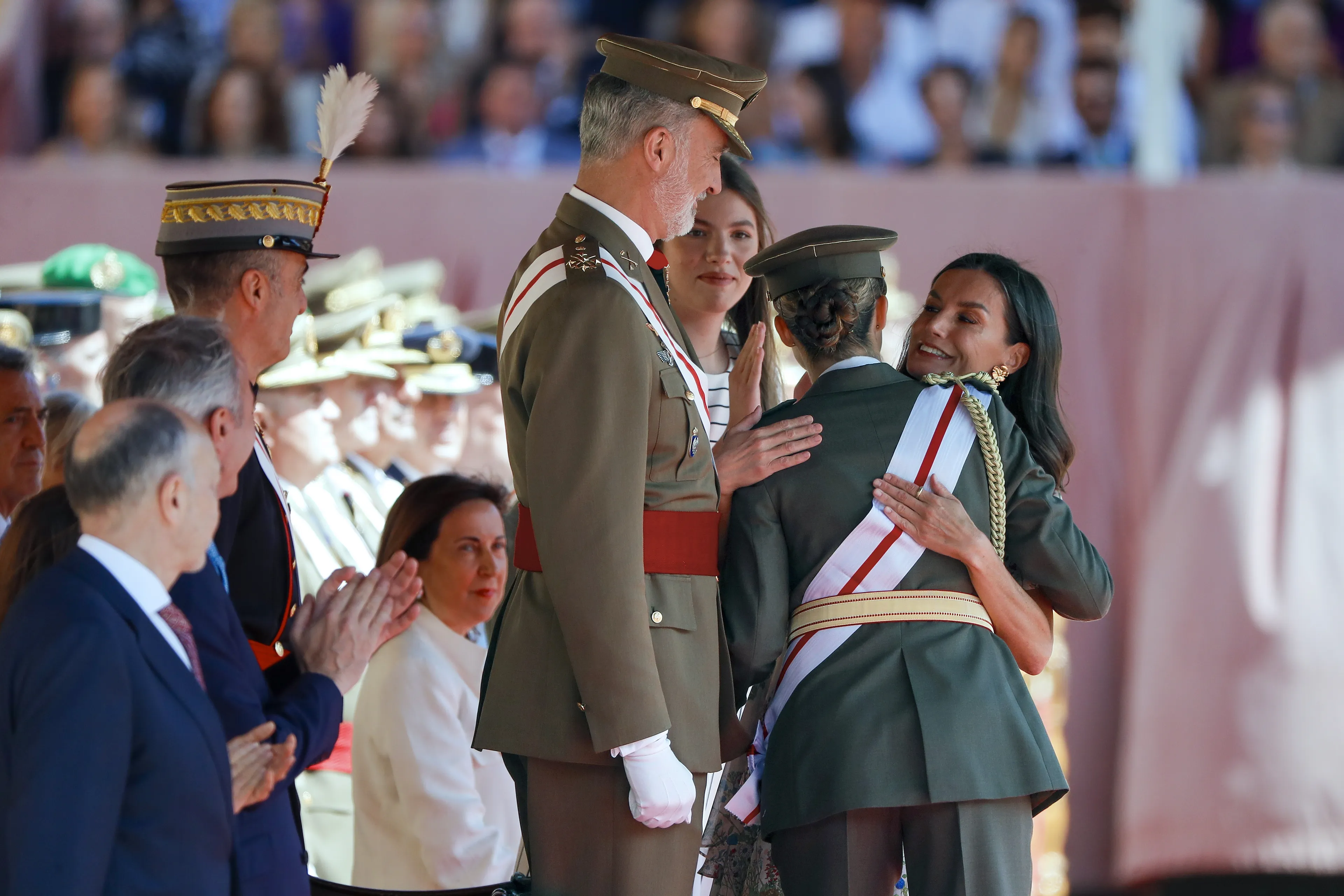 Samen keek de familie daarna naar de rest van de ceremonie, waarbij nieuwe officieren van de landmacht en de Guardia Civil werden benoemd.