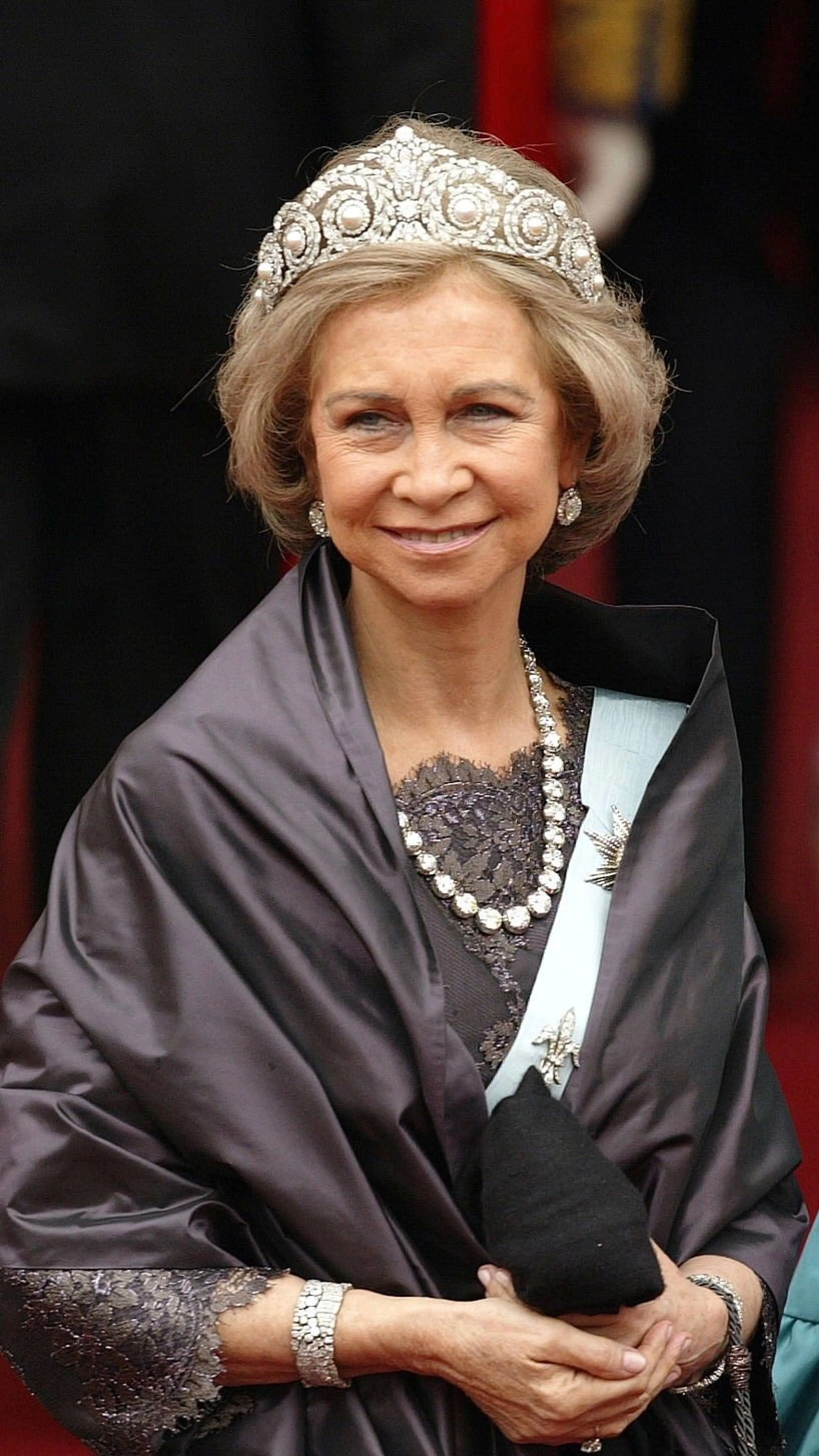 Het sieraad, oorspronkelijk van koning Felipes overgrootmoeder koningin Victoria Eugenia en nu in het bezit van het Spaanse Koninklijk Huis, werd door de jaren heen bij talloze gelegenheden gedragen door Sofia. Letizia droeg de tiara maandag voor het eerst.
