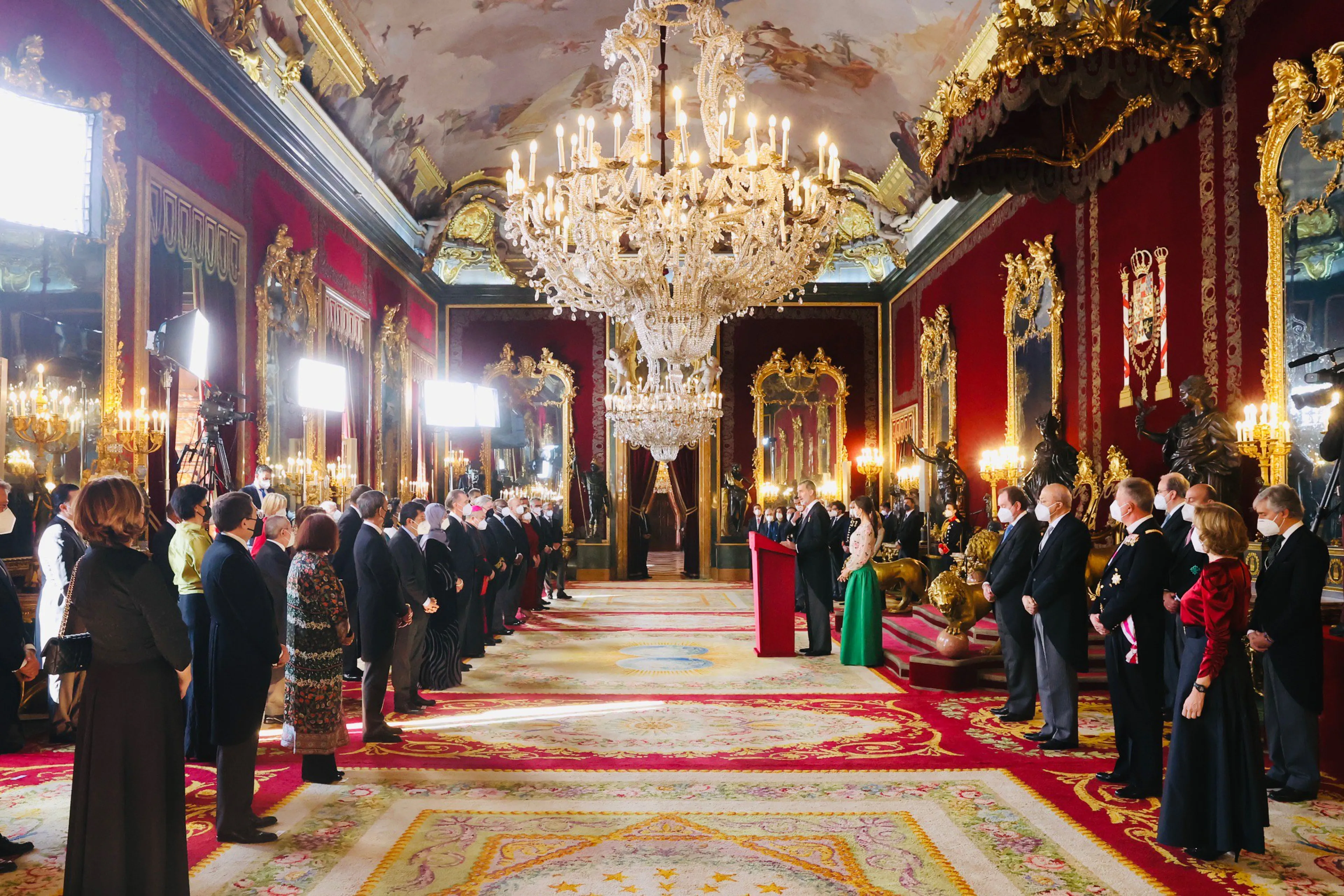 De Spaanse koning Felipe heeft maandag samen met zijn vrouw Letizia het diplomatieke korps ontvangen op het Koninklijk Paleis in Madrid. Net als in voorgaande jaren hield de koning voor de gelegenheid een toespraak. Maar onze ogen waren vooral gericht op koningin Letizia...