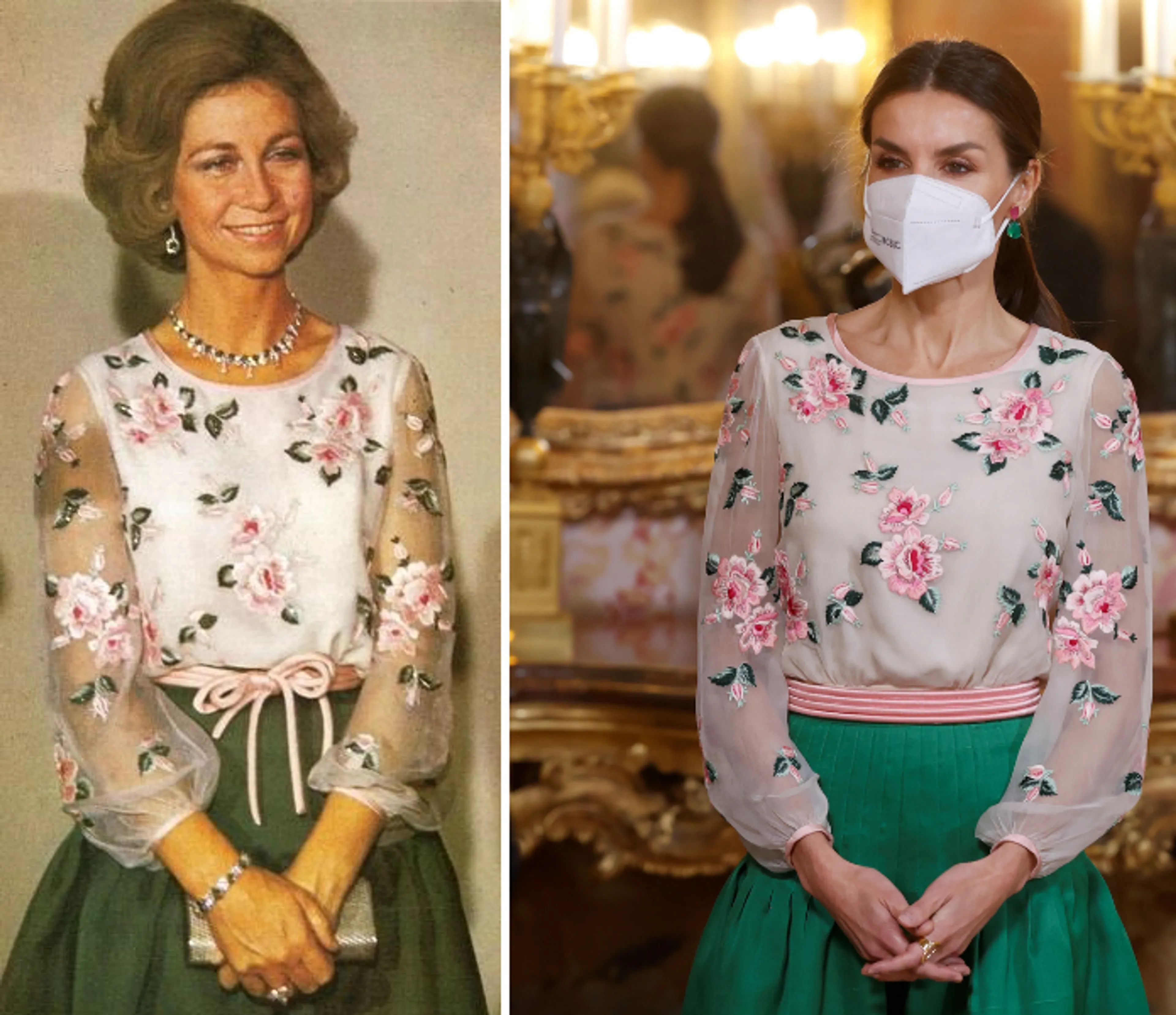 De outfit van koningin Letizia is niet nieuw. Integendeel, het is een 'krijgertje' van haar schoonmoeder koningin Sofía.